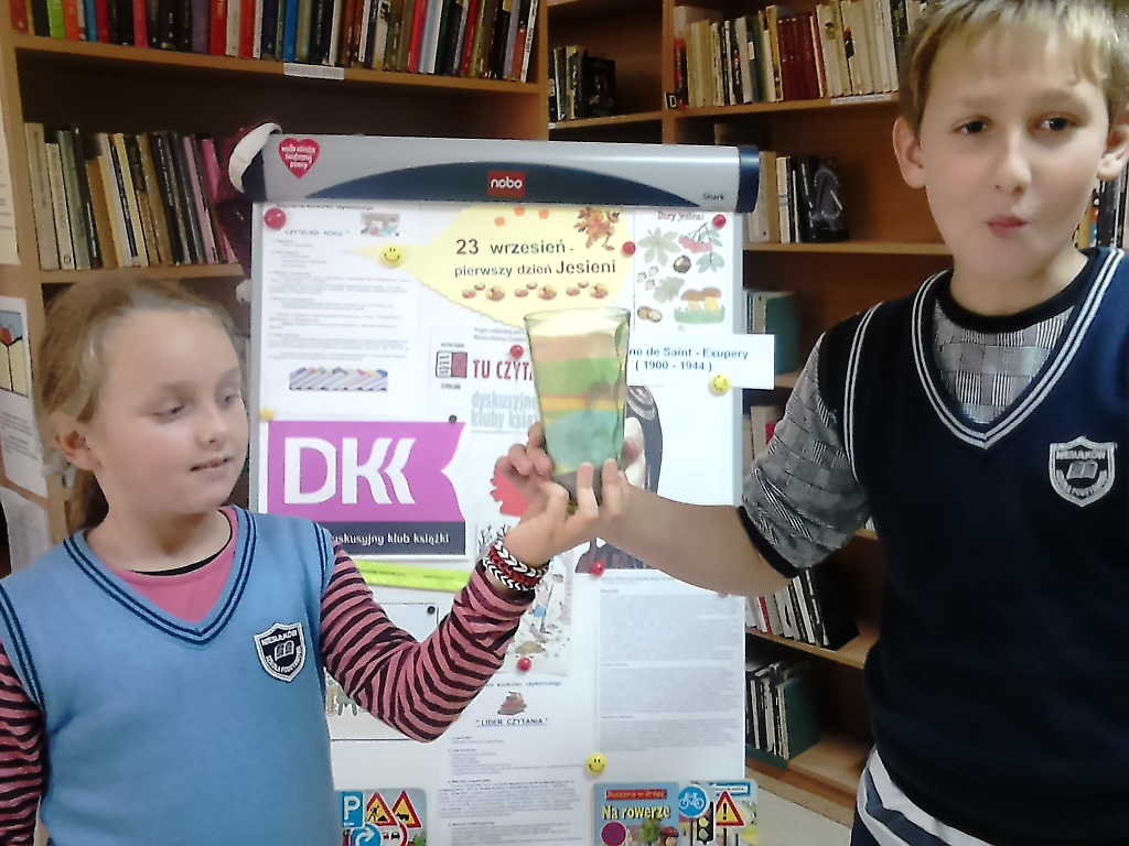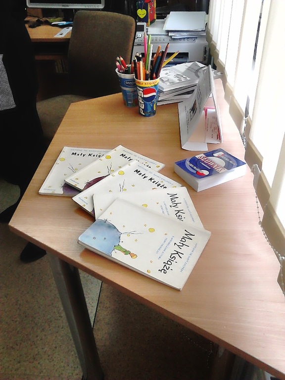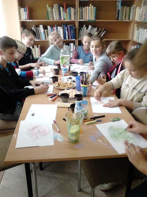 W bieżącym roku szkolnym uczniowie klasy V kontynuują spotkania z panią bibliotekarką Renatą Szydlik w ramach Dyskusyjnego Klubu Książki działającego w Domu Kultury. Tym razem spotkanie dotyczyło poznanego przez uczniów utworu francuskiego pisarza Antoina de Saint- Exupery pt. ,,Mały Książę”. Piątoklasiści przez ponad miesiąc uważnie słuchali czytanych głośno przez polonistkę przygód ,,książątka”, więc na spotkaniu mogli wyrazić swoją opinię o lekturze. Podczas zajęć przygotowanych przez panią Szydlik uczniowie poznali biografię autora, odpowiadali na pytania do tekstu, rozważali znaczenie przyjaźni w życiu człowieka. Emocji dostarczył im także konkurs plastyczny na portret Małego Księcia. Jego laureatami zostali Zofia Banasiak i Adrian Siuta, którzy w nagrodę otrzymali drobne upominki i słodycze. Zdolnościami manualnymi i nieograniczoną wyobraźnią mogli wykazać się też uczniowie w trakcie tworzenia kompozycji z soli barwionej kolorowymi kredami. Spotkanie przebiegało w miłej i zabawnej atmosferze, o co zawsze dba pani Renata goszcząc nas aromatyczną herbatką i pysznymi ciasteczkami. Z Małym Księciem spotkamy się jeszcze raz, ale już w Teatrze Roma w Warszawie.