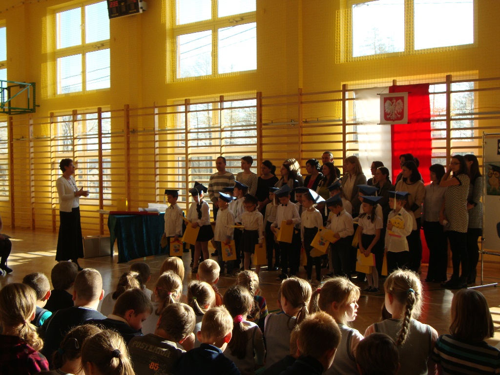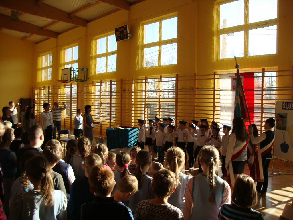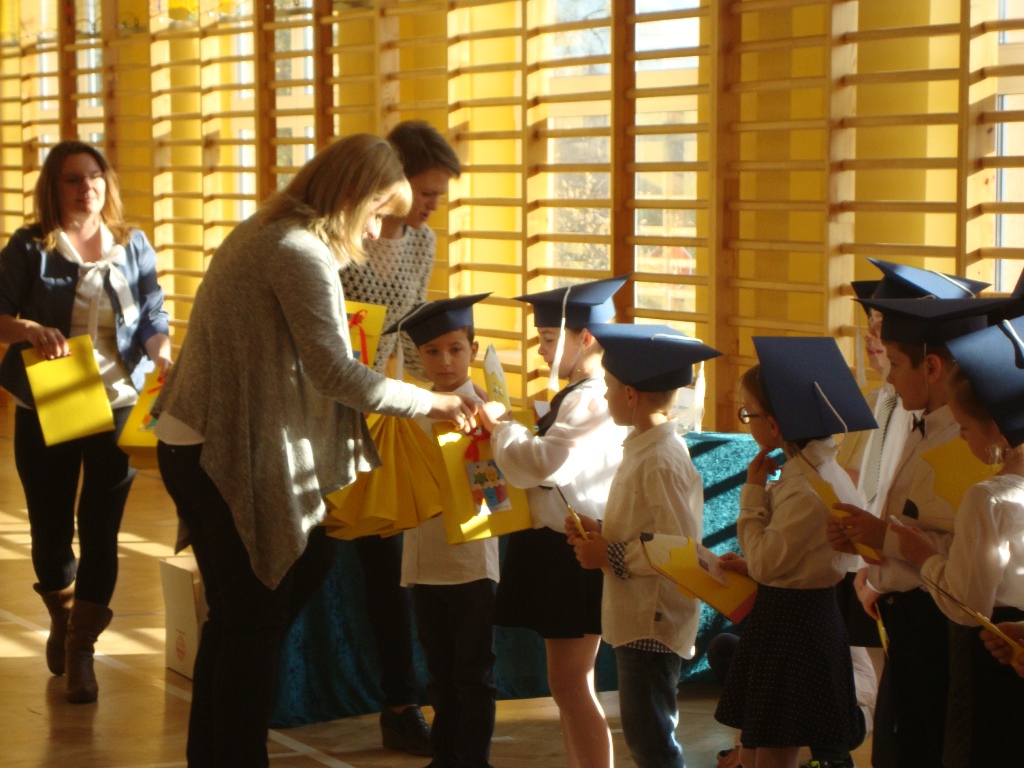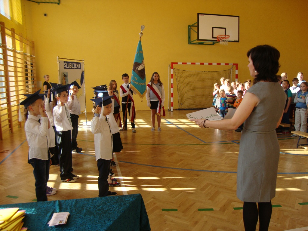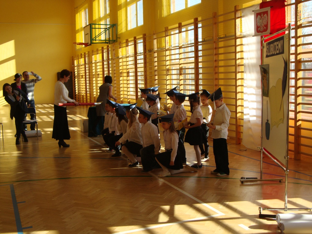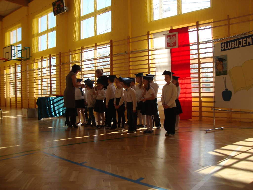 Ważnym punktem uroczystości była obietnica złożona przez rodziców pierwszoklasistów, którzy zobowiązali się do doceniania każdego wysiłku swego dziecka i wspomagania szkoły w jego rozwoju. Niespodziankę dla młodszych kolegów przygotowali uczniowie klasy drugiej. Najpierw zaprezentowali krótki występ, później obdarowali ich prezentami, a po uroczystości zaprosili na słodki poczęstunek.