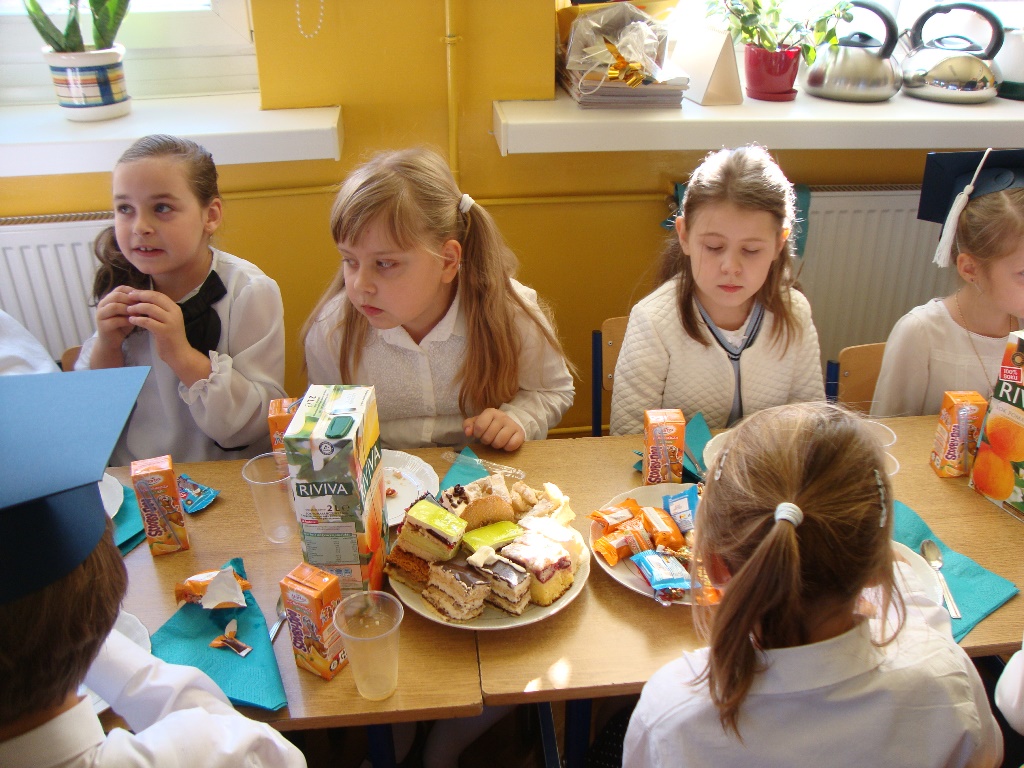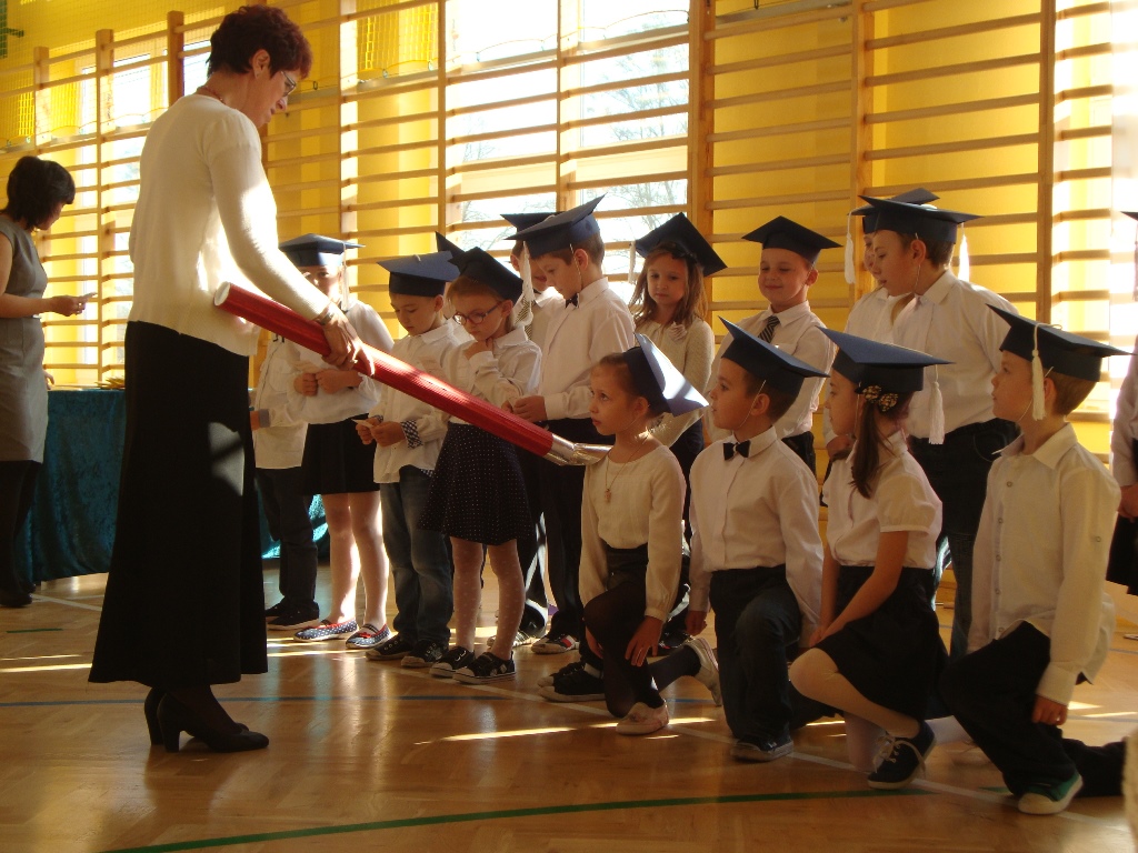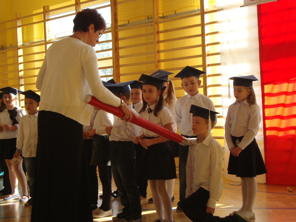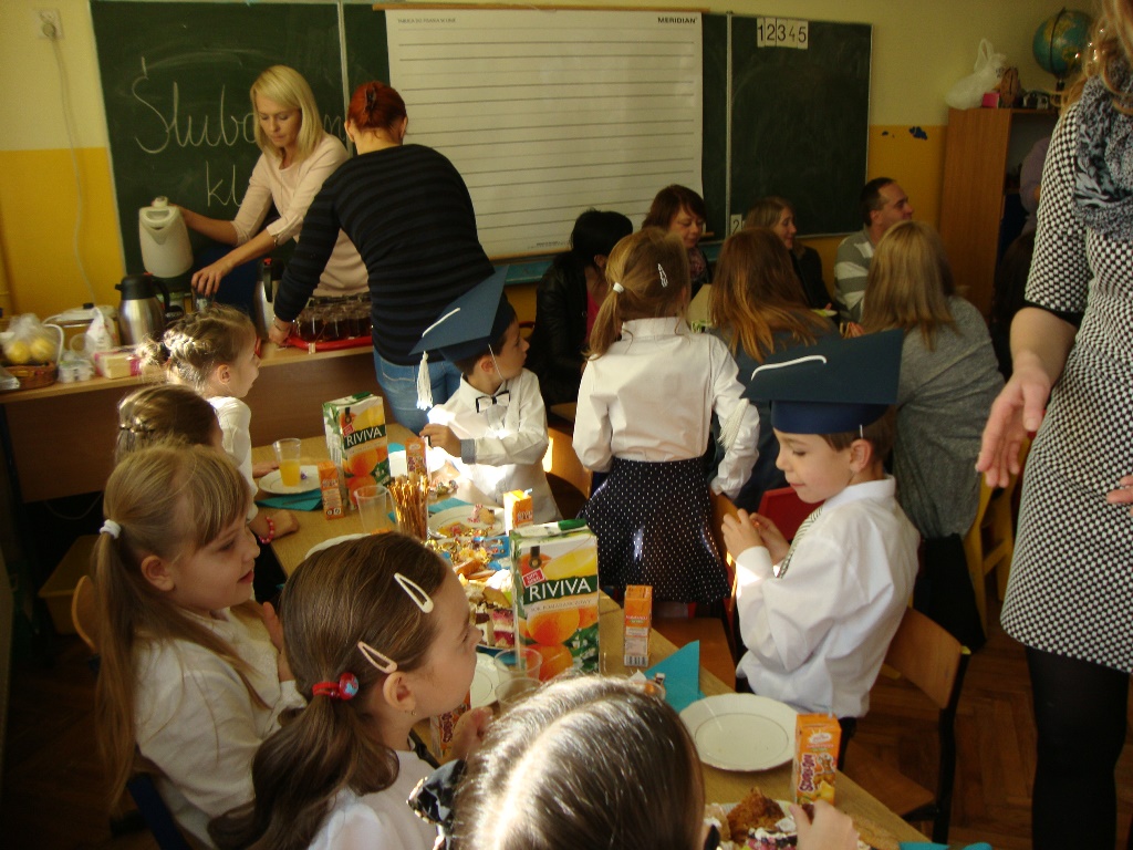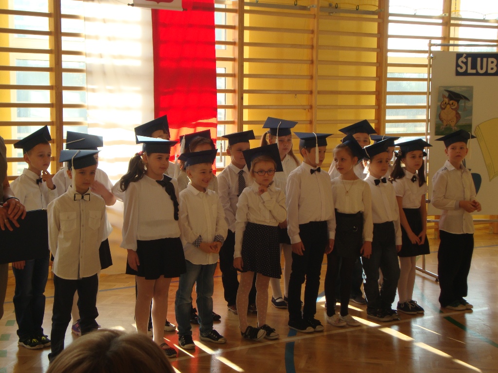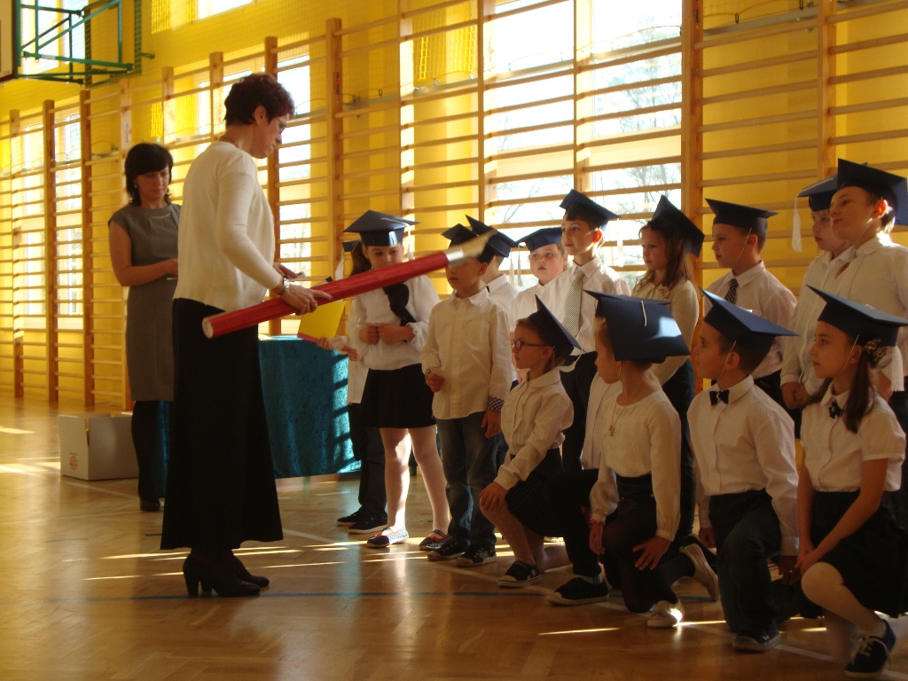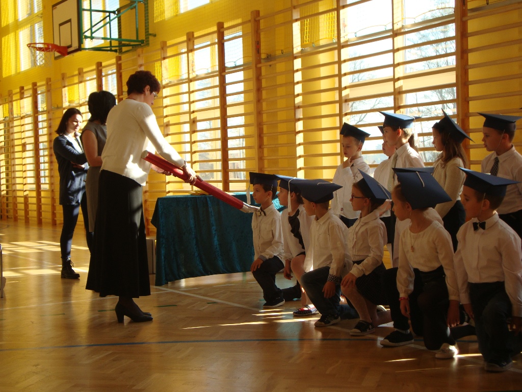 Ważnym punktem uroczystości była obietnica złożona przez rodziców pierwszoklasistów, którzy zobowiązali się do doceniania każdego wysiłku swego dziecka i wspomagania szkoły w jego rozwoju. Niespodziankę dla młodszych kolegów przygotowali uczniowie klasy drugiej. Najpierw zaprezentowali krótki występ, później obdarowali ich prezentami, a po uroczystości zaprosili na słodki poczęstunek.