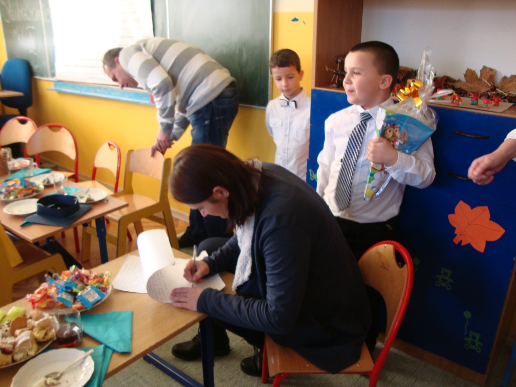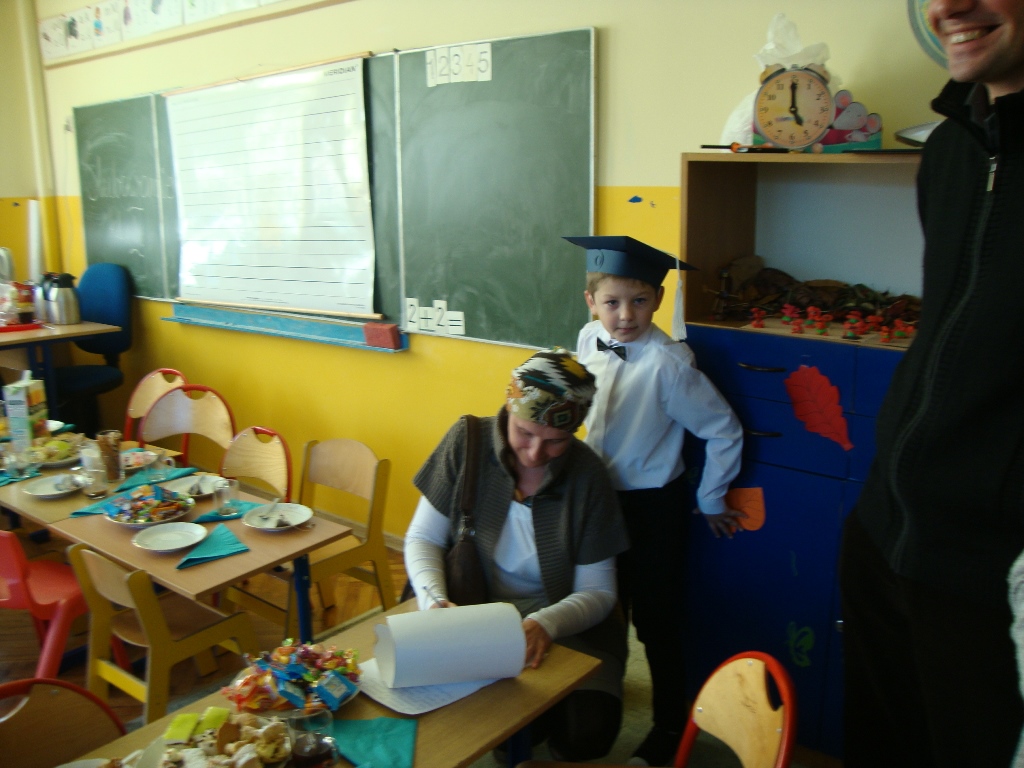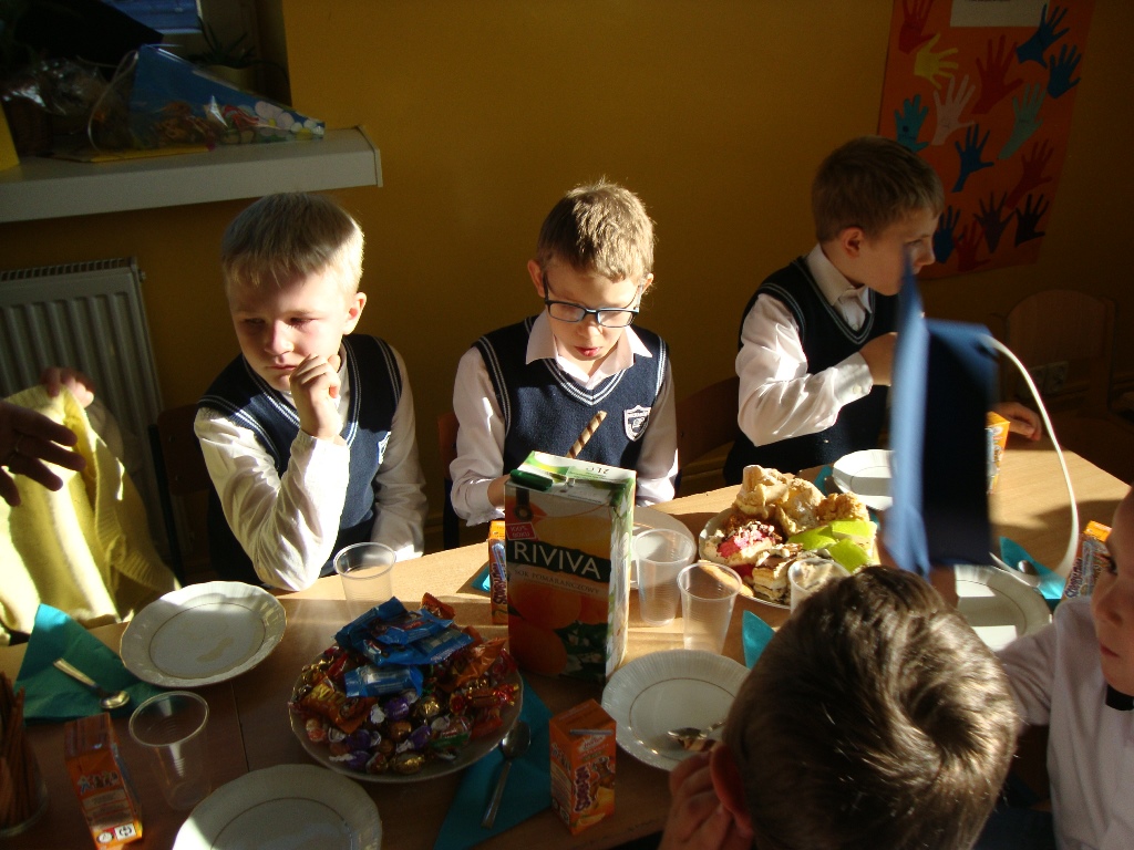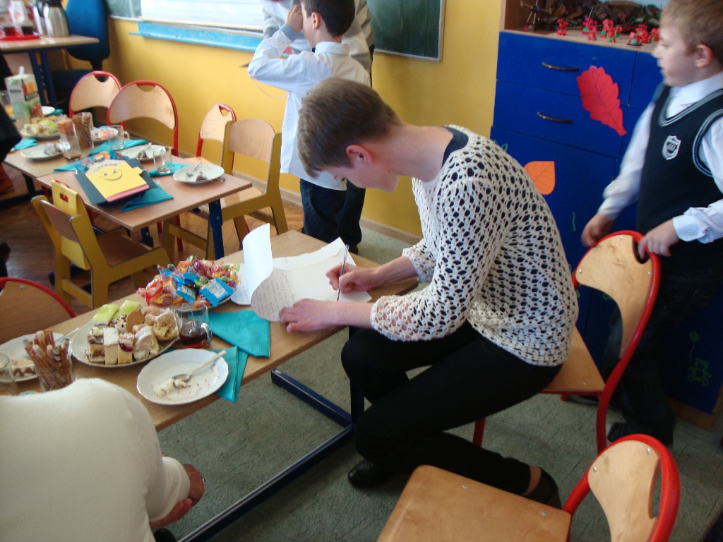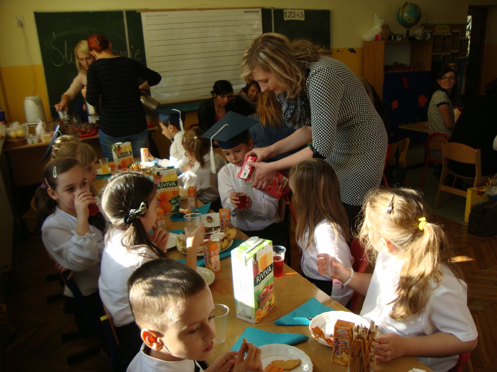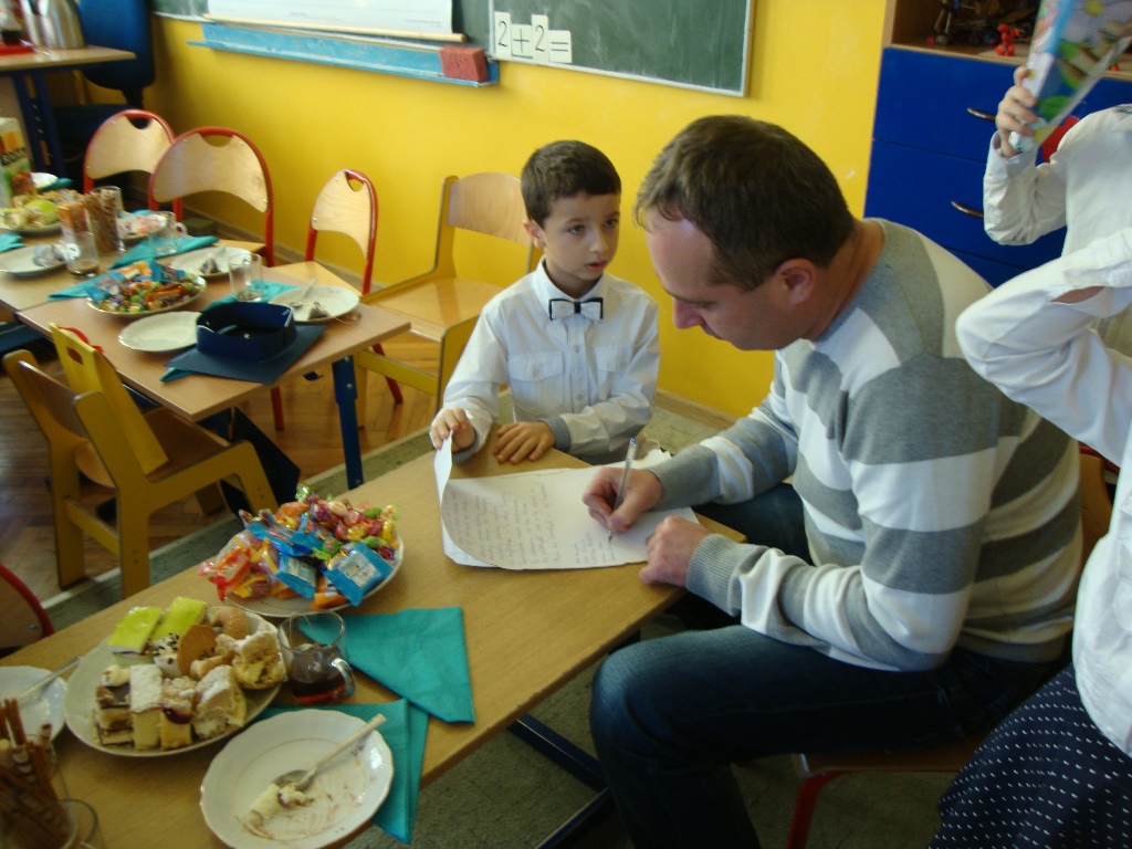 Ważnym punktem uroczystości była obietnica złożona przez rodziców pierwszoklasistów, którzy zobowiązali się do doceniania każdego wysiłku swego dziecka i wspomagania szkoły w jego rozwoju. Niespodziankę dla młodszych kolegów przygotowali uczniowie klasy drugiej. Najpierw zaprezentowali krótki występ, później obdarowali ich prezentami, a po uroczystości zaprosili na słodki poczęstunek.
