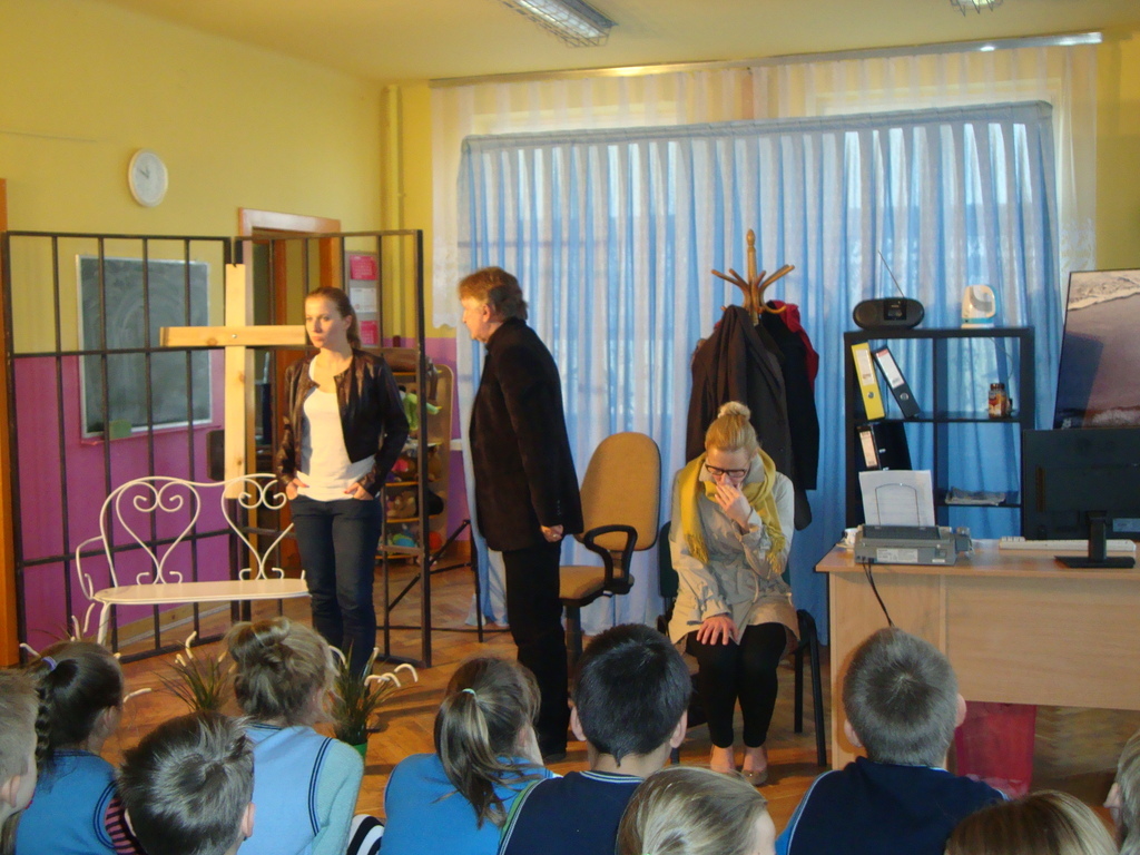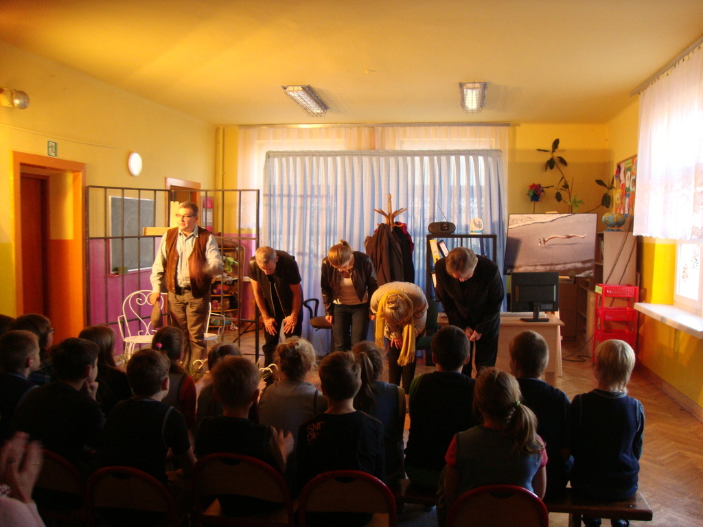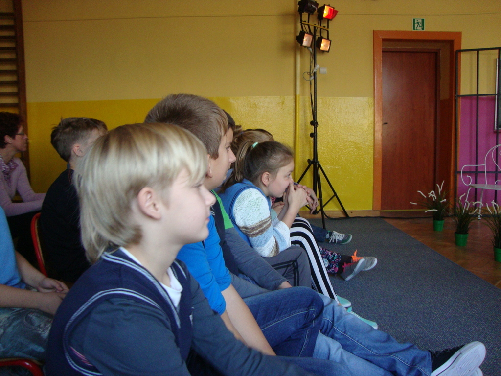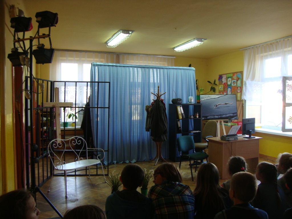Stało się już tradycją, że co roku do naszej szkoły przyjeżdżają aktorzy Teatru Zwierciadło z Łodzi ze spektaklami problemowymi lub profilaktycznymi. Tym razem, 5 listopada, pokazali uczniom klas V i VI przedstawienie pt.,,Skaza”. Główną bohaterką sztuki była zbuntowana nastolatka, która przez przypadek poznała, przez lata skrywaną, rodzinną tajemnicę. W rozwiązaniu zagadki o jej pochodzeniu pomagali jej szkolny pedagog i dziennikarz śledczy. Ostatecznie dziewczyna poznała prawdę o swojej tożsamości, ale dowiedziała się również, że młodzieńcza lekkomyślność i pochopne działanie – sięgnięcie po alkohol- mogą stać się skazą na całe życie.