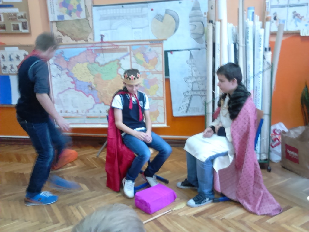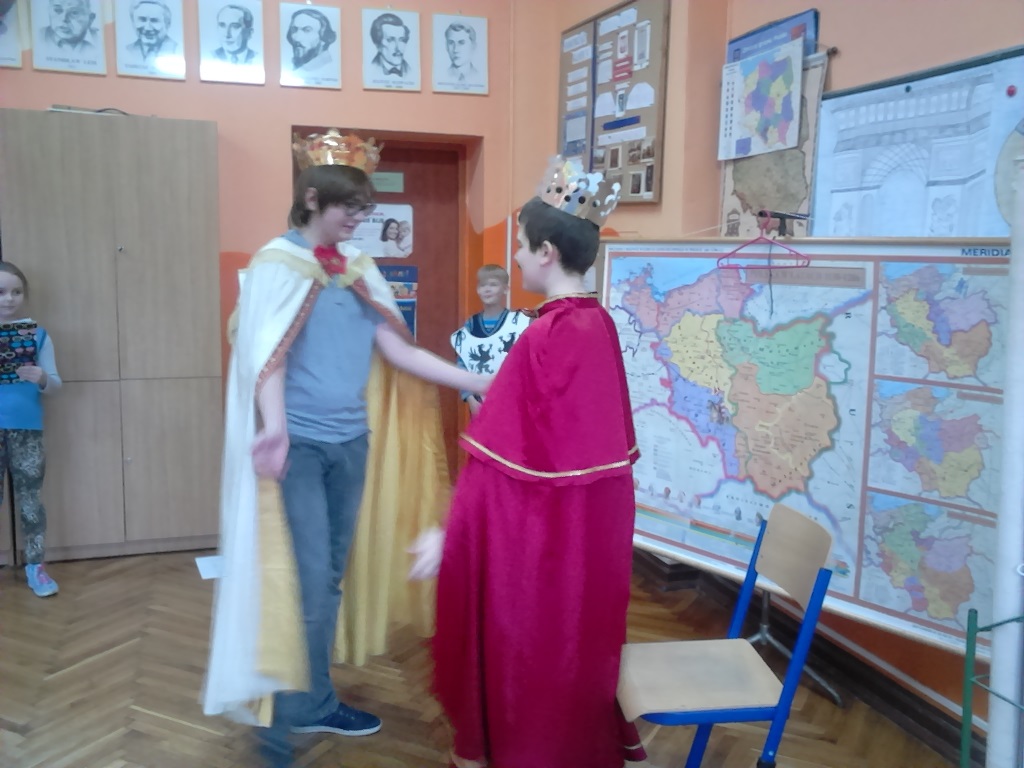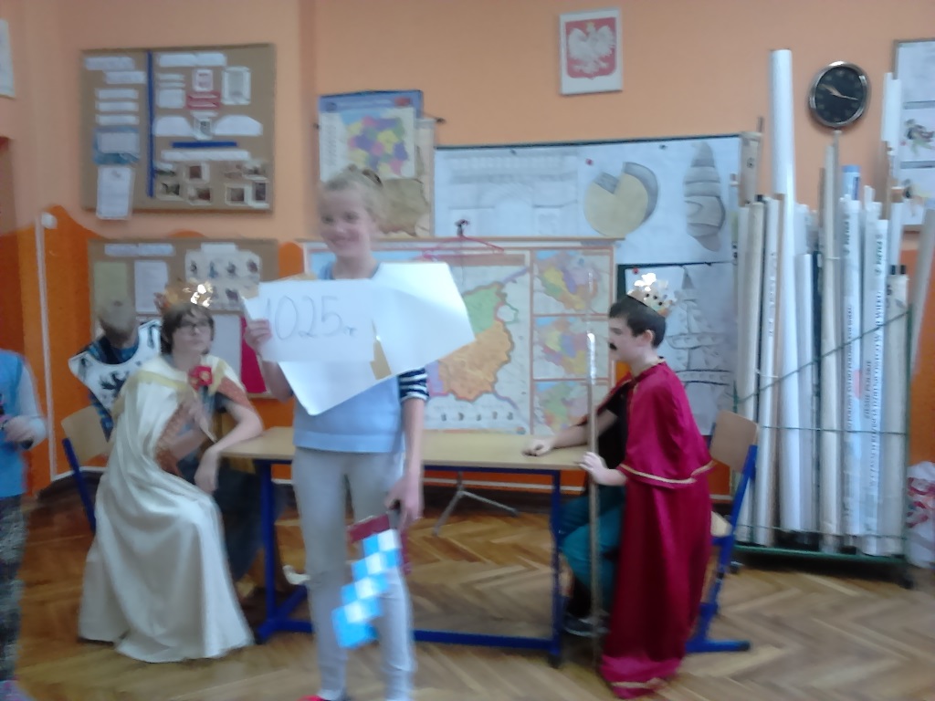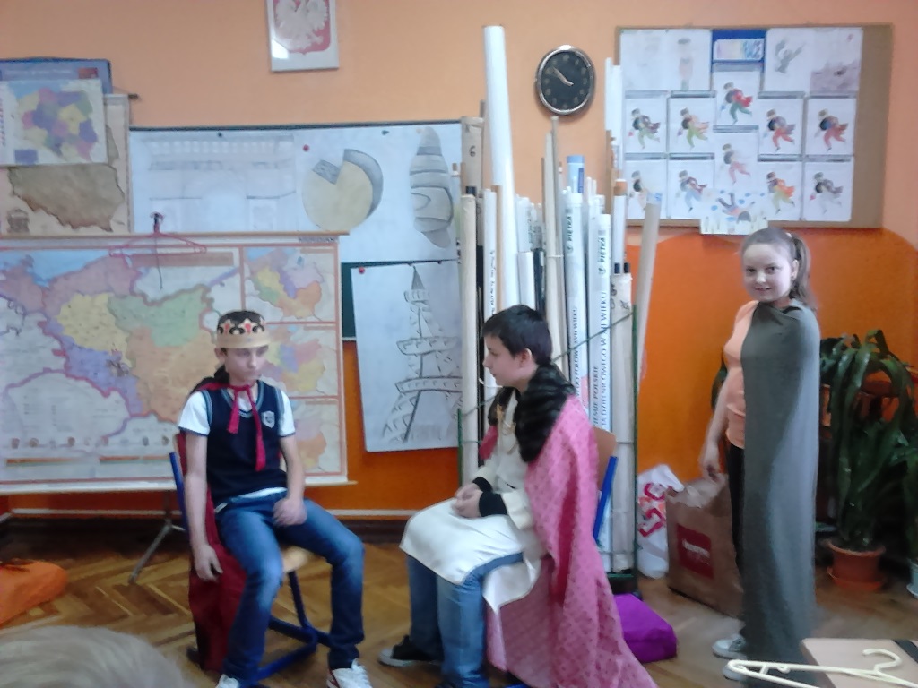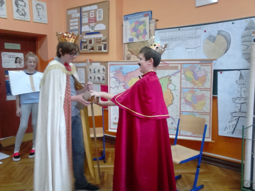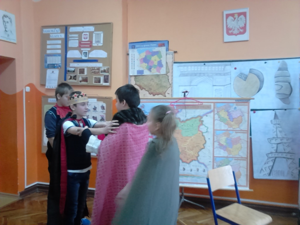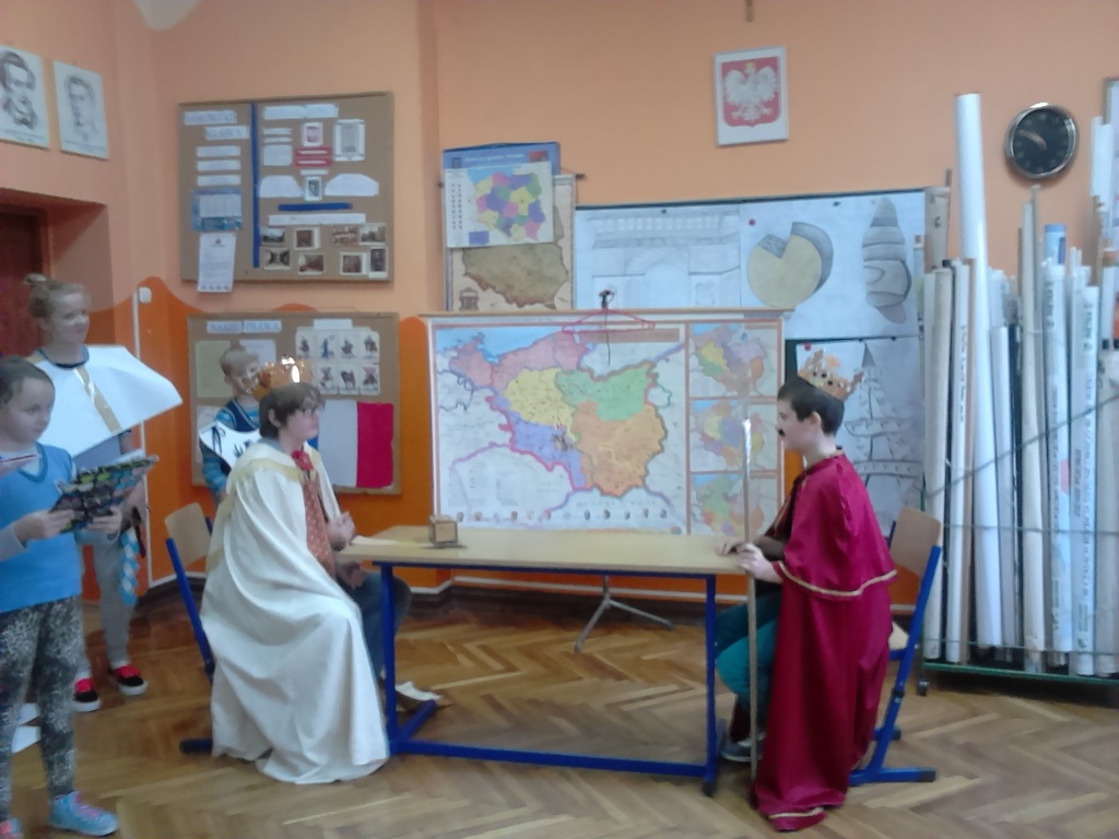 Lekcja historii przeprowadzona w klasie V w formie scenek dramowych przygotowanych przez uczniów.