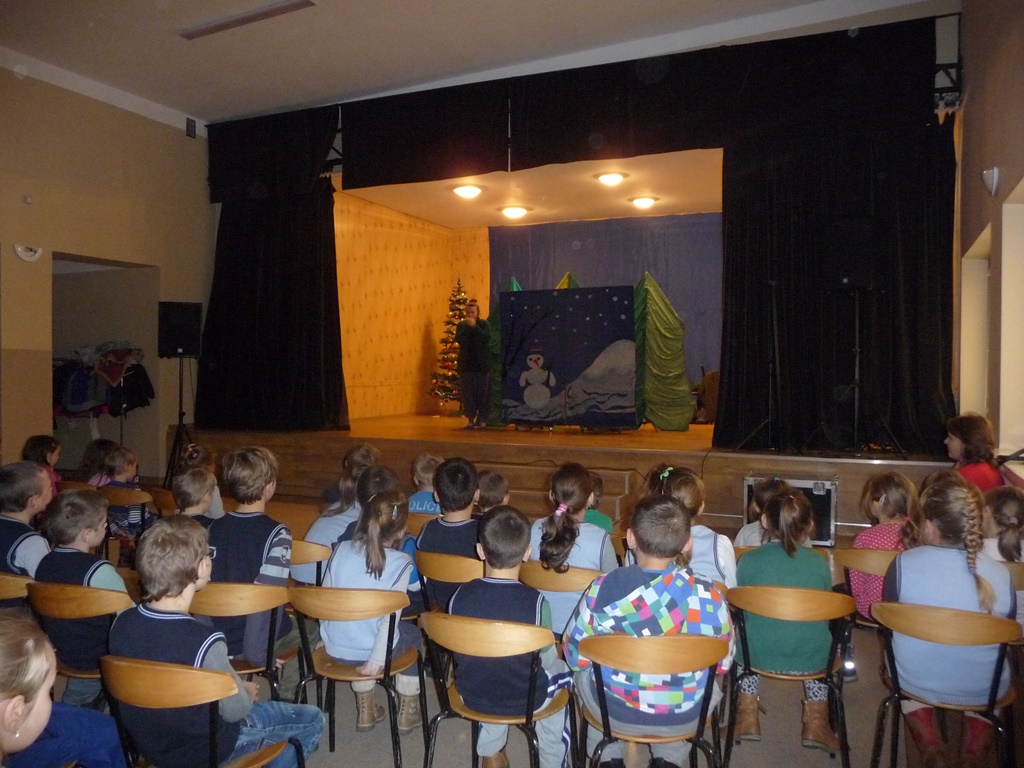 W czwartek 11 grudnia dzieci z naszej szkoły wzięły udział w przedstawieniu mikołajkowym w wykonaniu Teatru „Psikus” z Łodzi pt. „Zimowe niespodzianki”. Była to opowieść o psotnym i leniwym rodzeństwie Marcinie i Agatce, które zapomniało o zbliżających się świętach, choince, prezentach, a przede wszystkim zaniedbało przedświąteczne porządki. Wszystko więc wskazywało na to, że tegoroczne święta będą dla nich smutne i nudne. Jednak sytuacja się zmienia, gdy do pobliskiego lasu trafia Mikołaj, który w wyniku wypadku traci torbę z prezentami i sanie. Szybko okazuje się, że to przykre dla Mikołaja doświadczenie pomaga dzieciom i pozytywnie wpływa na całą historię. Rodzeństwo zaczyna w pełni cieszyć się zimą i Świętami Bożego Narodzenia. Świąteczna scenografia i nastrojowa muzyka wprowadziła młodych widzów w radosny okres oczekiwania na te wyjątkowe Święta.