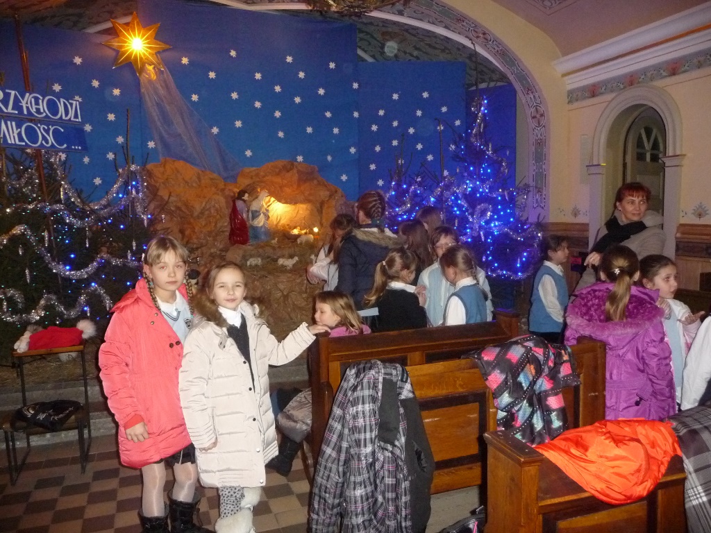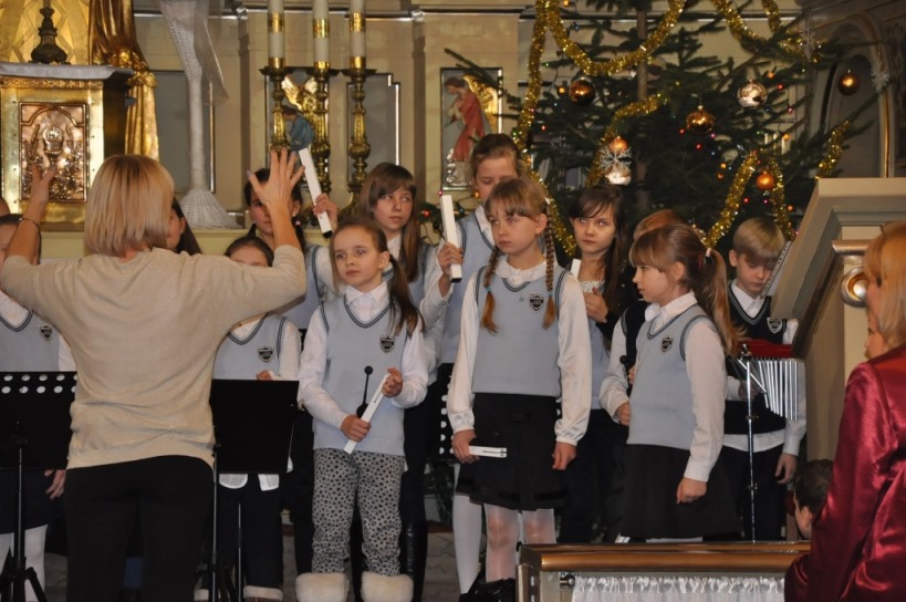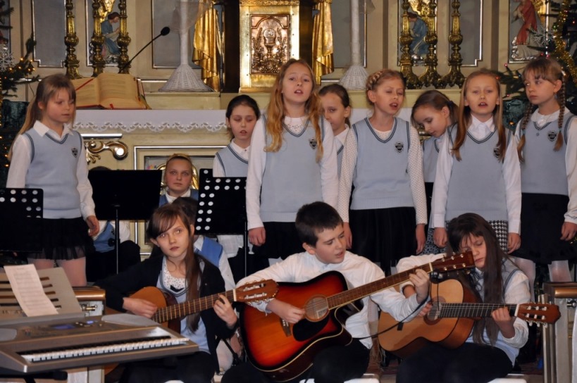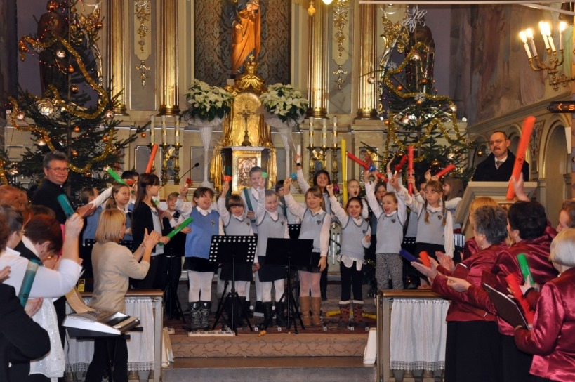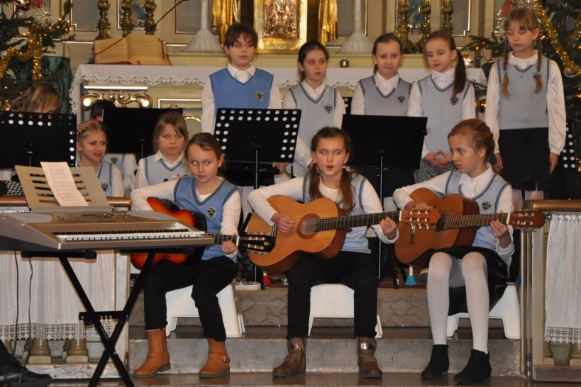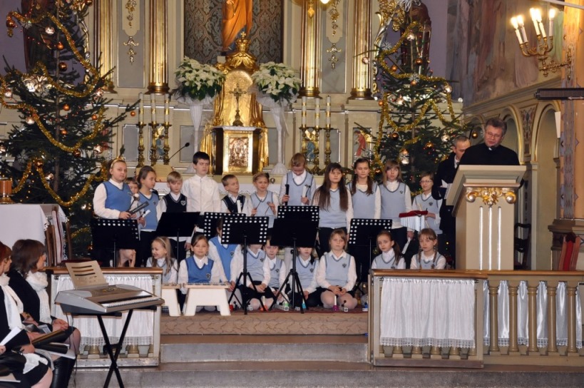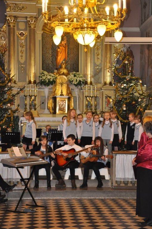 Młodzi artyści z Niesułkowa dali popis perfekcyjnie opanowanych umiejętności gry na gitarach, bum bum rurkach i dzwonkach rurowych. Ich wokalno- instrumentalne aranżacje powszechnie znanych kolęd m.in. ,,Gdy się Chrystus rodzi”, ,,Pójdźmy wszyscy do stajenki”, ,,Oj maluśki” zrobiły duże wrażenie na publiczności i były żywo komentowane po koncercie. Rarytasem sobotniego wieczoru było wspólne odśpiewanie kolędy ,,Dzisiaj w Betlejem” przez oba chóry wspomagane przez dzieci, pod batutą Pani Bożeny Urquidi. Zsynchronizowane brzmienie i emocjonalny przekaz wykonania na długo pozostanie w pamięci publiczności.