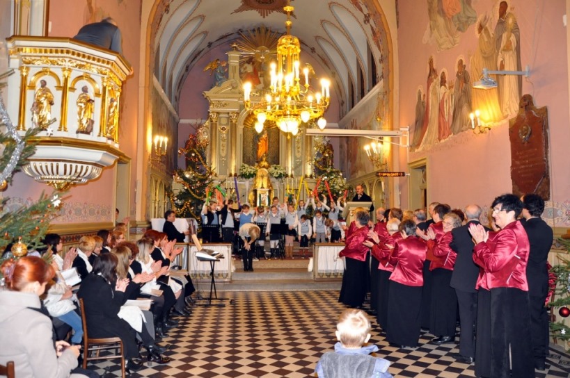W kameralnych wnętrzach świątyni swój wokalny bożonarodzeniowy repertuar zaprezentowali zawodowi artyści ze Stowarzyszenia Śpiewaczego im. Stanisława Moniuszki w Łodzi- najstarszego łódzkiego chóru oraz miłośnicy – amatorzy muzyki chóralnej- chór CanTaDeo działający przy parafii św. Judy Tadeusza w Łodzi oraz zespół ,,Od dzwonka do dzwonka” i grupa gitarowa z niesułkowskiej Sienkiewiczówki. Koncert poprowadził Marek Nowicki- nauczyciel ze Szkoły Podstawowej w Koźlu.