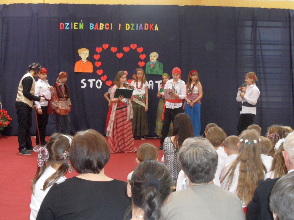 ,,Dziadkowie to instytucja działająca 24 godziny na dobę”- takiego porównania dokonała Dyrektor Jadwiga Kapusta w swoim przemówieniu otwierającym w dn. 22 stycznia obchody Dnia Babci i Dziadka. W kontekście słów p. Dyrektor można jeszcze dodać, że Dziadkowie to instytucja, która nigdy nie zawodzi. Najlepszym tego dowodem była ich liczna obecność na czwartkowej uroczystości. W prezencie dla zaproszonych gości uczniowie przygotowali niezwykle urozmaicony program artystyczny, na który składały się recytacje wierszy, skecze i dowcipy, bogaty repertuar piosenek oraz układy tańców ludowych i nowoczesnych. Widowisko trwające prawie dwie godziny wzbudzało spontaniczne reakcje Babć i Dziadków, którzy raz po raz wybuchali salwą śmiechu, by po chwili popaść w zadumę lub wzruszyć się. Dziadkowie to najbardziej wdzięczni widzowie, którzy bezkrytycznie przyjmują to, co pokazują wnuki, dlatego też występy uczniów były przez nich długo i głośno oklaskiwane. Po zakończeniu programu artystycznego Dziadkowie mieli chwilę, by uściskać wnuki, wymienić się wrażeniami i skosztować słodkich smakołyków na przygotowanym dla Nich przyjęciu w szwedzkim stylu.