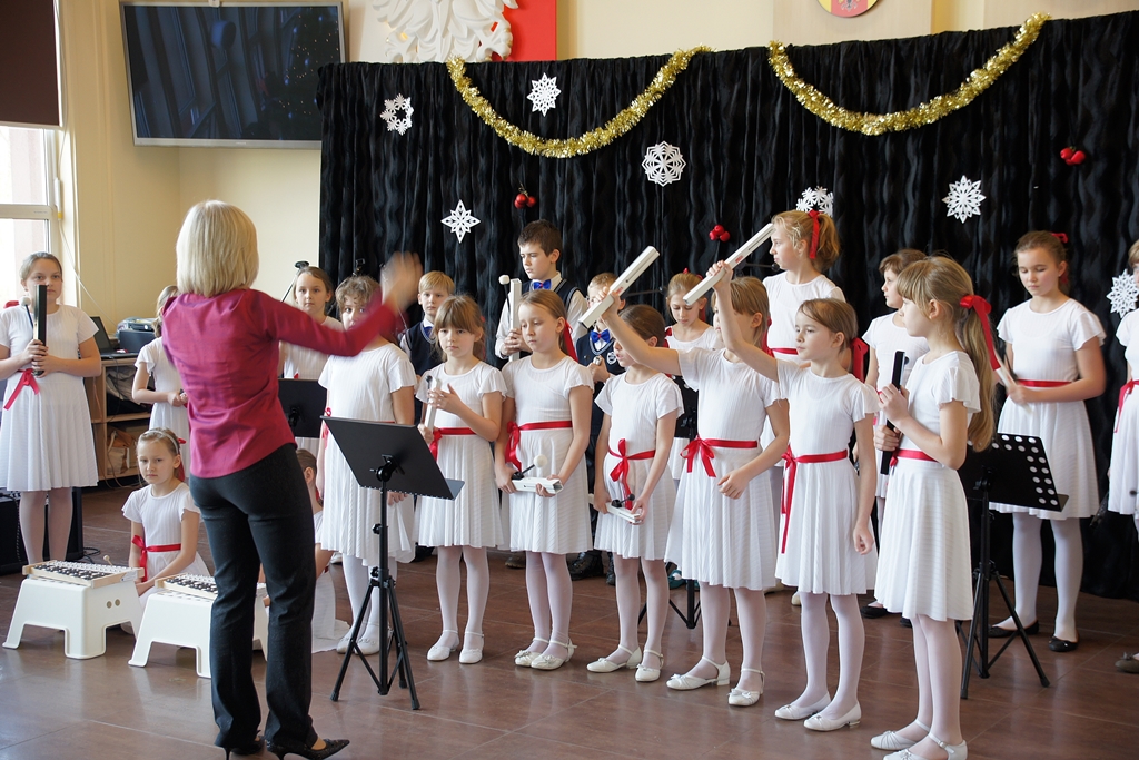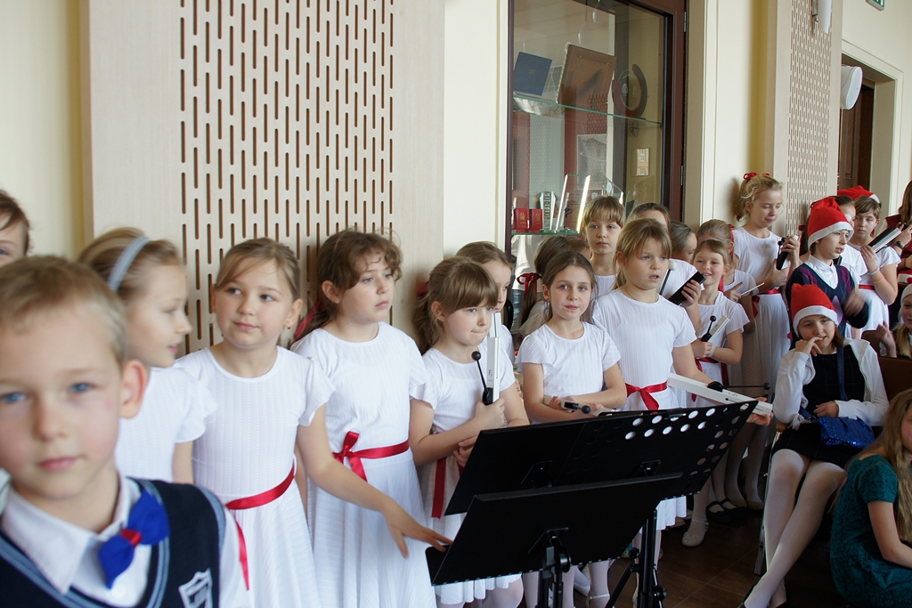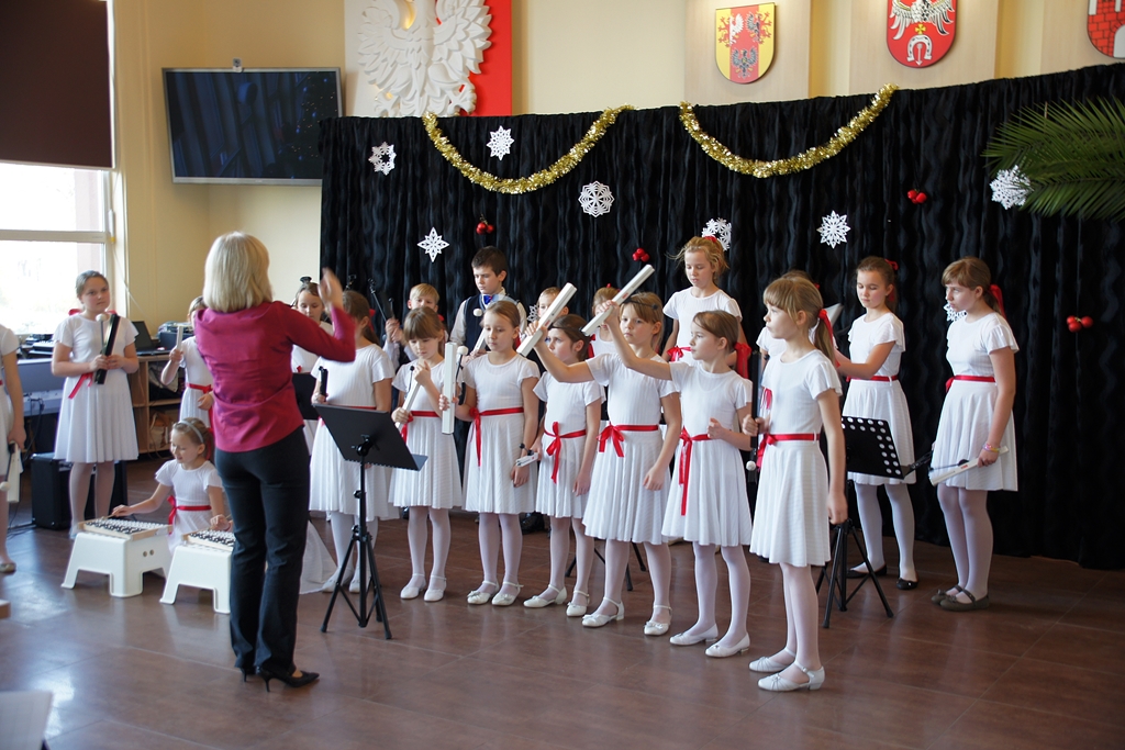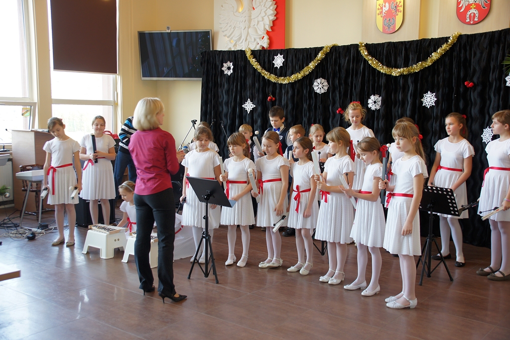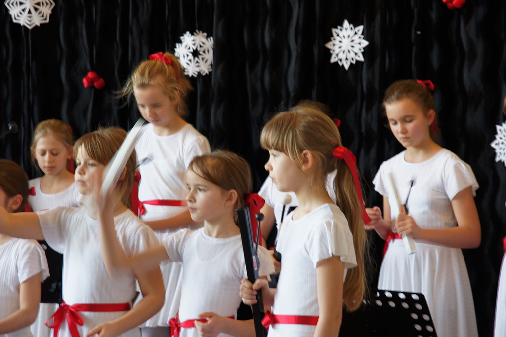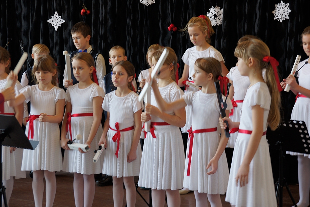 Dzieci niesułkowskiej szkoły zaprezentowały instrumentalną wersję ukraińskiej „Kolędy dzwonów” wykonaną na dzwonkach rurowych ręcznych.