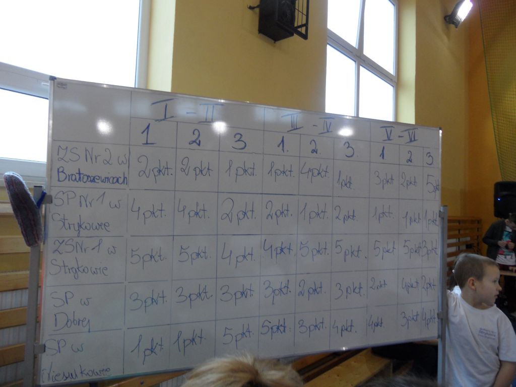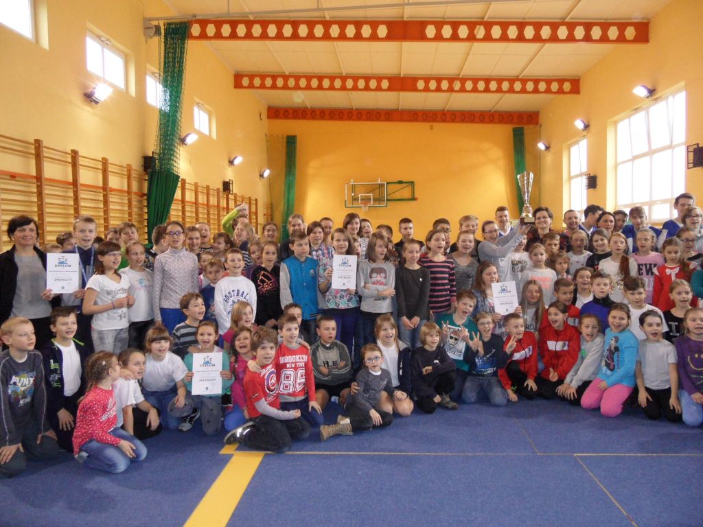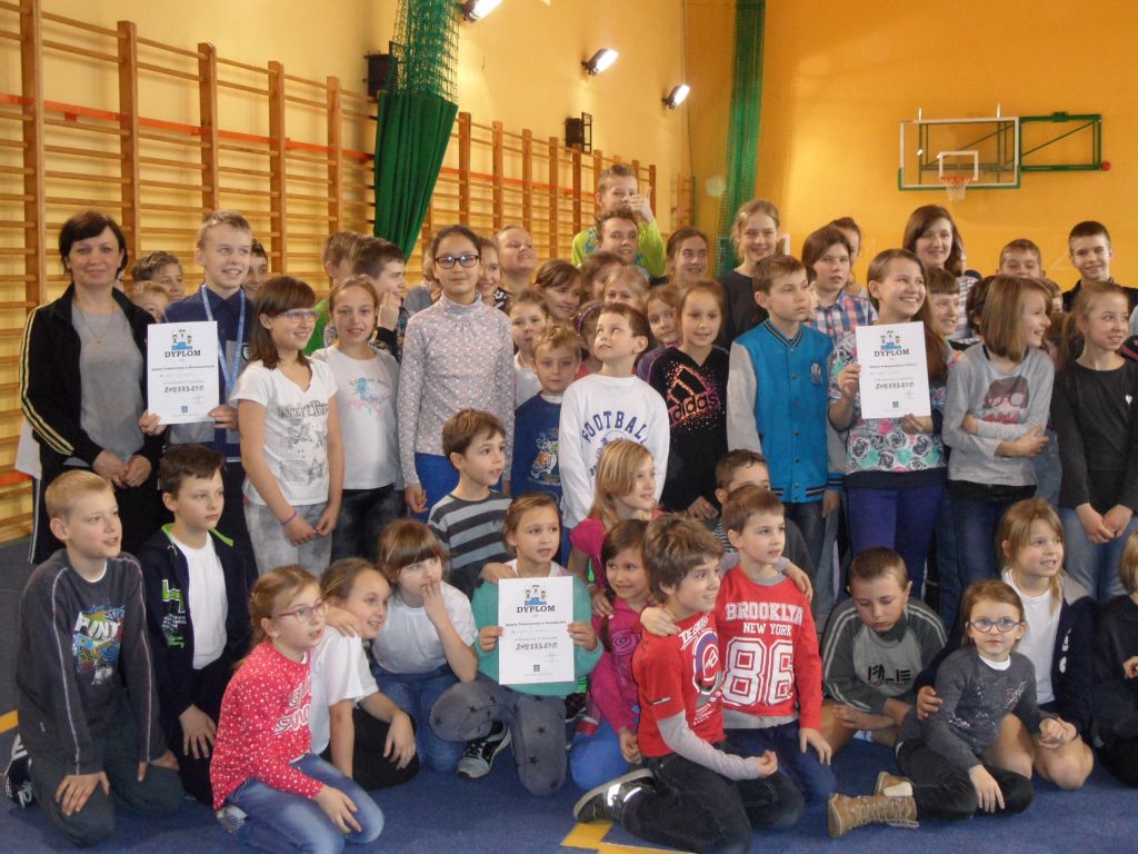 Myli się ten kto myśli, że tak zwane "wyścigi rzędów" polegają na pokonaniu toru przeszkód w jak najkrótszym czasie. Przekonała się o tym reprezentacja naszej szkoły, która już po raz kolejny uczestniczyła w gminnych eliminacjach Konkursu 5 Milionów. Organizatorem zawodów był ZS nr 2 w Bratoszewicach. Do rywalizacji zgłosiło się pięć szkół, które wystawiły 24 osobowe drużyny składające się z uczniów klas I-VI. Zawodnicy, w swoich grupach wiekowych, przenosili ringo, "sadzili ziemniaki", skakali na piłce z uszami i na skakance, kozłowali piłkę oraz toczyli oponę. Po podliczeniu wszystkich punktów okazało się, że popełniliśmy kilka błędów i mimo, iż najszybciej wykonywaliśmy poszczególne zadania to ostatecznie zajęliśmy II miejsce.