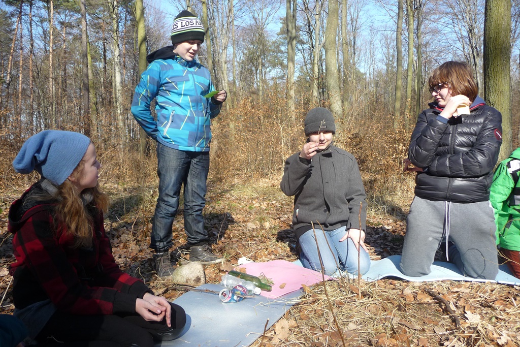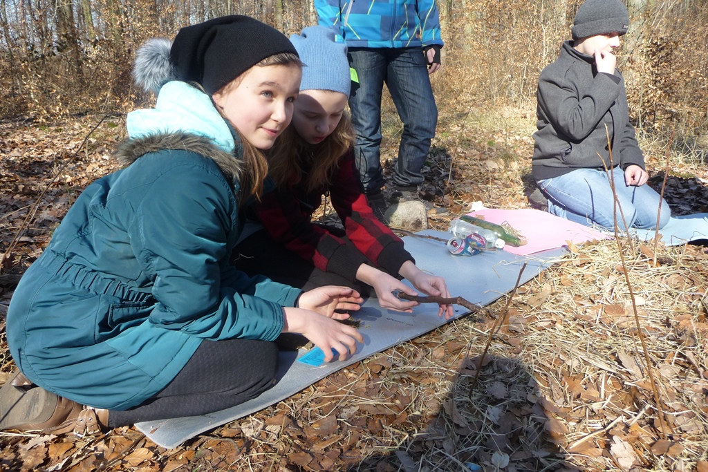 Czas spędzony z uczniami w lesie bez wątpienia nie jest zmarnowaną lekcją! Pokazały to marcowe zajęcia terenowe, w których uczniowie chętnie i aktywnie brali udział. Podczas pierwszego spotkania z edukatorem ekologicznym uczniowie klasy V poznawali najbliższe otoczenie. Tworzyli między innymi mapę otoczenia, wykorzystując elementy przyrody charakterystyczne dla danego miejsca, natomiast wsłuchując się w dźwięki otaczającej ich przyrody na "płytach CD" tworzyli mapy dźwiękowe. Uczniowie udali się również na poszukiwanie skarbów - ich zadaniem było np. odnalezienie nasionka, piórka, czegoś wydającego odgłosy. Piątoklasistom udało się także stworzyć wspaniałą naturalną orkiestrę ze znalezionych w lesie elementów przyrody . Drugie spotkanie w rezerwacie przyrody dotyczyło zwierząt leśnych i ich życia. Uczniowie udali się m.in. na poszukiwanie tropów i śladów bytowania zwierząt w lesie, a także starali się rozpoznać, które ze zwierząt mogły je pozostawić. Natomiast podczas zabawy "Zwierzęta i zasoby" przypomniały sobie zależności panujące w przyrodzie. Teraz uczniowie z niecierpliwością czekają na kolejne spotkanie z "przyrodą", które odbędzie się już 17 kwietnia.
