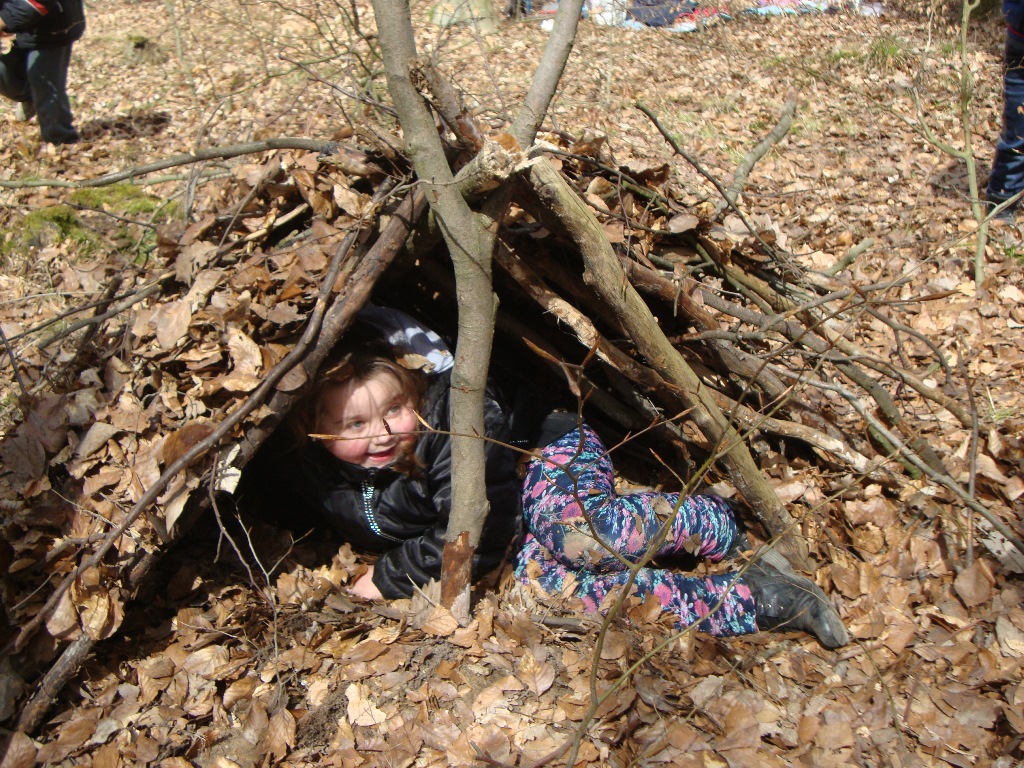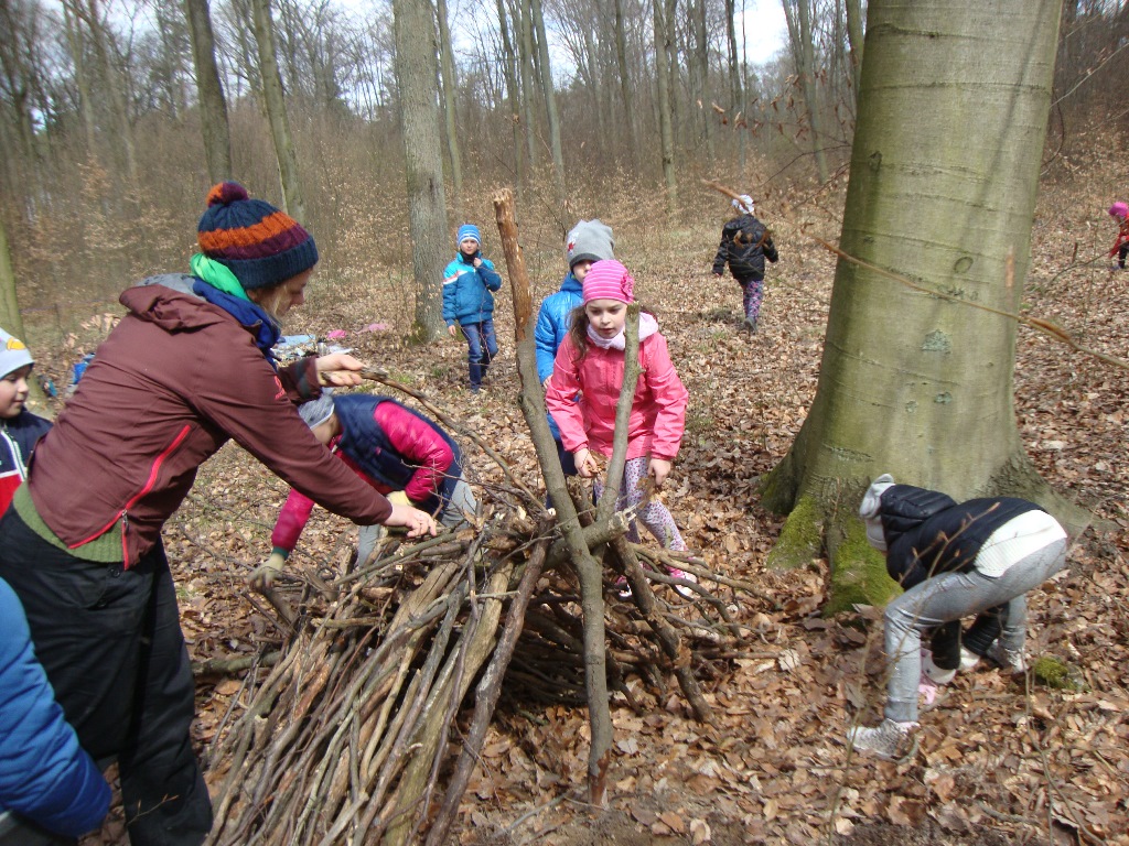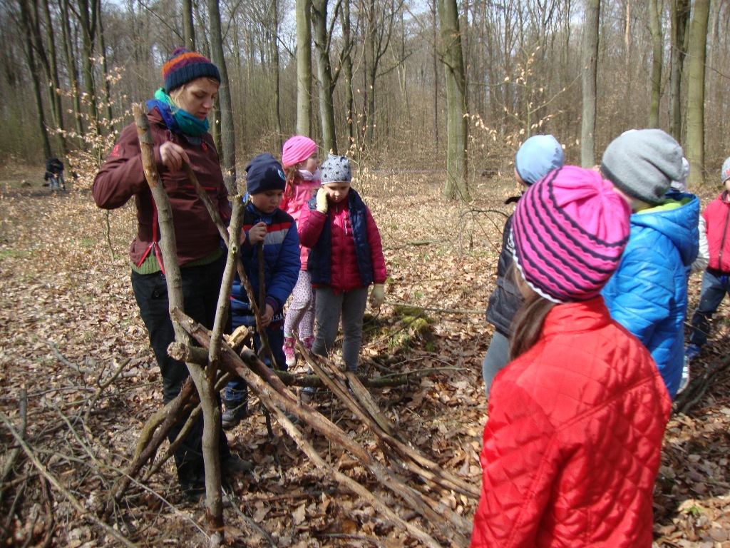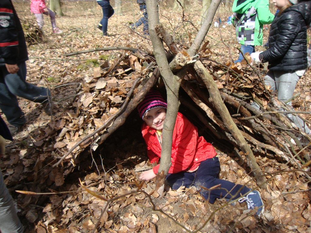 Podczas tych zajęć pierwszaki zbudowały szałas.
