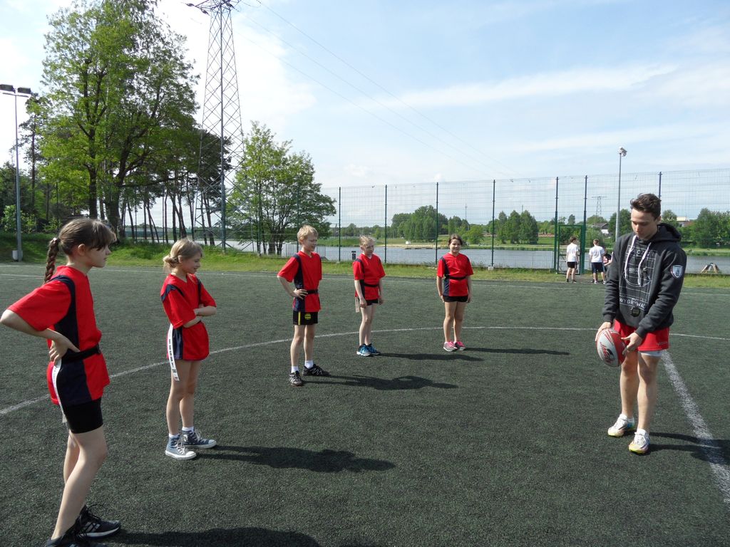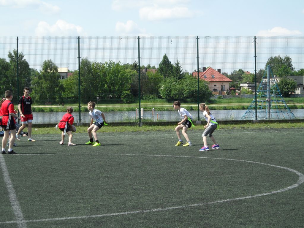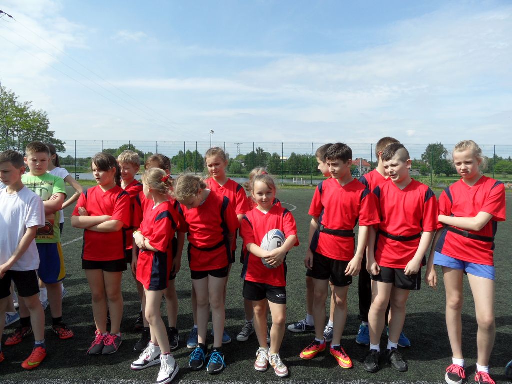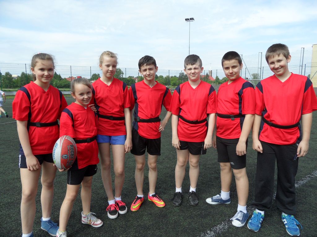 Już po raz drugi w tym roku szkolnym uczniowie naszej szkoły wystartowali w zawodach rugby tag, tym razem były to gminne eliminacje Szkolnej Ligi. W tych rozgrywkach szkoły wystawiały do rywalizacji drużyny z poszczególnych klas. Zgodnie z obowiązującymi przepisami w pięcioosobowej drużynie musiała wystąpić choć jedna zawodniczka. W przypadku naszej szkoły, w klasach IV i V, nie mieliśmy z tym żadnych problemów wręcz przeciwnie byliśmy jedyną szkołą, która miała w swych szeregach tak dużo dziewcząt. Turniej rozgrywany był w systemie "każdy z każdym", a o zwycięstwo oprócz naszych drużyn walczyli zawodnicy z ZS nr 1 w Strykowie i SP w Dobrej. Ostatecznie po wyrównanych i zaciętych meczach reprezentacja klasy IV zajęła III miejsce, a zawodnicy klasy V zajęli II miejsce.