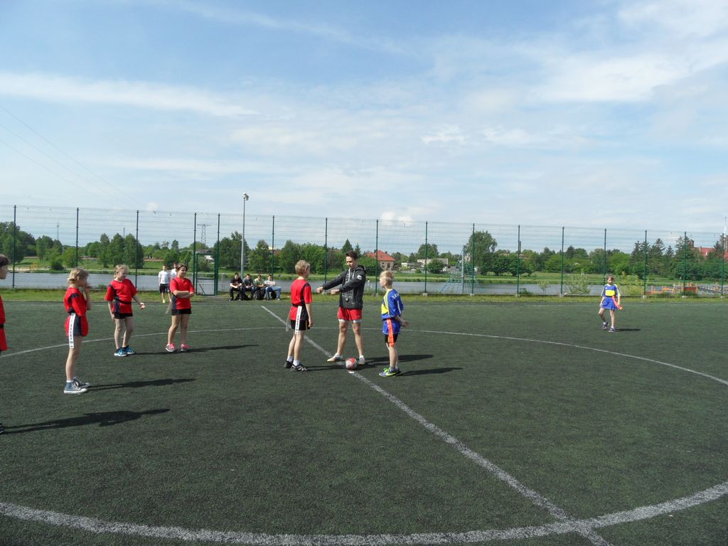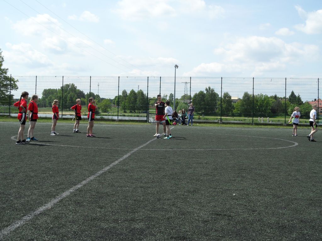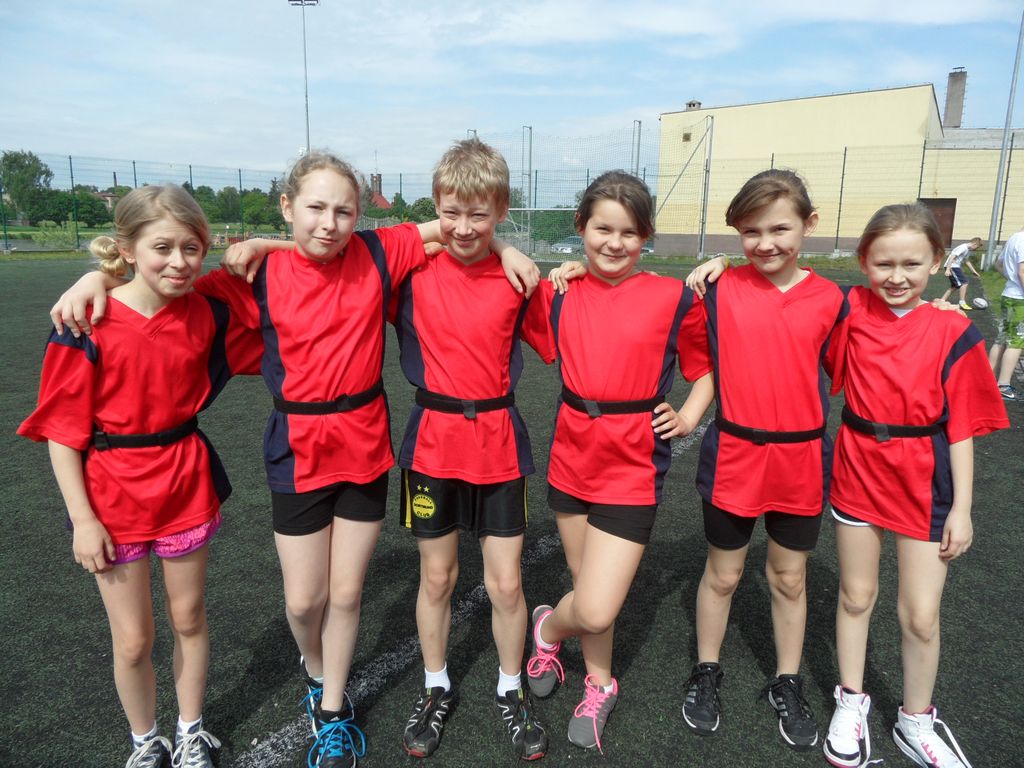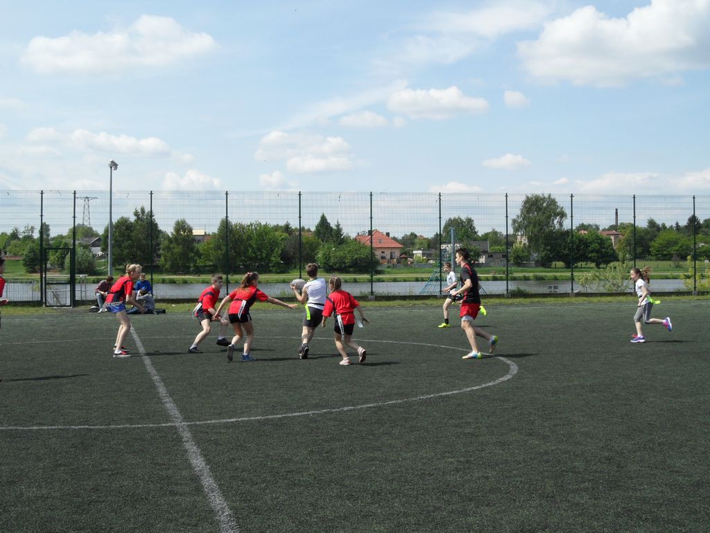 Już po raz drugi w tym roku szkolnym uczniowie naszej szkoły wystartowali w zawodach rugby tag, tym razem były to gminne eliminacje Szkolnej Ligi. W tych rozgrywkach szkoły wystawiały do rywalizacji drużyny z poszczególnych klas. Zgodnie z obowiązującymi przepisami w pięcioosobowej drużynie musiała wystąpić choć jedna zawodniczka. W przypadku naszej szkoły, w klasach IV i V, nie mieliśmy z tym żadnych problemów wręcz przeciwnie byliśmy jedyną szkołą, która miała w swych szeregach tak dużo dziewcząt. Turniej rozgrywany był w systemie "każdy z każdym", a o zwycięstwo oprócz naszych drużyn walczyli zawodnicy z ZS nr 1 w Strykowie i SP w Dobrej. Ostatecznie po wyrównanych i zaciętych meczach reprezentacja klasy IV zajęła III miejsce, a zawodnicy klasy V zajęli II miejsce.