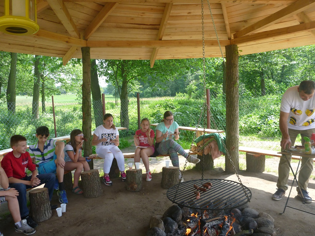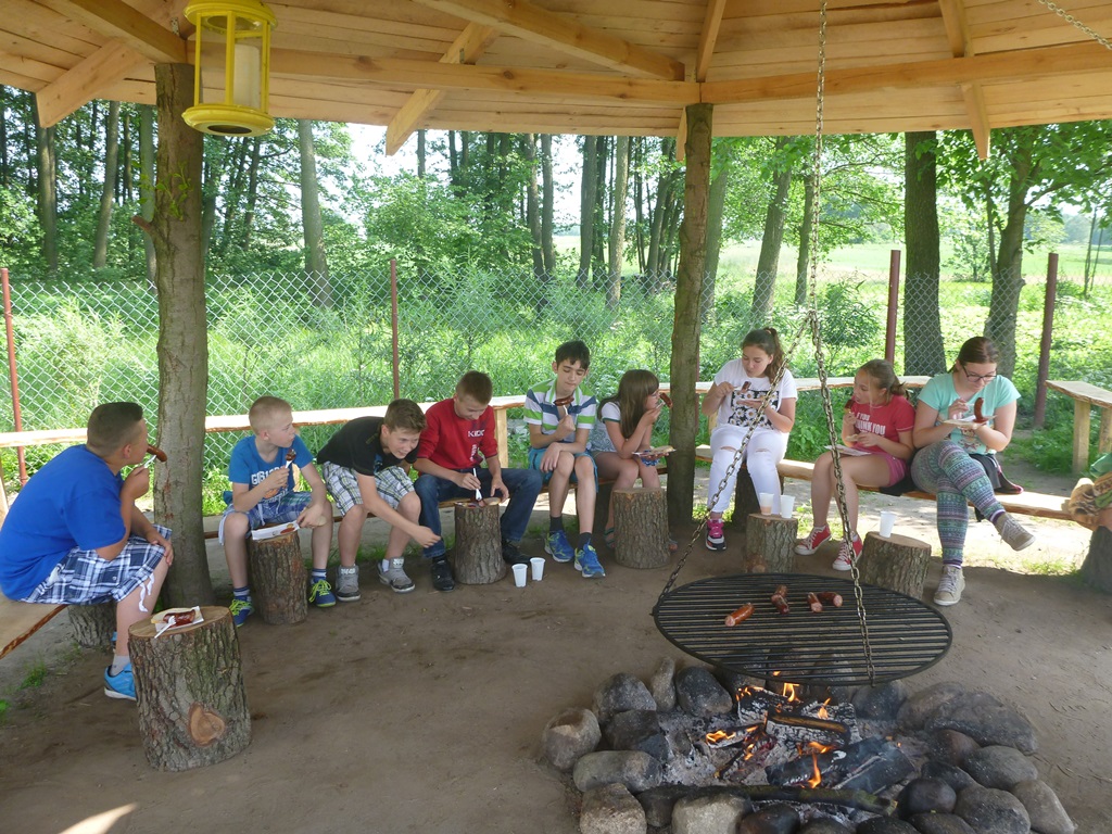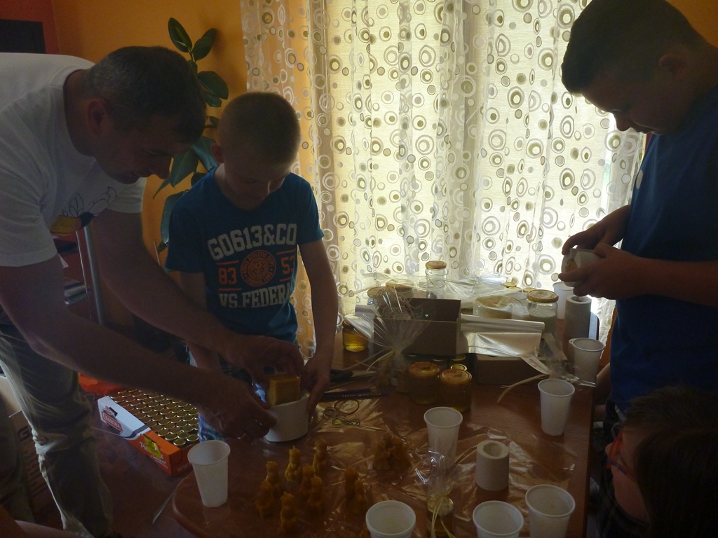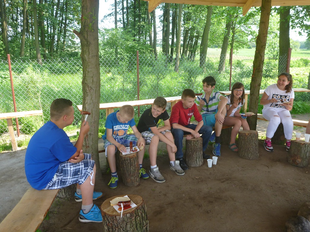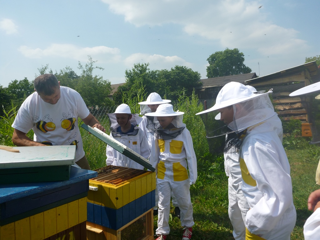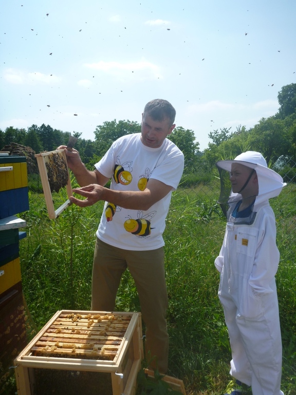 12 maja 2015r. uczniowie kl. VI, dzięki uprzejmości p. Dariusza Serafińskiego, mieli możliwość odwiedzenia pasieki. Spotkanie pełne było wrażeń. Uczniowie przebrani w stroje pszczelarskie mieli okazję zwiedzić pasiekę i posłuchać ciekawych opowieści o życiu pszczół. Szóstoklasiści mogli z bliska zobaczyć pszczoły pracujące we wnętrzu ula, odszukać wśród pszczół królową, potrzymać w dłoni trutnia, a także zaobserwować jak rój pszczół opuszcza ul. Nie zabrakło również wyrabiania świec z wosku pszczelego i degustacji miodu. Na zakończenie spotkania na uczniów czekała niespodzianka - przygotowane przez p. Dariusza ognisko z kiełbaskami.