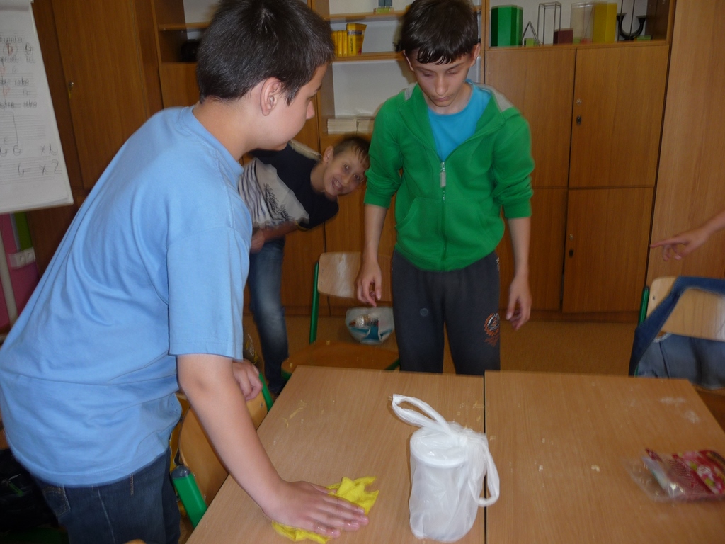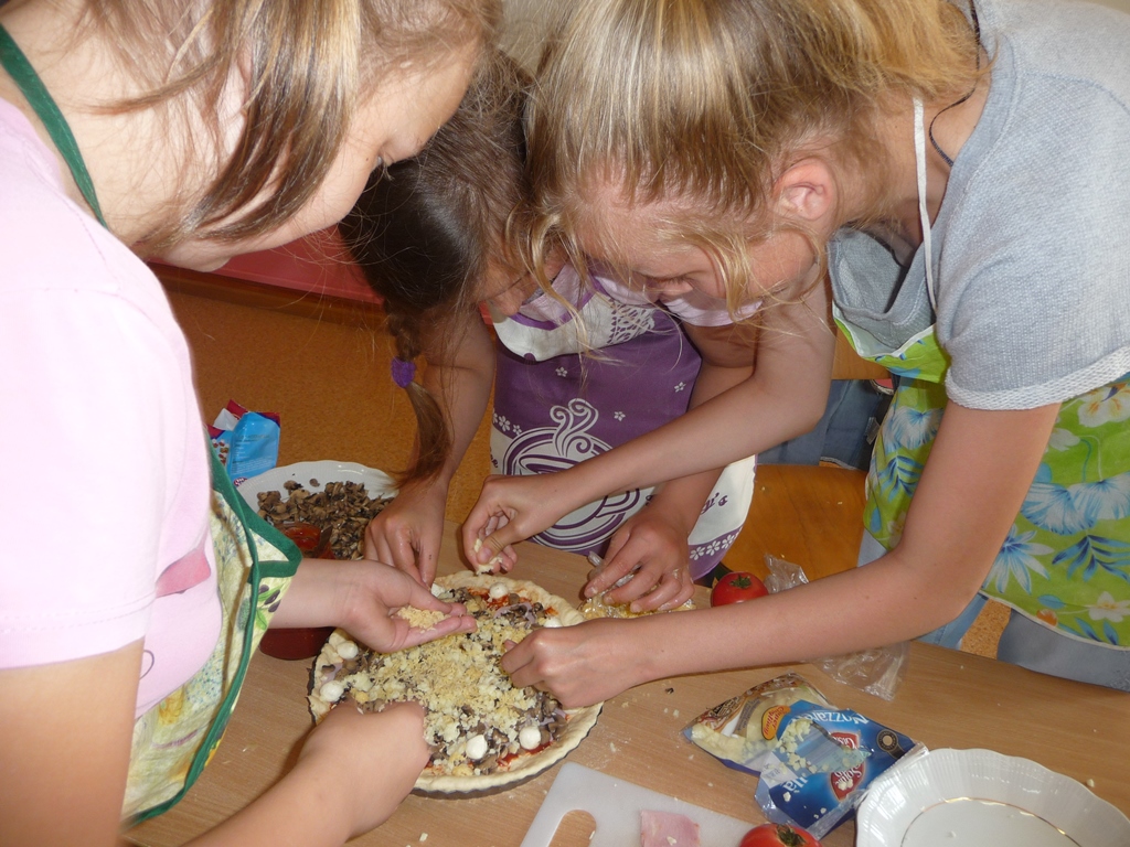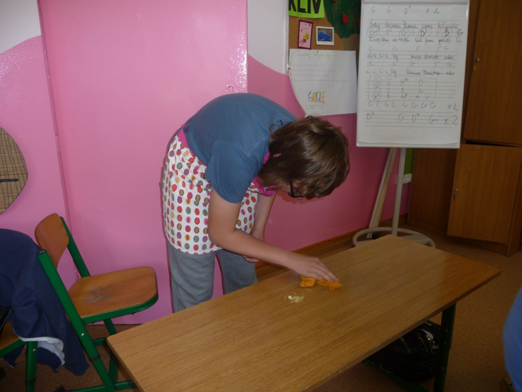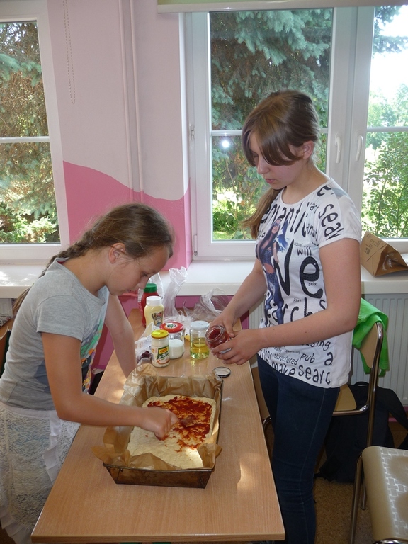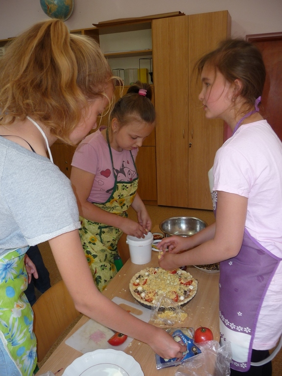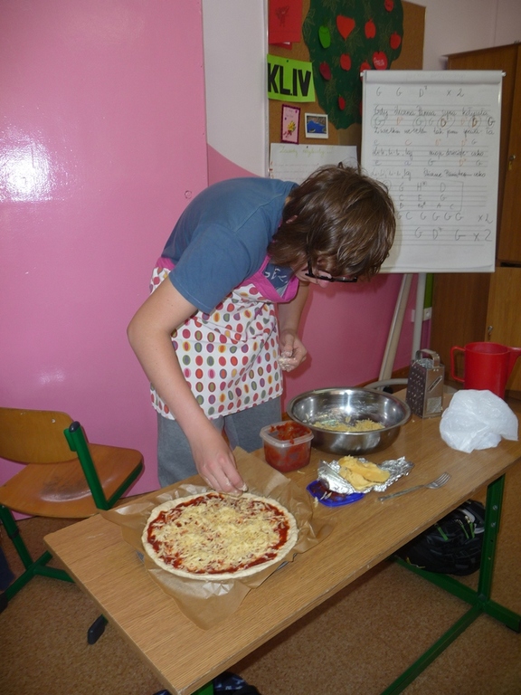 Zajęcia techniczne w klasie V. Najpierw wyrabianie ciasta, później układanie dodatków, pieczenie i ....wreszcie degustacja. PYSZNEEEEE!!!!