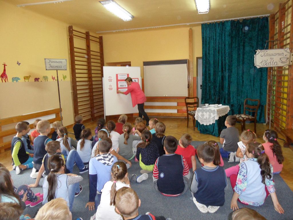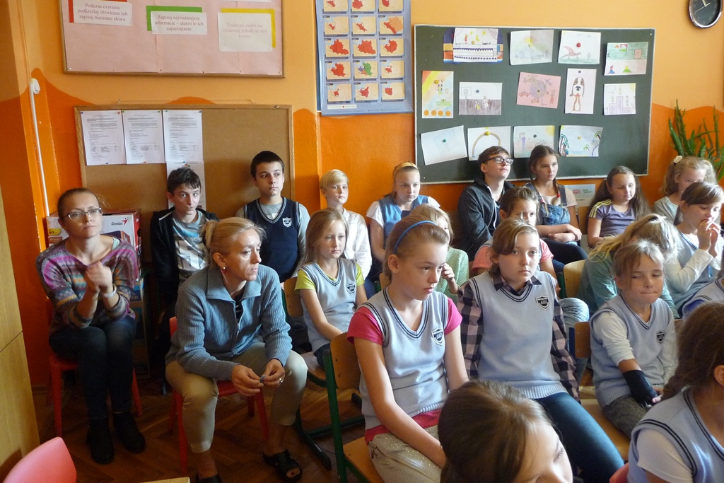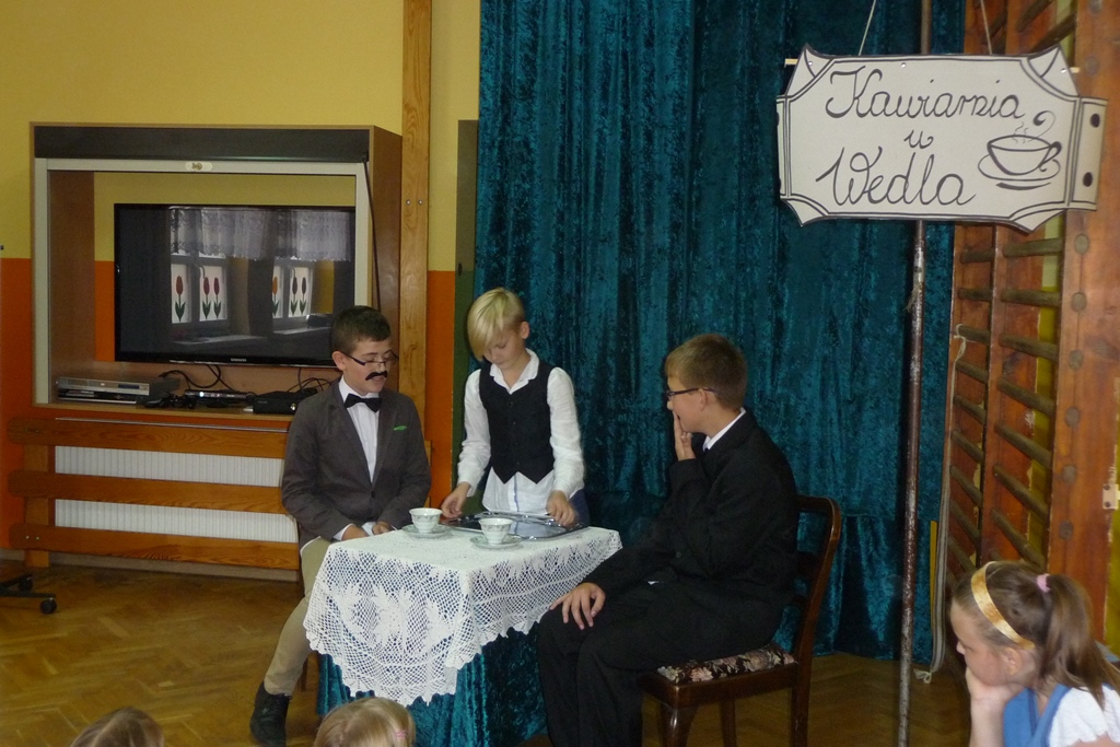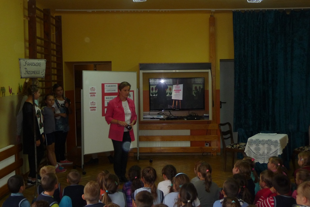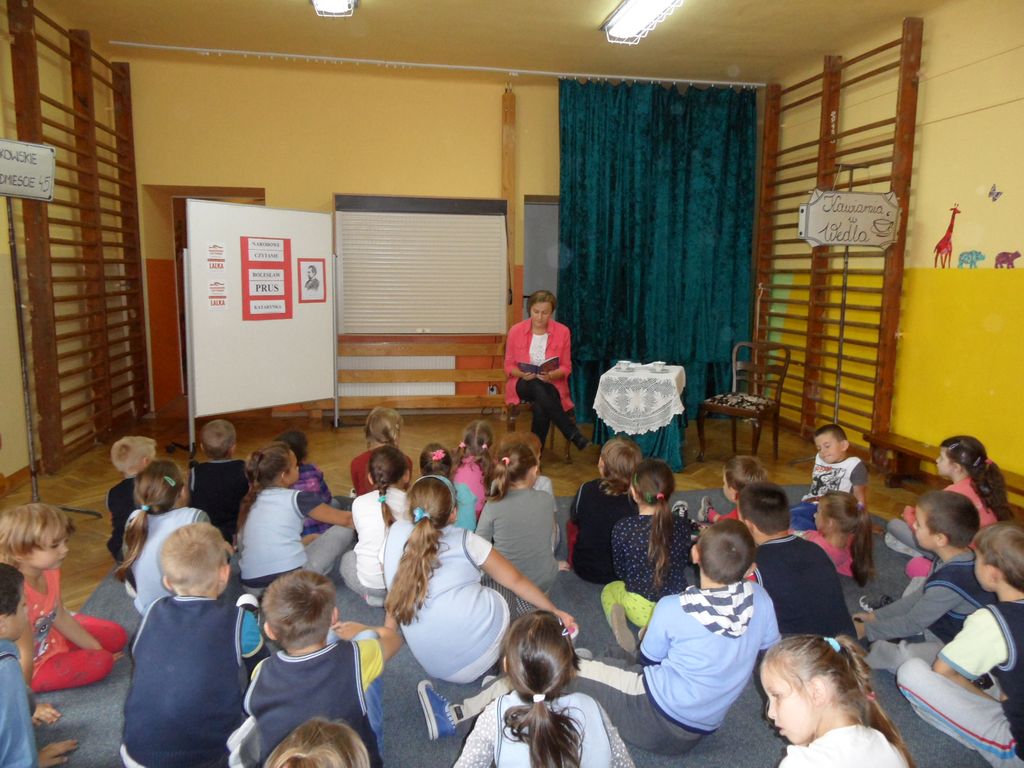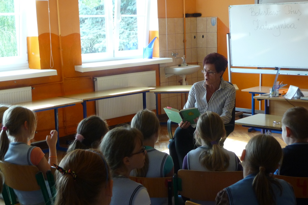 Po raz drugi włączyliśmy się do akcji Narodowego Czytania. To już czwarta edycja, której patronuje Prezydent RP. W bieżącym roku Polacy czytali ,,Lalkę” Bolesława Prusa, a czynili to w piękną, słoneczną pierwszą sobotę września. My zorganizowaliśmy zbiorowe czytanie nieco później, bo jedenastego września i ze względu na naszą nieznajomość problematyki ,,Lalki” i trudność w jej zrozumieniu, słuchaliśmy czytanej ,,Katarynki”. Najpierw wszyscy gromadnie zebraliśmy się w sali świetlicowej, by obejrzeć przygotowane przez uczniów klasy VI krótkie przedstawienie pt.,,Spotkanie H. Sienkiewicza z B. Prusem”. Scenka przypomniała nam kilka ważnych faktów z życia Patrona, ale przede wszystkim zapoznała nas z pisarzem Bolesławem Prusem i jego twórczością. Później podzieliliśmy się na dwie grupy. Klasy młodsze wzięły udział w zajęciach przygotowanych przez p. Walak, a klasy starsze przejęła p. Lipińska. Każda z grup, na dostępnym dla siebie poziomie, pracowała z tekstem noweli ,,Katarynka”.