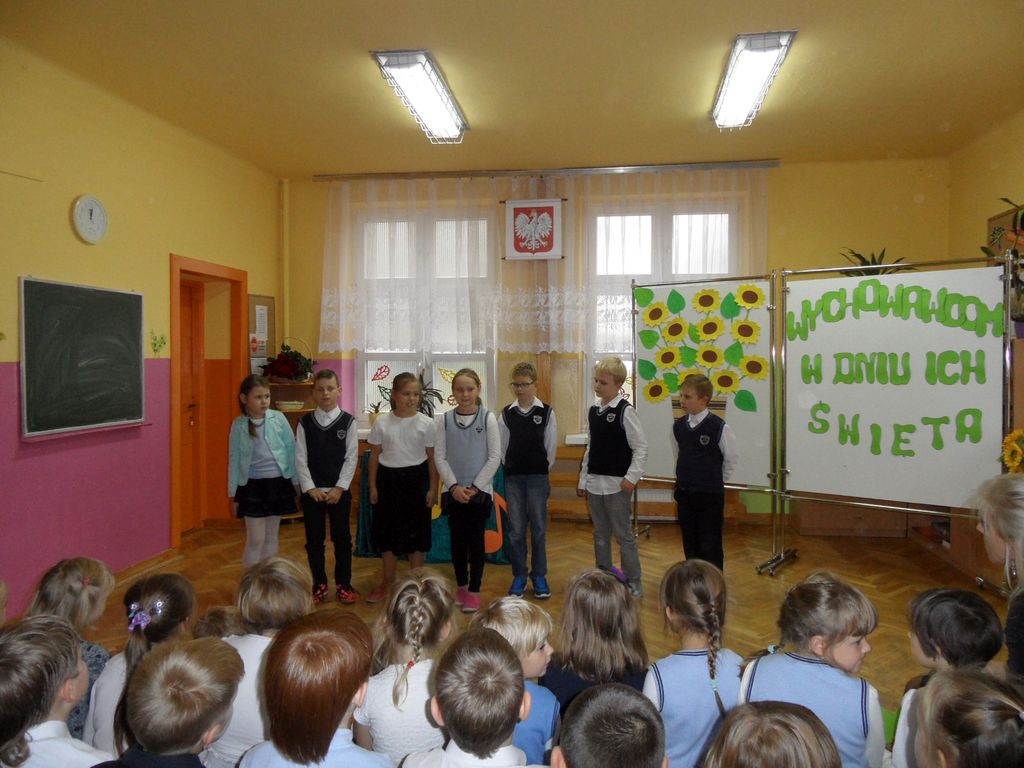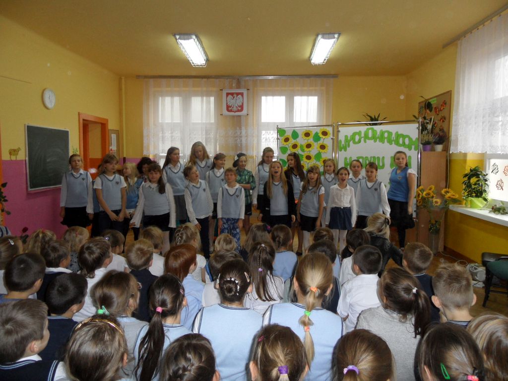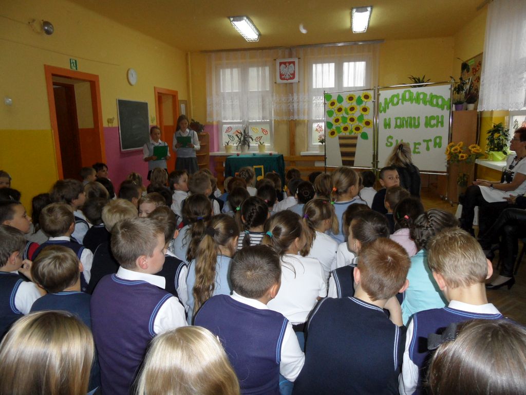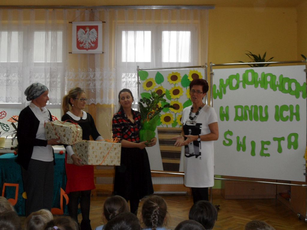 Z okazji święta Komisji Edukacji Narodowej, 13 października uczniowie przygotowali dla nauczycieli i pracowników szkoły artystyczną niespodziankę. Na szkolnej scenie zaprezentowali się przedstawieciele wszystkich klas w dowcipnym montażu słowno- muzycznym. Największą atrakcją był jednak teleturniej ,,Jaka to melodia", w którym udział wzięły panie nauczycielki. Wspomagane przez uczniów dzielnie poradziły sobie z rozpoznaniem słuchanych melodii. W nagrodę otrzymały brawa widowni i cukierki. Ważnym i poważnym elementem uroczystości były życzenia wypowiedziane przez uczniów, rodziców i p. Dyrektor, życzenia wielu sukcesów w pracy dydaktycznej i wychowawczej. Wymownym podsumowaniem uroczystości były piękne czerwone róże, którymi uczniowie obdarowali nauczycieli i pracowników szkoły.