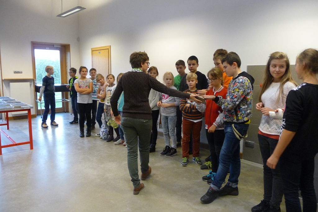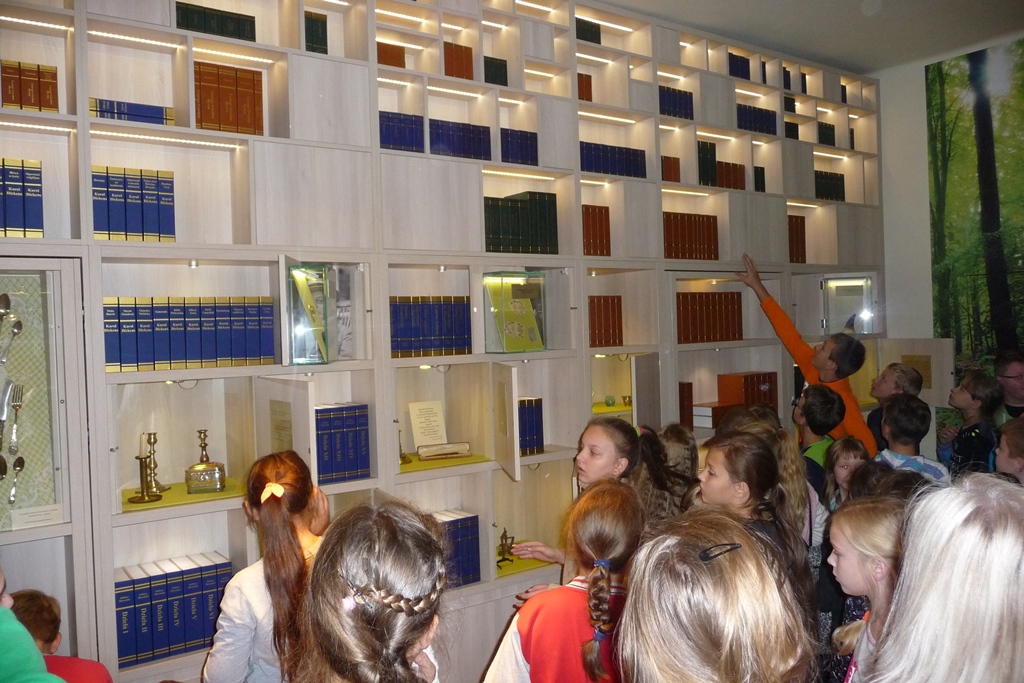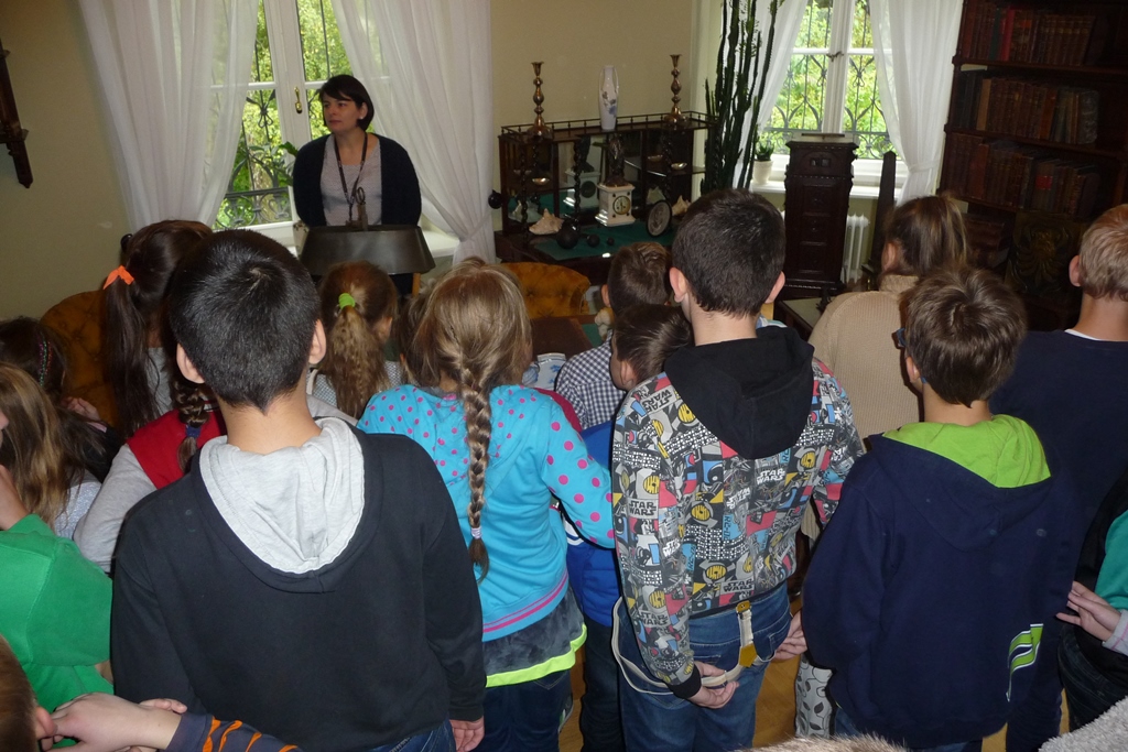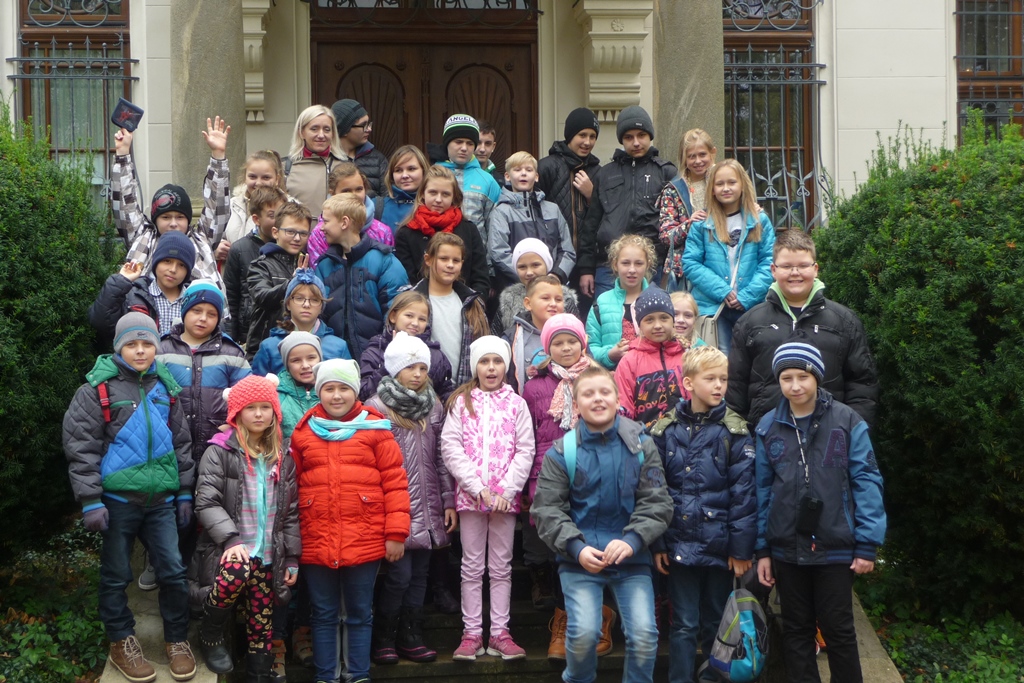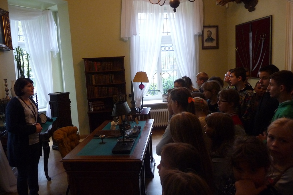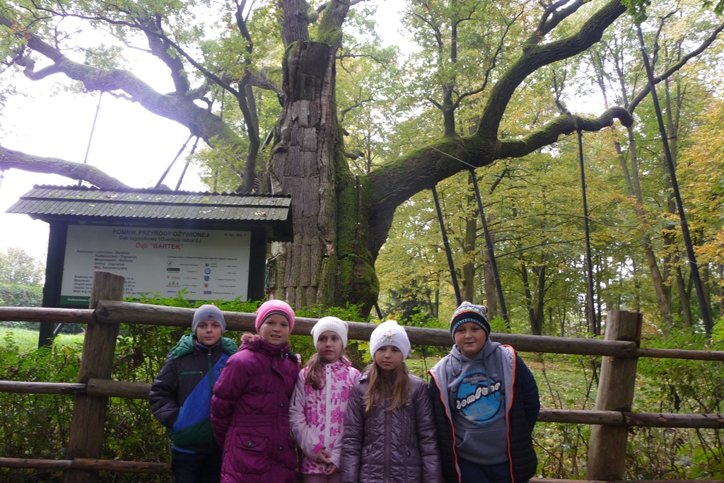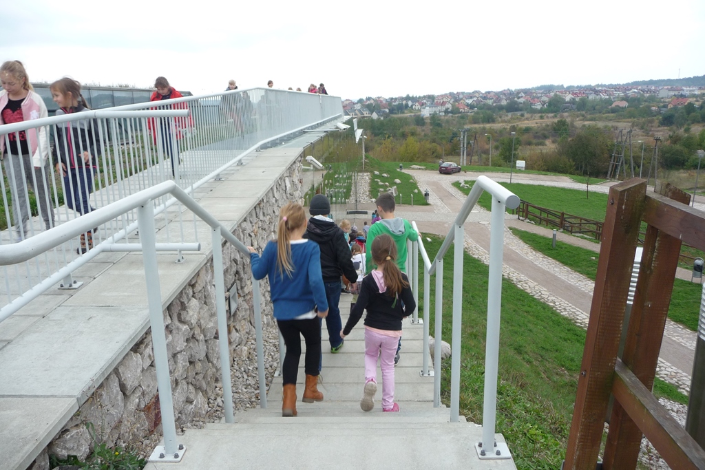 Trzeci tydzień października upłynął uczniom pod znakiem wycieczek. Rozpoczęli go wyjazdem do Spały, a zakończyli odwiedzinami Gór Świętokrzyskich. Na wycieczkę w świętokrzyskie wyruszyły dwie grupy autokarowe: starsza i młodsza. Każda z nich docelowo miała dojechać do Muzeum Henryka Sienkiewicza w Oblęgorku, ponieważ ta miejscowość to ważny element biografii Patrona Szkoły. Jej zwiedzanie przez uczniów to kolejny punkt realizacji projektu ,,Śladami Henryka Sienkiewicza”. Drugim wspólnym punktem wycieczkowego programu dla obu grup była wizyta w kieleckim rezerwacie przyrodniczym ,,Kadzielnia”. Widok dewońskich wapieni przykuwał uwagę zarówno maluchów jak i szóstoklasistów. Dla grupy młodszej przewidziano w programie jeszcze nieco inną atrakcję, przemawiającą do jej wyobraźni bardziej niż nieczynny kamieniołom, mianowicie odwiedziny w najstarszym i największym w kraju Muzeum Zabawek i Zabawy w Kielcach. Pobyt tutaj, to jak wyprawa w magiczne miejsce. W takim magicznym miejscu znaleźli się też starsi uczniowie odwiedzając kielecki Geopark, czyli Centrum Geoedukacji. Prawdziwej adrenaliny dostarczyła im tu ,,Podróż do wnętrza Ziemi” kapsułą 5D. Wszyscy przetrwali wyprawę bardzo dzielnie, więc wzięli udział w warsztatach szlifowania wapieni.