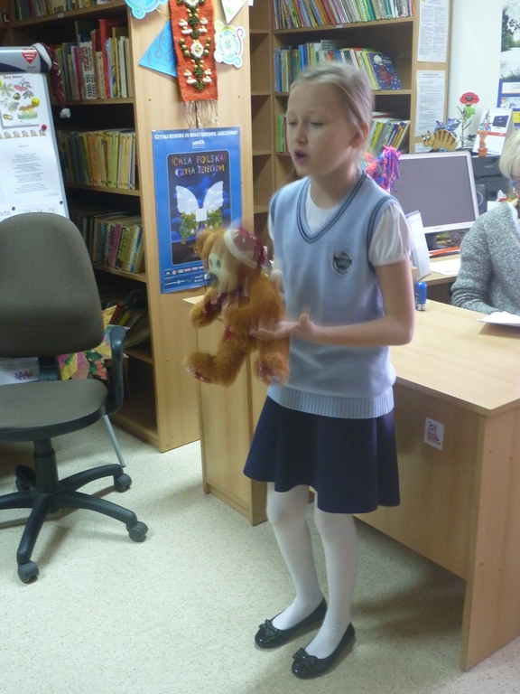 27 listopada z inicjatywy p. Renaty Szydlik- bibliotekarki Biblioteki Publicznej w Niesułkowie zorganizowany został konkurs recytatorski dla uczniów kl. IV i V. pod hasłem ,,Wierszyk o Misiu”. Tematyka konkursu odnosiła się do obchodzonego w listopadzie Dnia Pluszowego Misia. Do udziału w konkursie zgłosiły się głównie dziewczęta, a jedynym odważnym chłopcem był Szymon Klotz z kl. IV. Występy recytatorskie oceniało jury złożone z p. J. Eliaszuka- kierownika Domu Kultury w Niesułkowie, p. M. Rusek- kierowniczki Biblioteki Publicznej w Strykowie i p. Jadwigi Kapusty- dyrektora SP w Niesułkowie. Laureatami konkursu zostali:
