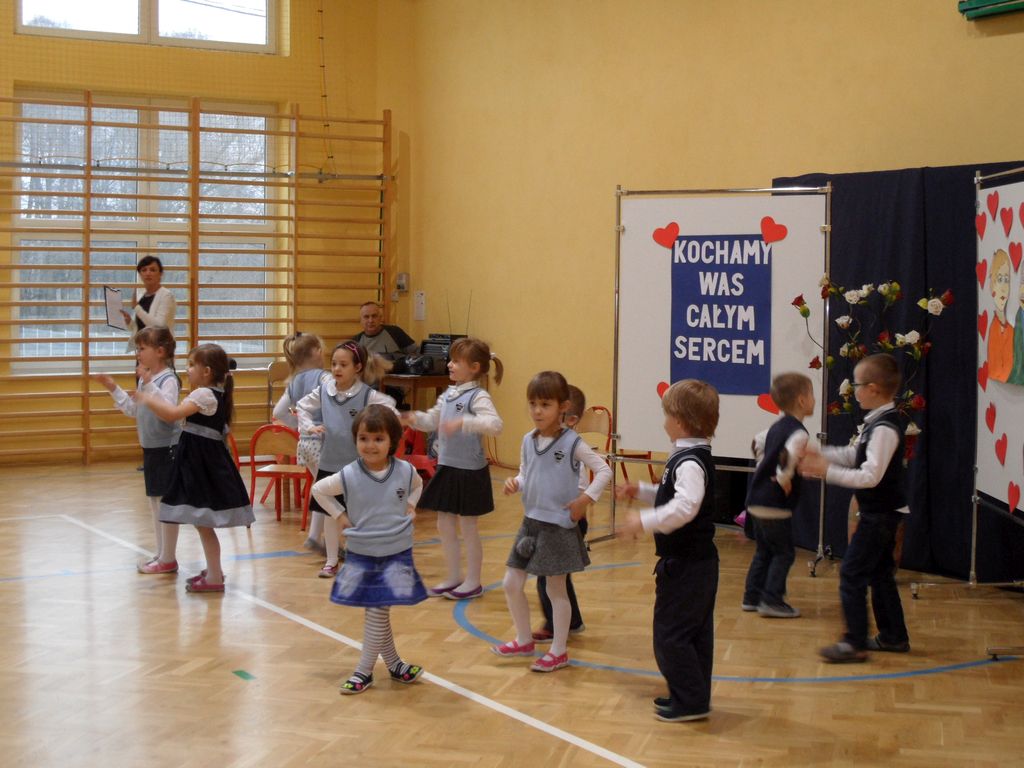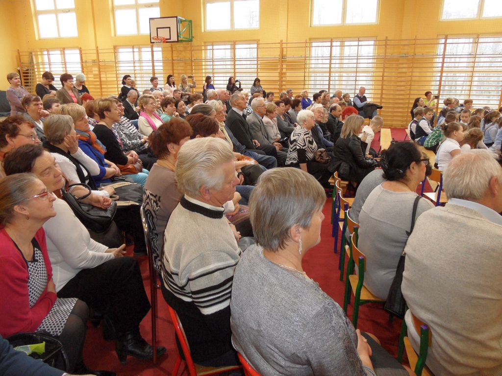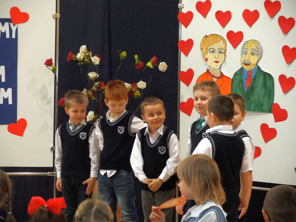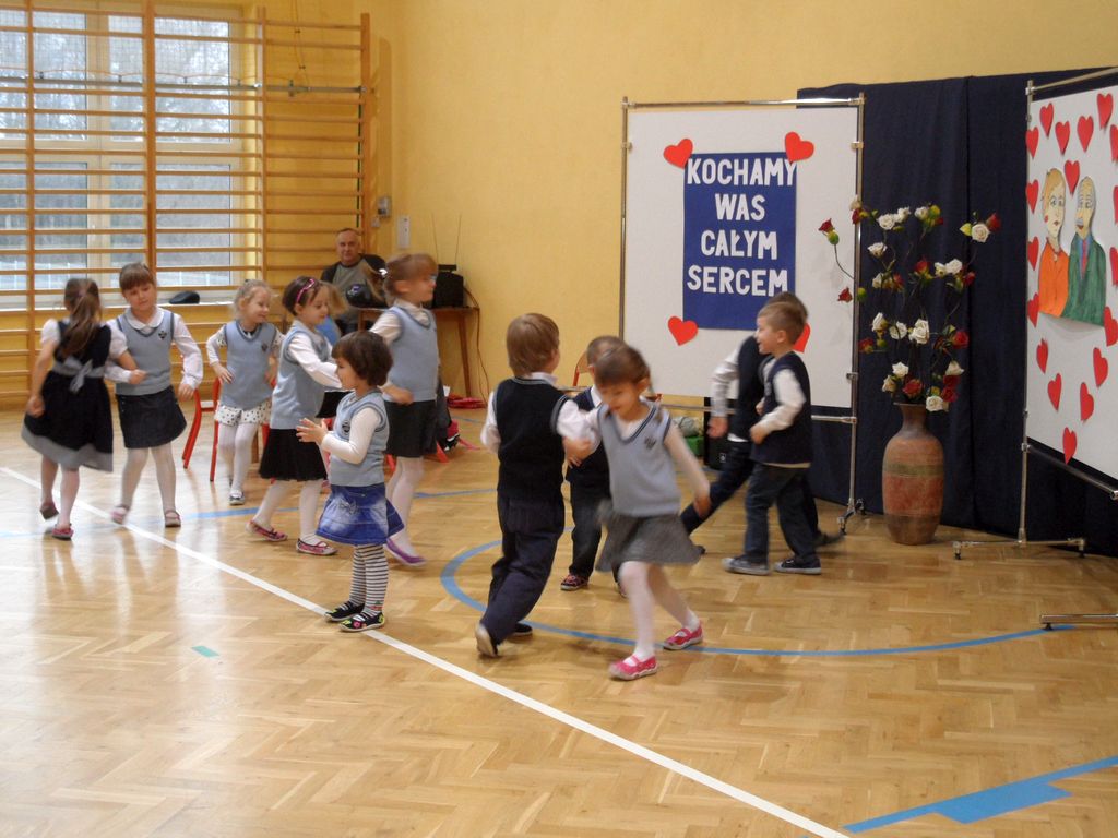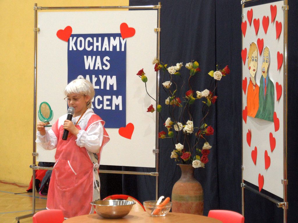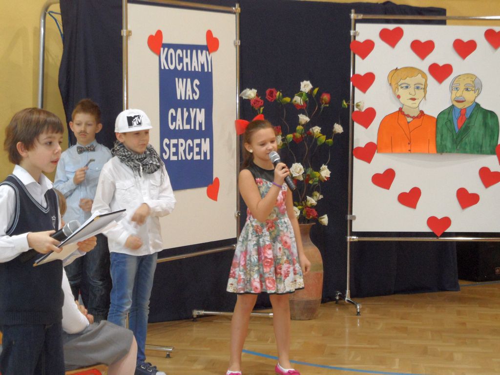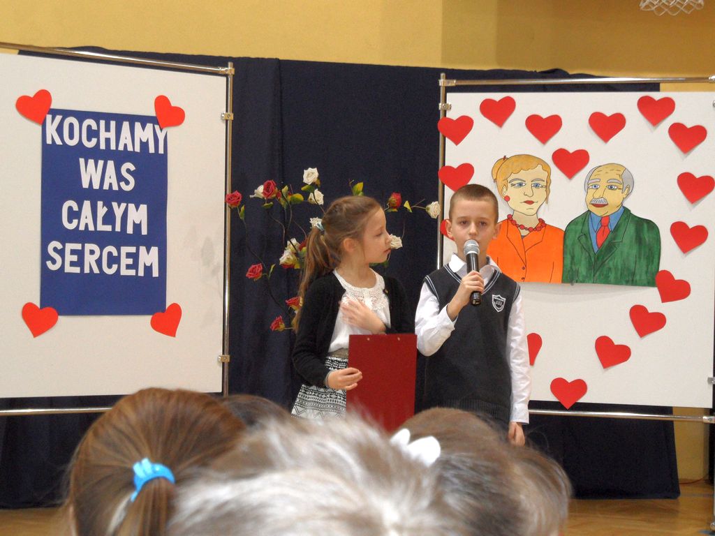 Zebranych seniorów i wszystkich gości gorąco powitała p. Dyrektor składając im serdeczne życzenia. W pięknie udekorowanej sali uczniowie przedstawili program artystyczny: wierszyki, piosenki, tańce oraz krótkie inscenizacje, które były wyrazem wdzięczności wobec kochanych Dziadków za ich oddanie, opiekę i cierpliwość oraz niezmierzone morze miłości, ciepła i troskliwości. Po hucznym odśpiewaniu „100 lat” dzieci wręczyły Dziadkom własnoręcznie przygotowane upominki. Na przybyłych gości czekał także słodki poczęstunek, który pomogli przygotować rodzice. W niejednym oku zakręciła się łza, a radosnej wymianie zdań nie było końca.