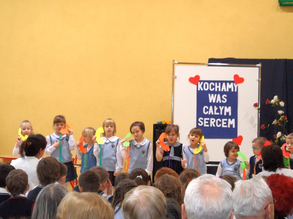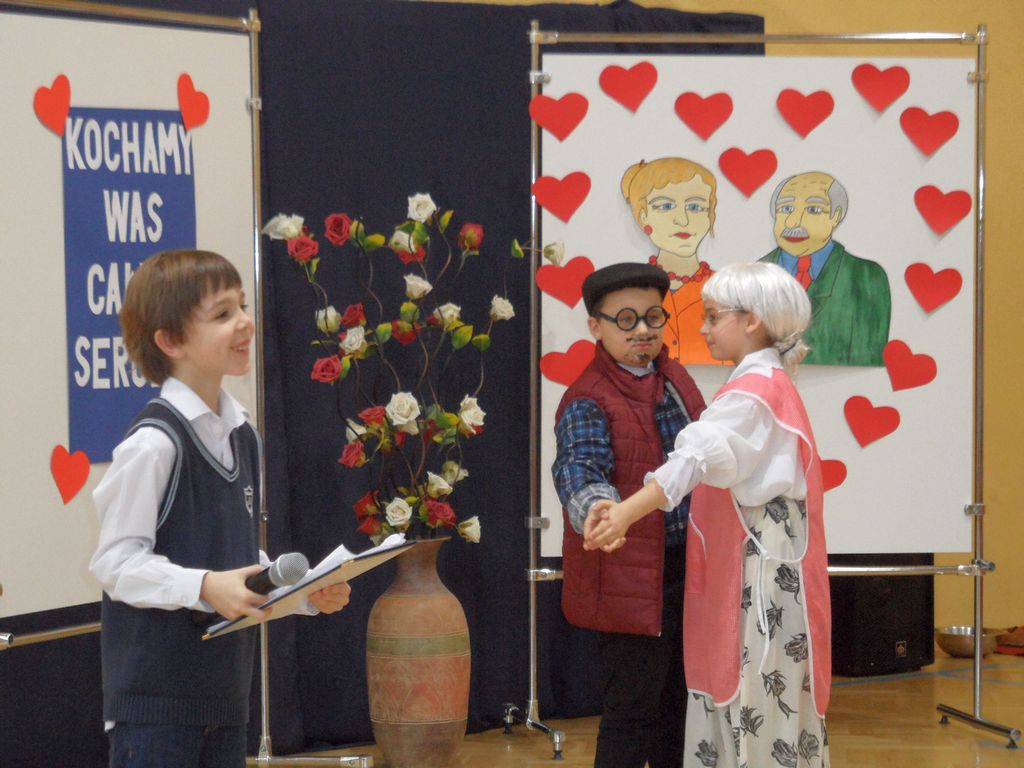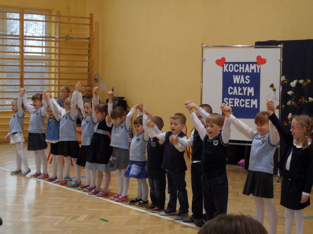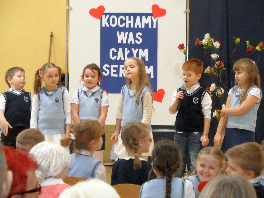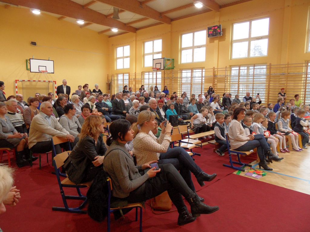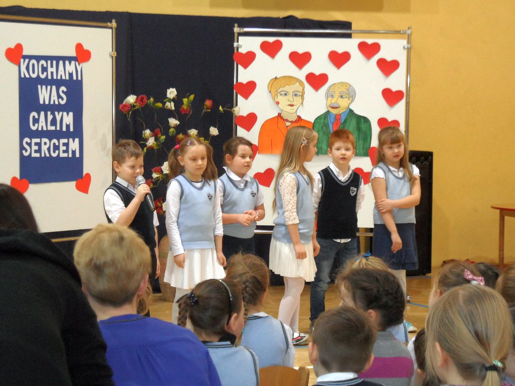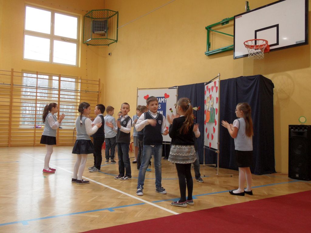 Zebranych seniorów i wszystkich gości gorąco powitała p. Dyrektor składając im serdeczne życzenia. W pięknie udekorowanej sali uczniowie przedstawili program artystyczny: wierszyki, piosenki, tańce oraz krótkie inscenizacje, które były wyrazem wdzięczności wobec kochanych Dziadków za ich oddanie, opiekę i cierpliwość oraz niezmierzone morze miłości, ciepła i troskliwości. Po hucznym odśpiewaniu „100 lat” dzieci wręczyły Dziadkom własnoręcznie przygotowane upominki. Na przybyłych gości czekał także słodki poczęstunek, który pomogli przygotować rodzice. W niejednym oku zakręciła się łza, a radosnej wymianie zdań nie było końca.