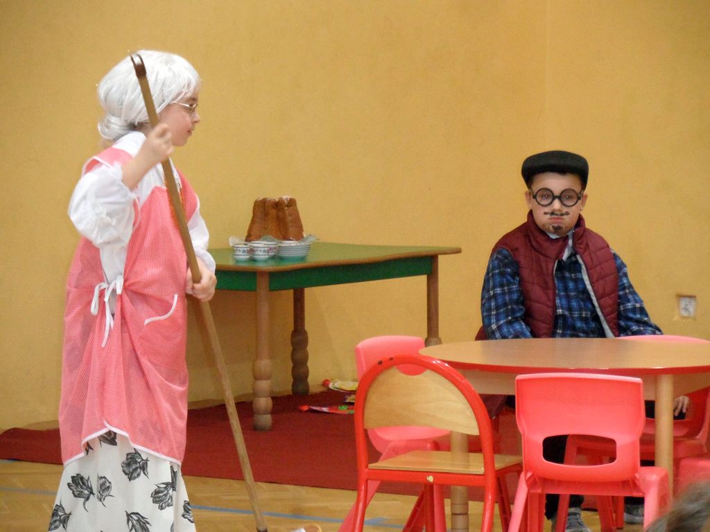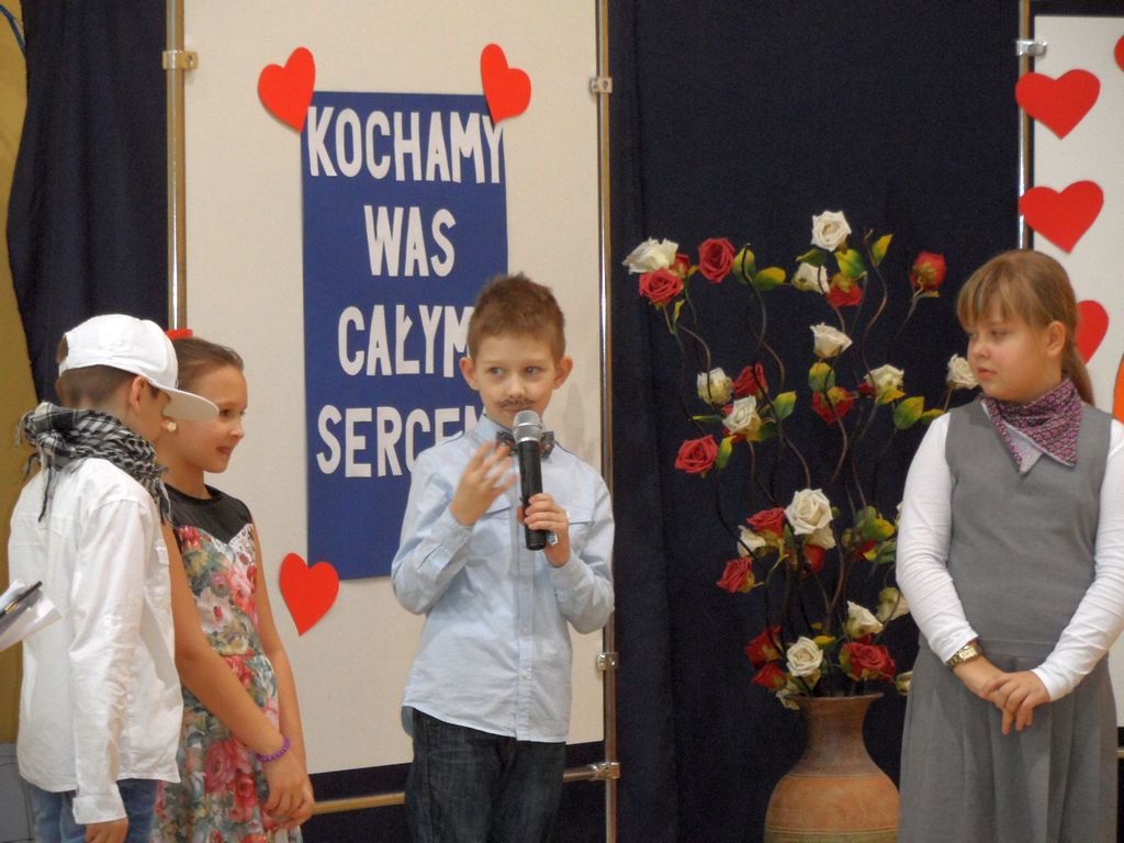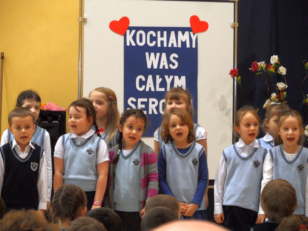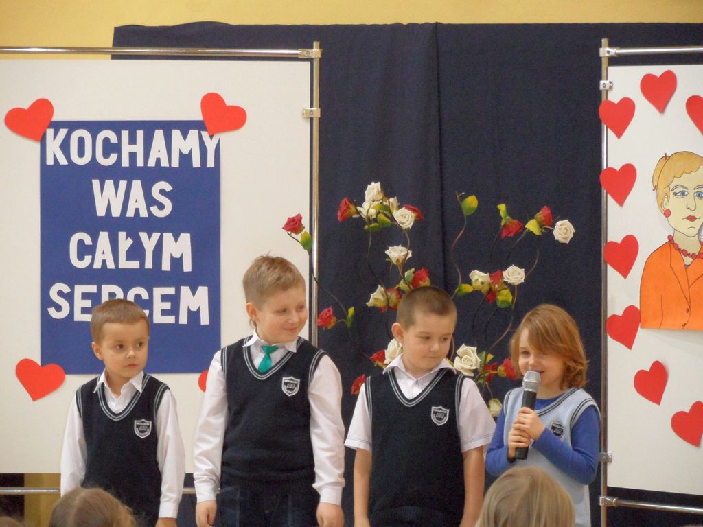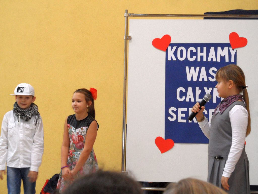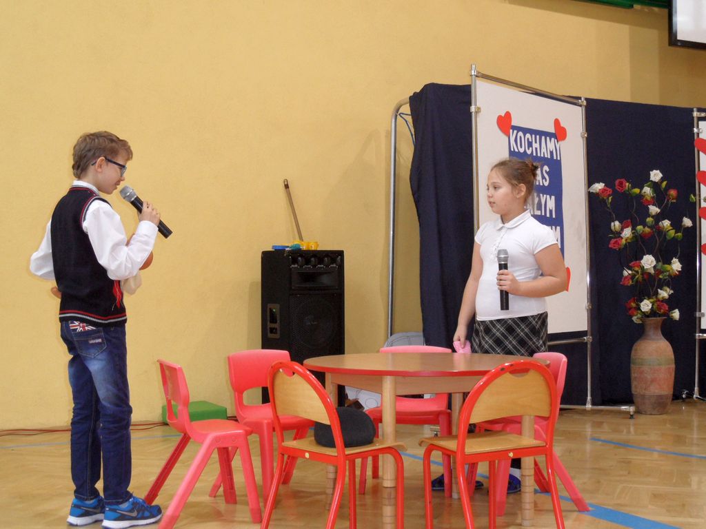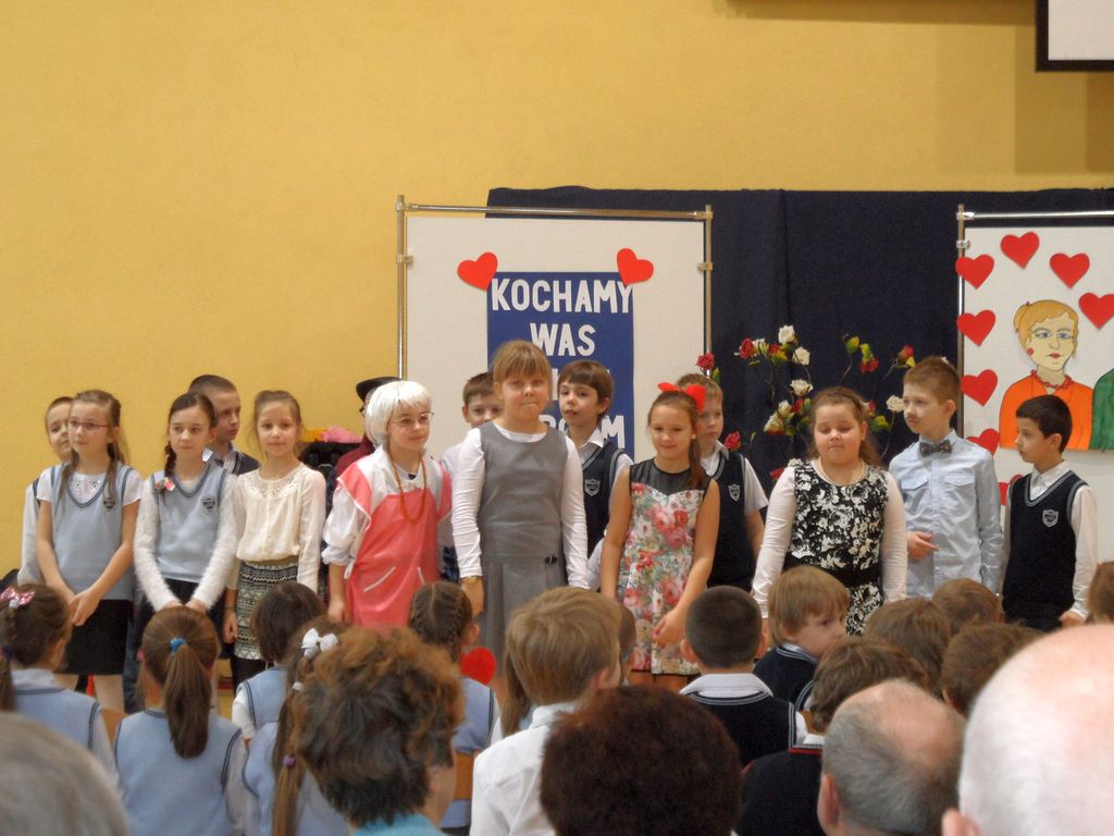 Zebranych seniorów i wszystkich gości gorąco powitała p. Dyrektor składając im serdeczne życzenia. W pięknie udekorowanej sali uczniowie przedstawili program artystyczny: wierszyki, piosenki, tańce oraz krótkie inscenizacje, które były wyrazem wdzięczności wobec kochanych Dziadków za ich oddanie, opiekę i cierpliwość oraz niezmierzone morze miłości, ciepła i troskliwości. Po hucznym odśpiewaniu „100 lat” dzieci wręczyły Dziadkom własnoręcznie przygotowane upominki. Na przybyłych gości czekał także słodki poczęstunek, który pomogli przygotować rodzice. W niejednym oku zakręciła się łza, a radosnej wymianie zdań nie było końca.