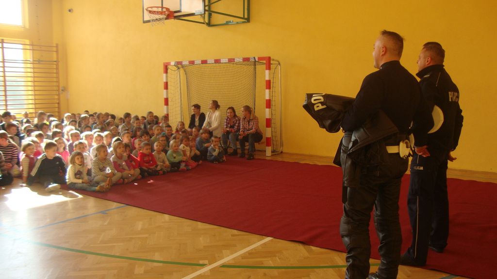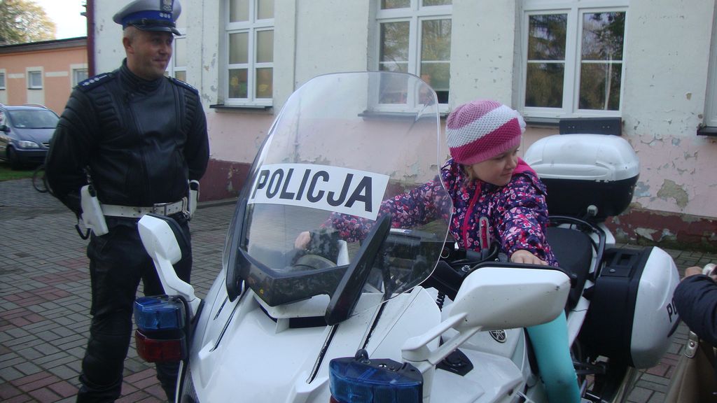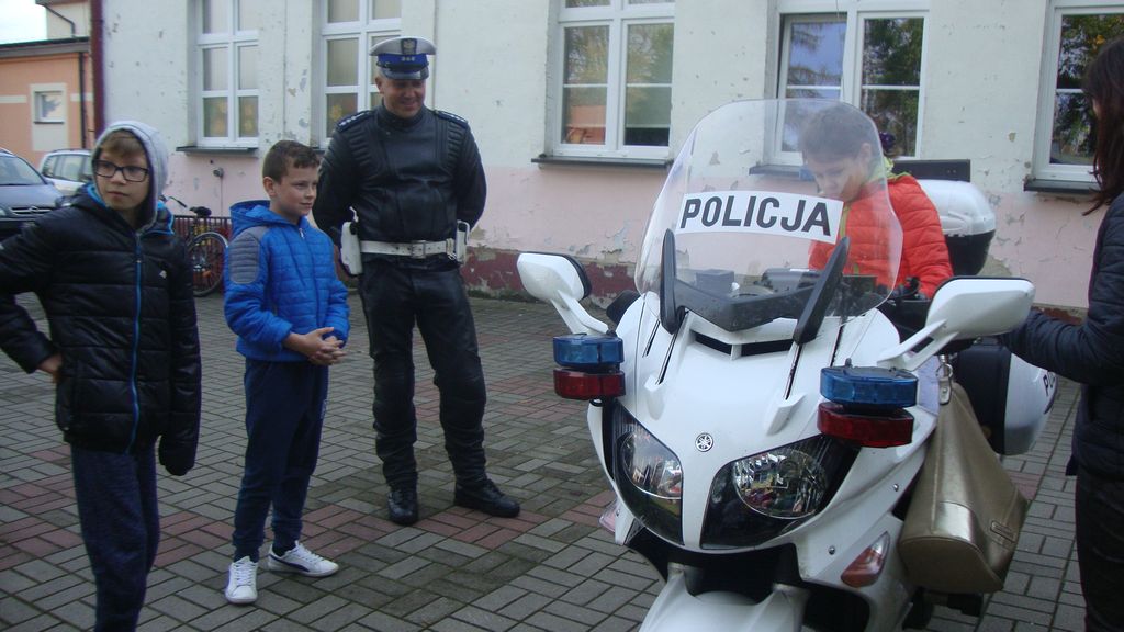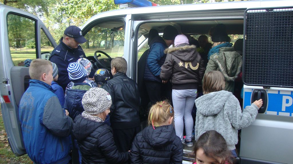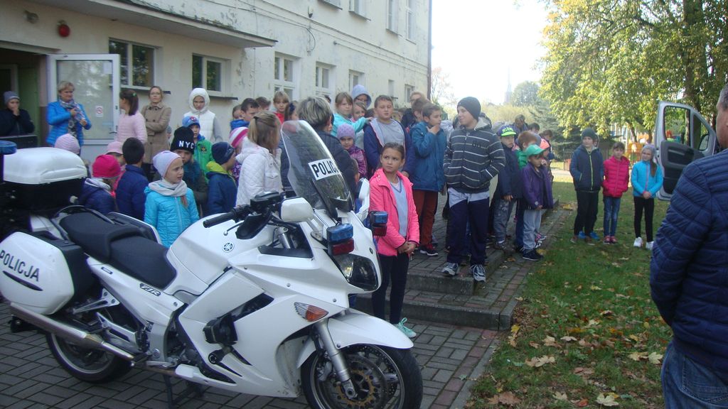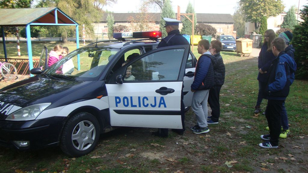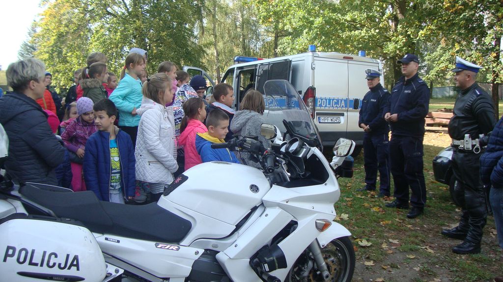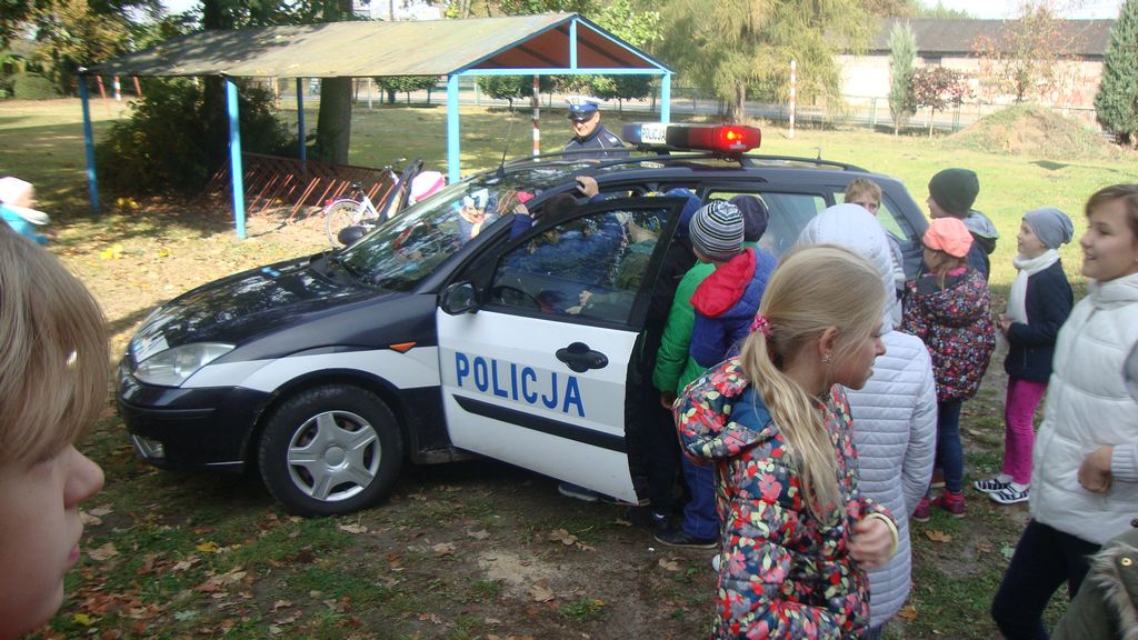 7 października uczniowie Naszej Szkoły wraz z dziećmi z Przedszkola Świętej Rodziny w Niesułkowie uczestniczyli w spotkaniu z policjantami. Był to doskonały sposób na poznanie bliżej zawodu policjanta, a także przypomnienie zasad bezpieczeństwa, którymi należy się kierować w codziennym życiu oraz podczas poruszania się po drodze. Dzieci chętnie i aktywnie uczestniczyły w pogadance z funkcjonariuszami policji, z wyraźnym zainteresowaniem dopytywały o szczegóły ich pracy. Dodatkową atrakcją dla dzieci był pokaz policyjnych pojazdów, podczas którego uczniowie mogli zasiąść za kierownicą radiowozu i motoru policyjnego.