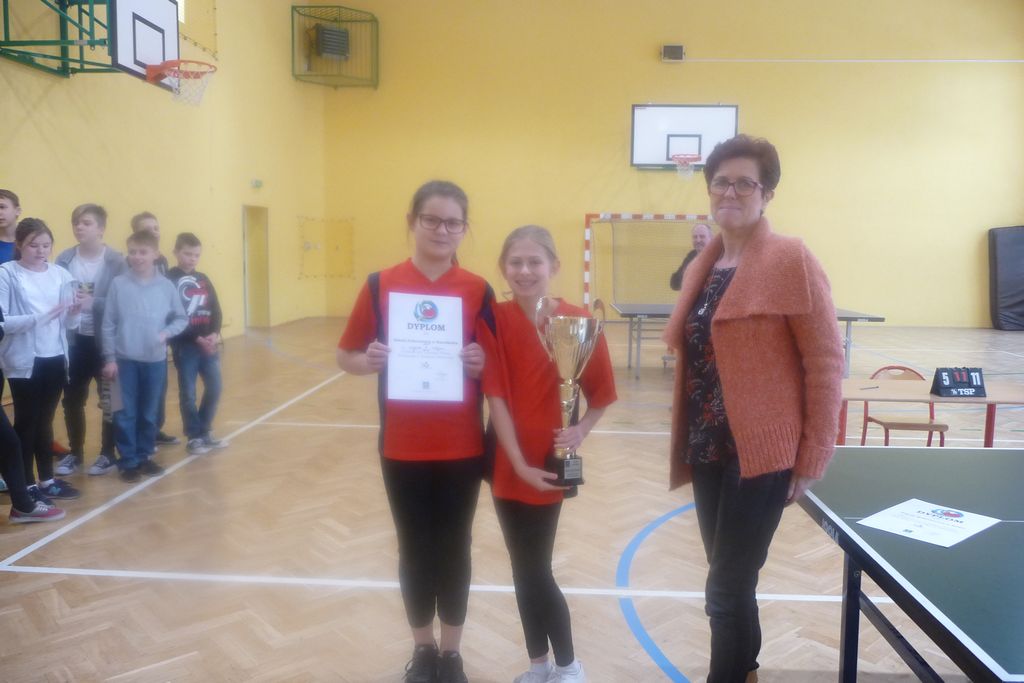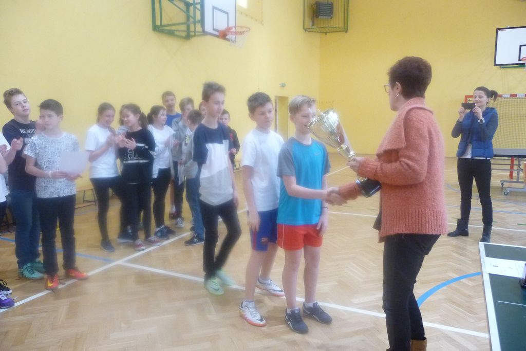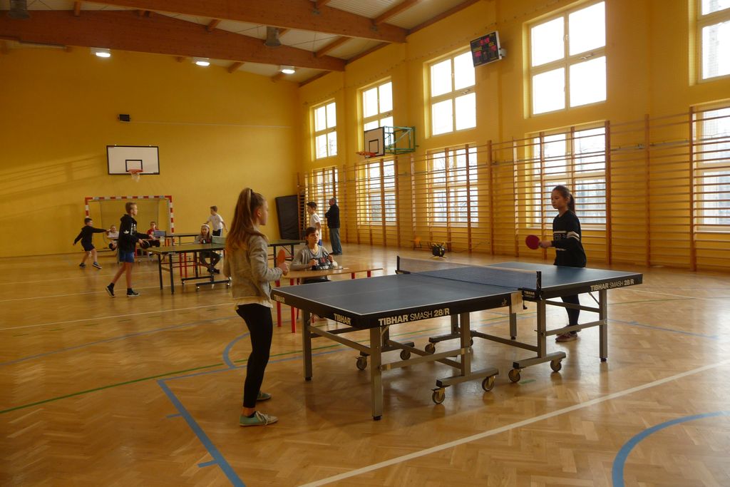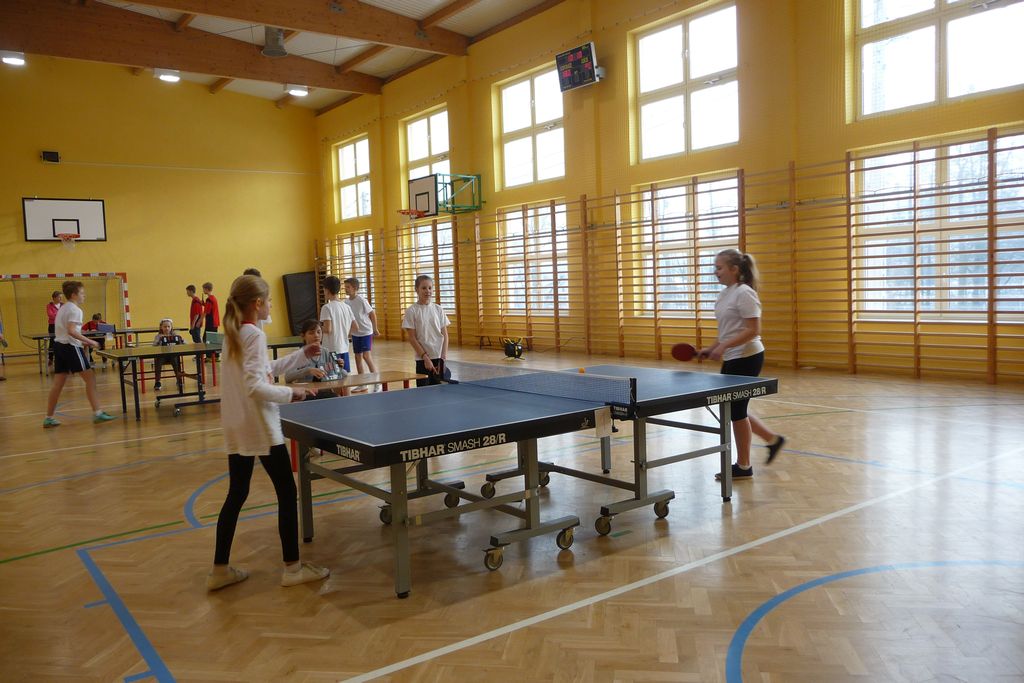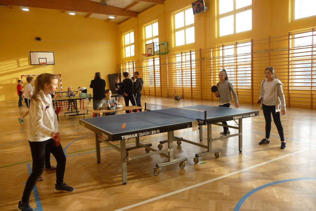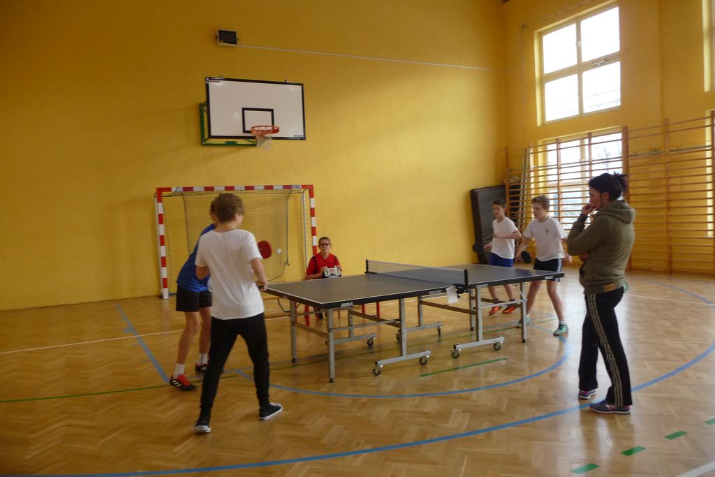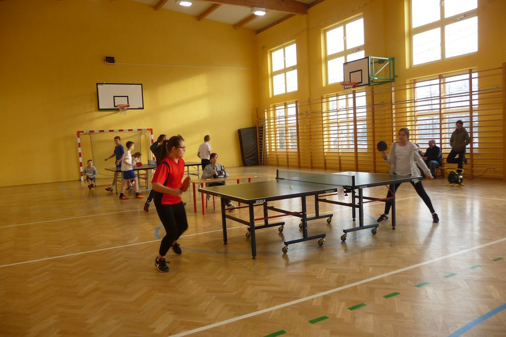 Kolejny raz nasza szkoła gościła zawodników i zawodniczki z terenu gminy, którzy chcieli spróbować swoich sił przy stole ping-pongowym. Mistrzostwa Gminy w tej dyscyplinie odbyły się 10.01.2017 roku. Turniej rozegrano w dwóch kategoriach: dziewcząt i chłopców, w systemie "każdy z każdym". Wszystkie mecze budziły duże emocje zarówno wśród zawodników jak i nauczycieli, ponieważ poziom gry był dość wyrównany i jak się wydawało nie było zdecydowanych faworytów. Na zakończenie turnieju przyszedł czas na słodki poczęstunek zapewniony przez gospodarzy oraz rozdanie dyplomów i pucharów co uczyniła Pani Dyrektor.