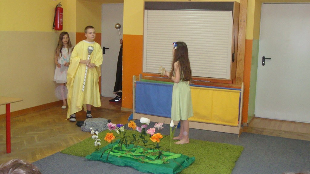 Lekcja języka polskiego w kl.V. Wystawienie mitu ,,Demeter i Kora" (praca autorska uczniów)