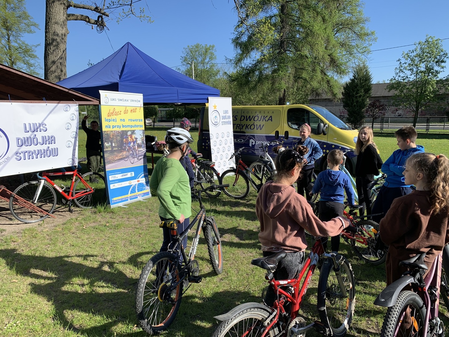 W tygodniu naszego I Szkolnego Rajdu Pieszo-Rowerowego w naszej szkole odbywały się wydarzenia poprzedzające. We wtorek, 10 maja serwis rowerowy dla wszystkich zapewnił lokalny klub kolarski LUKS Dwójka Stryków. Uczniowie mogli sprawdzić swoje rowery pod kątem technicznym. Wszyscy przygotowali sprzęty, by już sam rajd odbywał się w komfortowych warunkach. Kolarski klub promował w naszej szkole aktywność fizyczną hasłem: "Lepiej na rowerze niż przy komputerze".