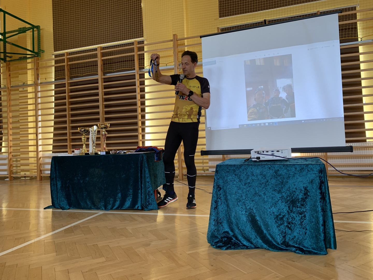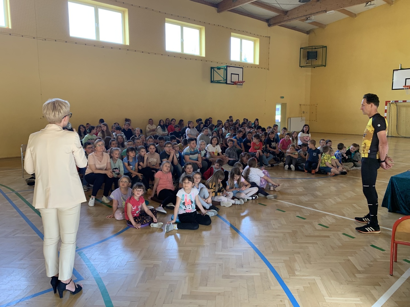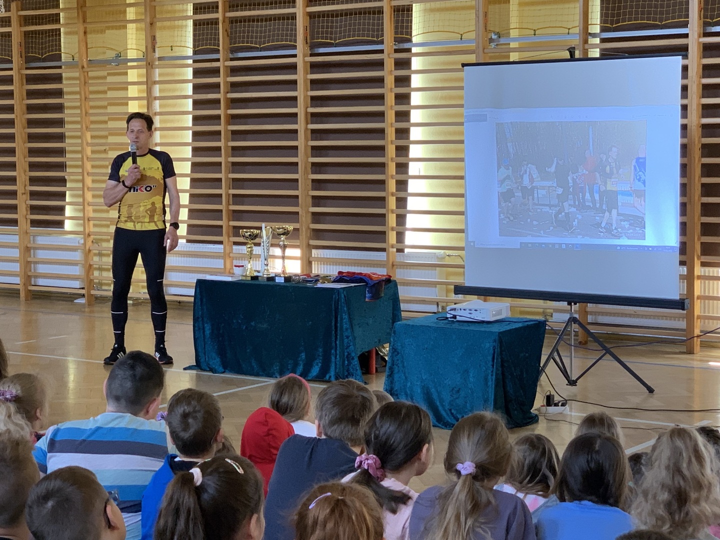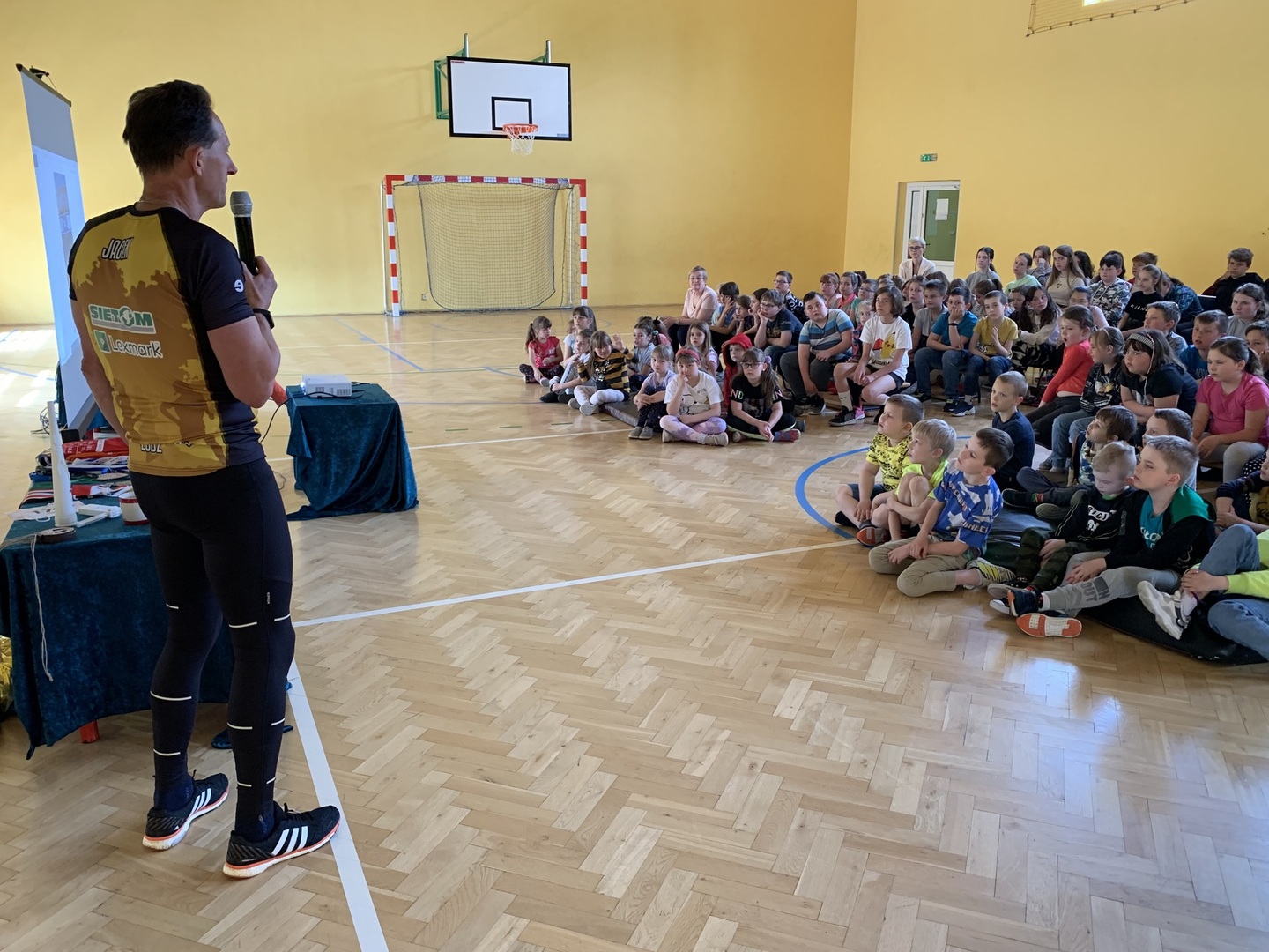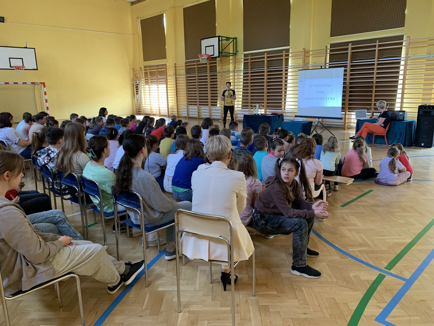 Z kolei w środę, 11 maja SP Niesułków odwiedził niezwykły gość. Sportowiec z naszej lokalnej społeczności, który zaliczył w swoim życiu już ponad 100 maratonów, co daje już ponad 4000 km w trakcie zawodów i kilkukrotnie więcej podczas przygotowań do zawodów. Jacek Kumidaj opowiadał uczniom nie tylko o niuansach biegowych podczas zawodów, ale także mówił o historii maratonów, niezwykłych miejscach, które odwiedził podczas zawodów, jak i zaprezentował medale i pamiątkowe koszulki, na swój sposób unikatowe, przedstawiające region lub sens wydarzenia, w którym brał udział. Na koniec odbył się krótki quiz na temat spotkania, a kilku uczniów otrzymało pamiątkowe medale i nagrody rzeczowe, które przygotował Pan Jacek. Nie zabrakło również wspólnego zdjęcią, a wyrazy wdzięczności i podziwu dla bohatera naszej lokalnej społeczności wyrazili w imieniu całej szkoły Pani Dyrektor Anna Lipińska i nauczyciel wychowania fizycznego Wojciech Pożarlik.