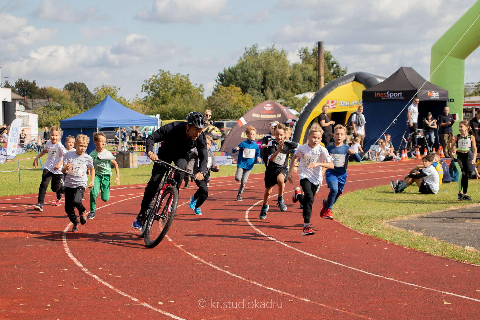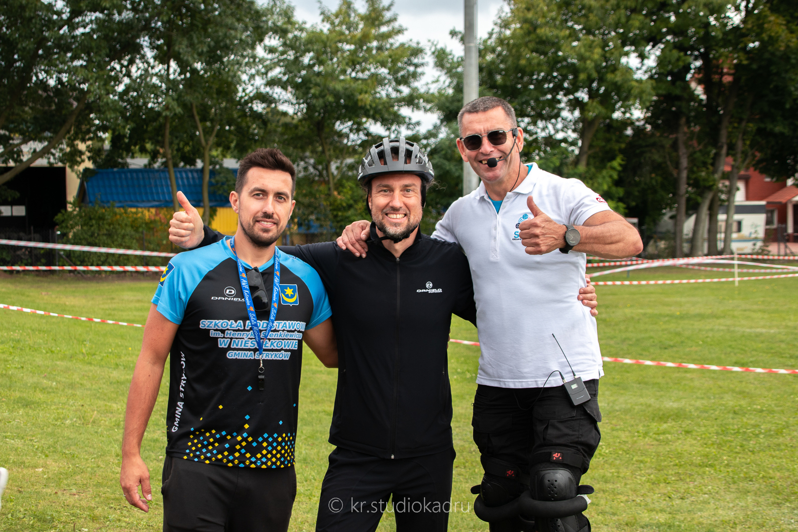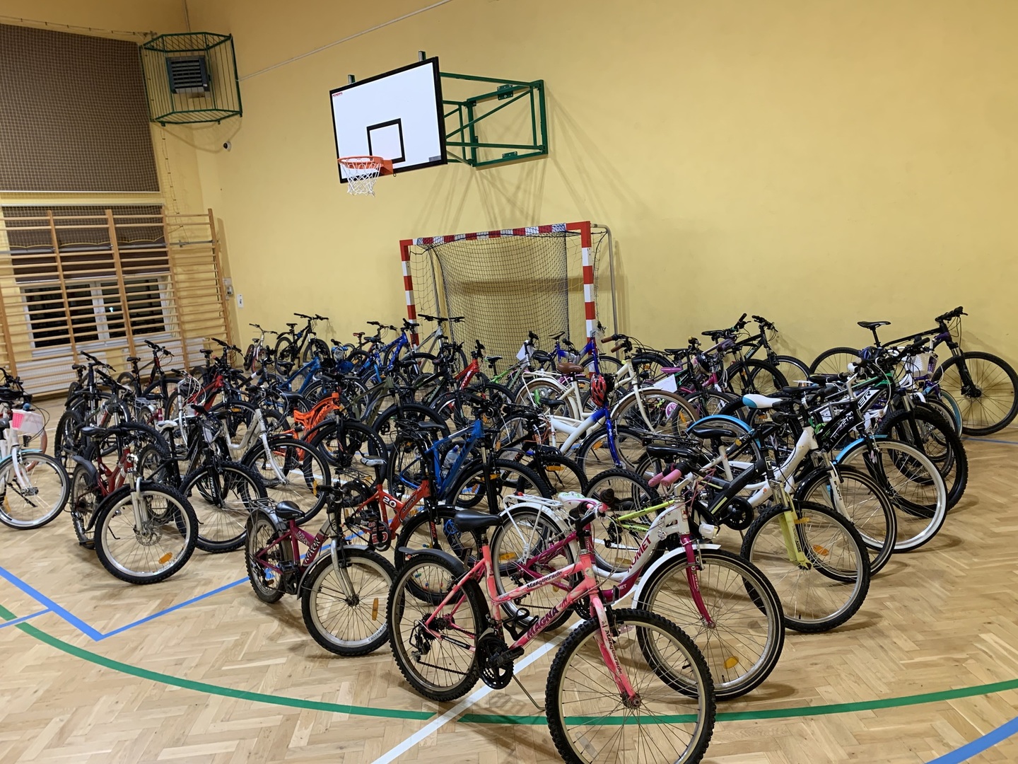 Organizacyjnie to także było duże wyzwanie. Nauczyciel wychowania fizycznego Wojciech Pożarlik od tygodnia przygotowywał uczniów do startu, ćwicząc m.in. przejście z biegu na rower i z powrotem w tzw. strefie zmian. Kilka dni przed startem dzięki uprzejmości Pani Dyrektor Anny Lipińskiej nasza sala gimnastyczna zamieniła się w magazyn sprzętu rowerowego, który został dowieziony na miejsce, a potem wrócił do uczniów, by maksymalnie ułatwić rodzicom przygotowanie dzieci do startu.