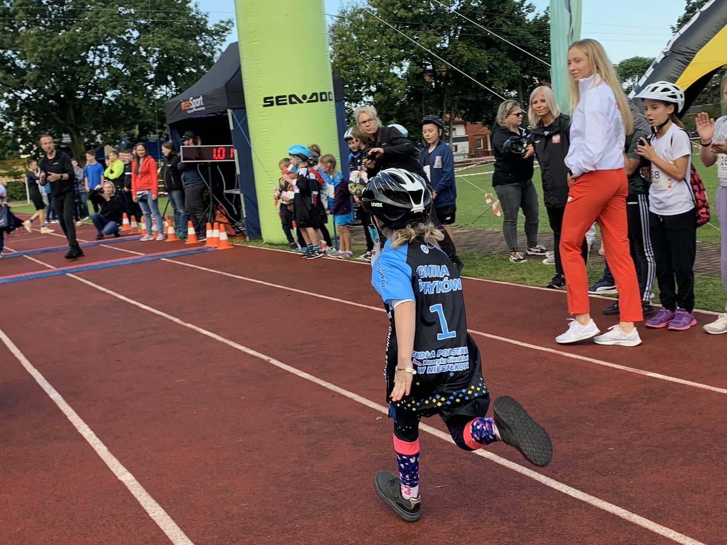 Niesułkowianie pod opieką nauczycieli Małgorzaty Prusinowskiej, Adriany Pietrasik, Michała Studzińskiego i Wojciecha Pożarlika bardzo licznie stawili się na duathlon. Aż 53 reprezentantów "Sienkiewiczówki" rywalizowała w następujących po sobie dyscyplinach biegowej i rowerowej. Pojawiliśmy się w każdej kategorii wiekowej i w gronie ponad 300 uczestników wywalczyliśmy aż 8 miejsc na podium, co dało nam także 3. miejsce w klasyfikacji szkół, a impreza miała zasięg wojewódzki. W gronie przedszkolaków nie prowadzono klasyfikacji, a dzielnie reprezentowały nas dziewczynki: Laurka Lipińska i Kalinka Szychowska. Następnie na starcie kolejno pojawiały się coraz starsze roczniki. W kategorii 2015 zdobyliśmy aż trzy medale. Złoto wśród dziewcząt wywalczyła Marta Wiśniewska, a brąz Marcelina Darnowska. Z kolei w gronie chłopców trzeci był Staś Dobiński. W tej grupie wiekowej SP Niesułków reprezentowali ponadto: Mateusz Anders, Alan Fiutowski, Piotr Kłobuszewski, Wiktoria Kowalska i Maria Pietrasiak. W kategorii 2014 świetne 2. miejsce wywalczył Józef Kapliński (nagrodę na podium odebrał Witek), a z trudami duathlonu mierzyli się ponadto: Kornelia Bałabańska, Franciszek Karliński, Natalia Kawczyńska, Andrzej Roksela i Alicja Szychowska. Dalej na starcie pojawili się uczniowie z rocznika 2013, którzy byli jedną z liczniejszych grup: Mateusz Bukowski, Jagoda Gniadek, Kinga Kowalska, Stanisław Kubicki, Oleksandra Lesyk, Mateusz Mikołajczuk, Witold Pawłowicz, Cezary Rudowski, Krzysztof Szychowski i Katarzyna Wiśniewska pokazali wielki chart ducha. W roczniku 2012 tęgie mięśnie pokazali: Zuzanna Anders, Arkadiusz Bolejko, Miłosz Gładys, Iryna Izofatova, Barbara Kaplińska, Alicja Krawczyk, Kapcer Olczyk, Kacper Sasin, Jakub Szymczak oraz rodzeństwo Kinga i Kamil Zbrojewscy.