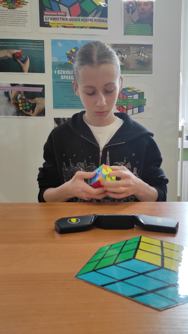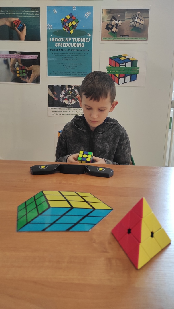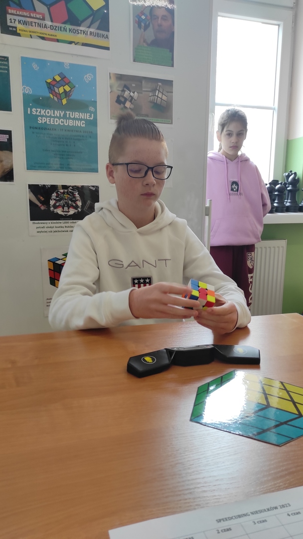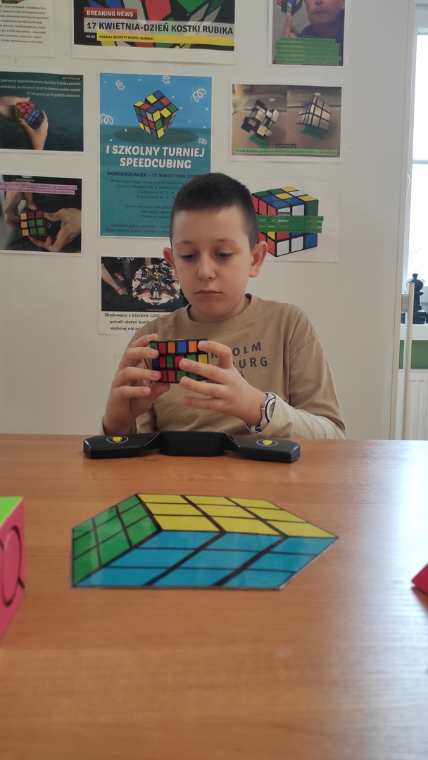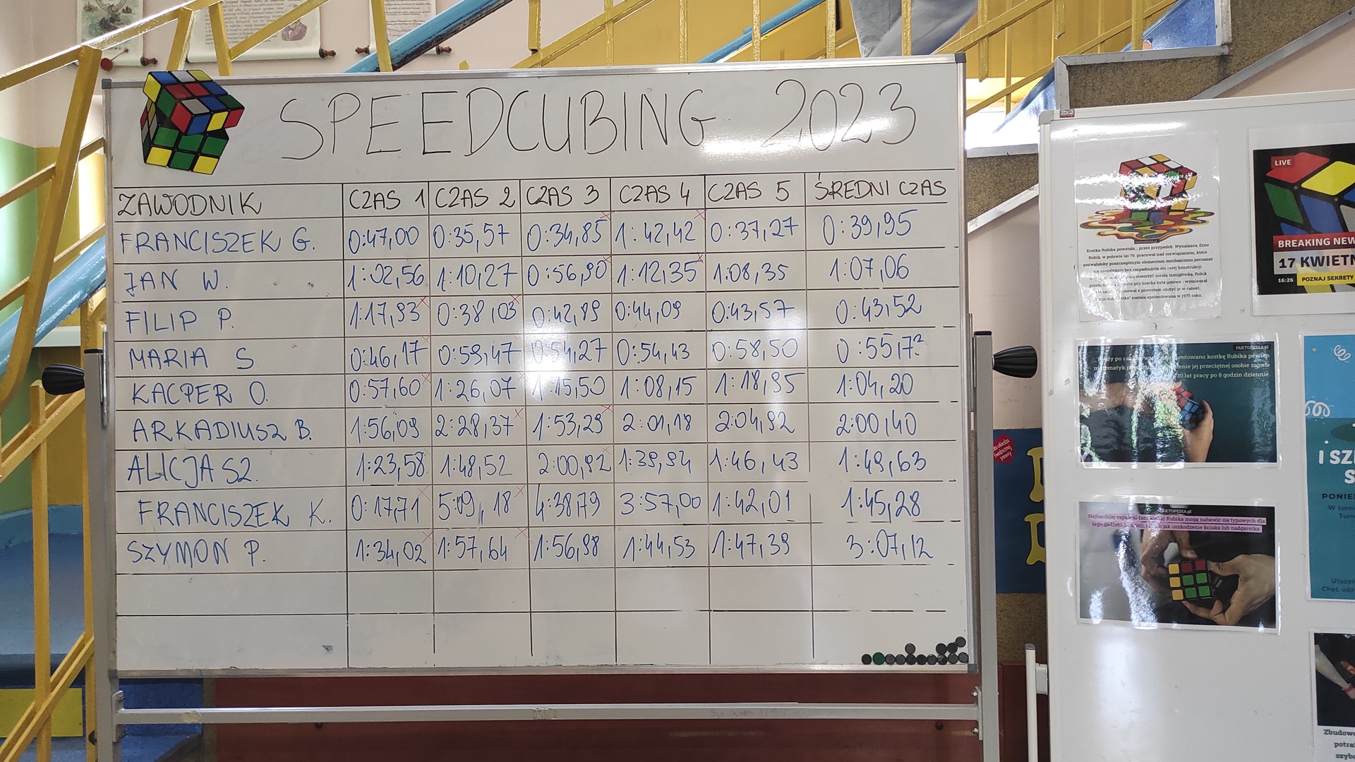 Powyższe zasady zostały przyjęte również podczas naszych szkolnych zawodów, podczas których wyłoniliśmy uczniów z najlepszym średnim czasem układania kostki.