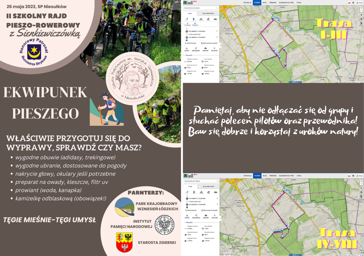 W imieniu całej społeczności Sienkiewiczówki zapraszam w piątek, 26 maja na II Szkolny Rajd Pieszo-Rowerowy. W załącznikach poniżej znajdują się mapki tras: