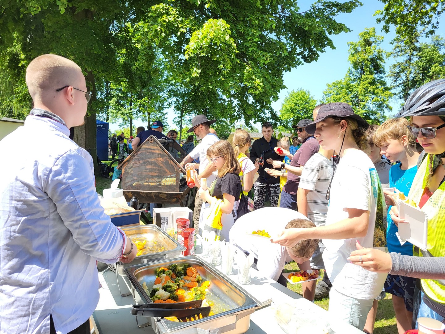 Na mecie rajdu (teren szkoły) jego uczestnicy wzięli udział w pikniku integracyjnym. Dania z grilla serwowali rodzice i uczniowie z ZS Nr 1 w Bratoszewicach. Finansowego wsparcia w zapewnieniu poczęstunku udzielił Burmistrz Strykowa. Część dań przygotowała firma cateringowa Sala Weselna Wiktoria z Syberii.