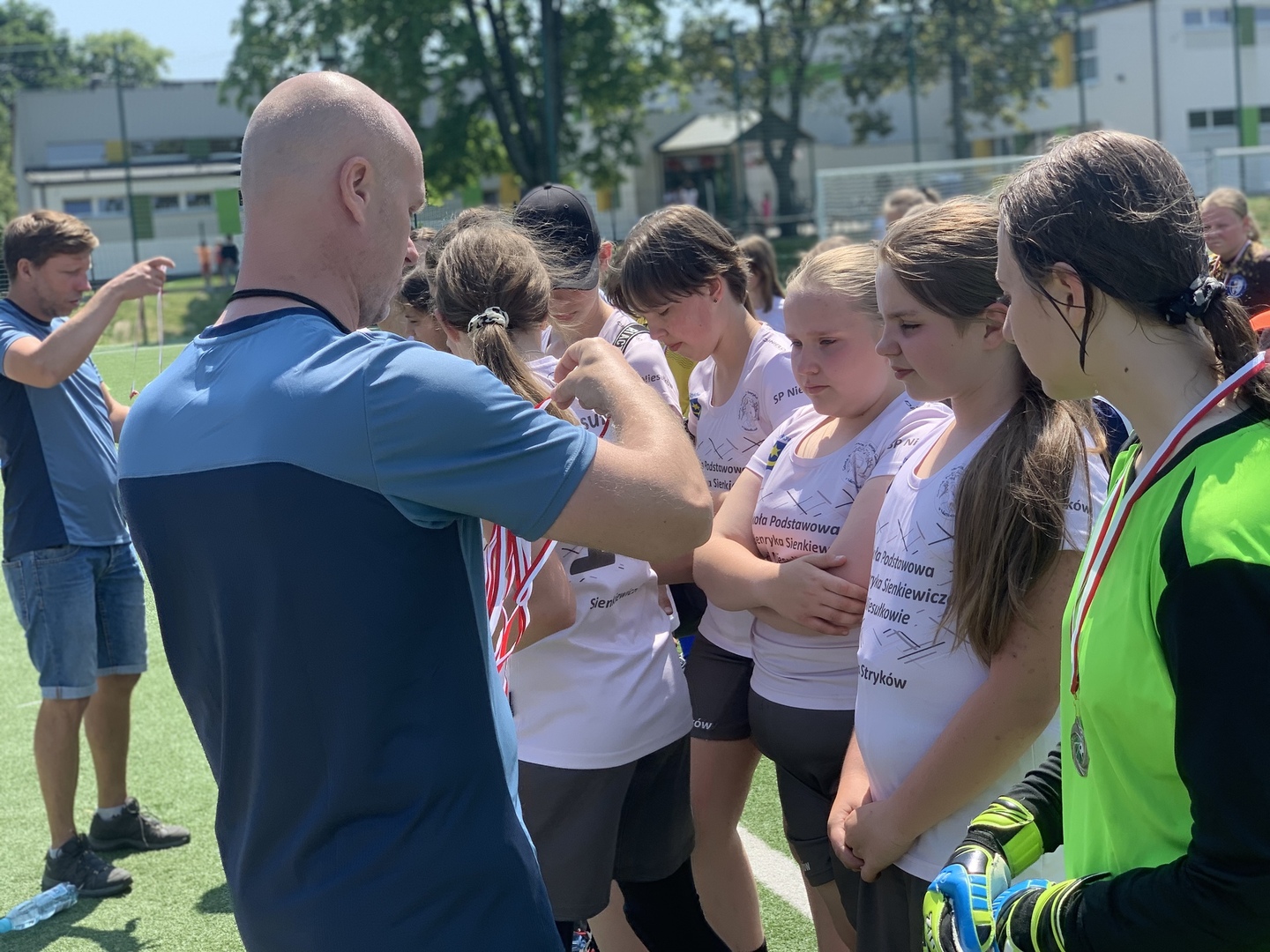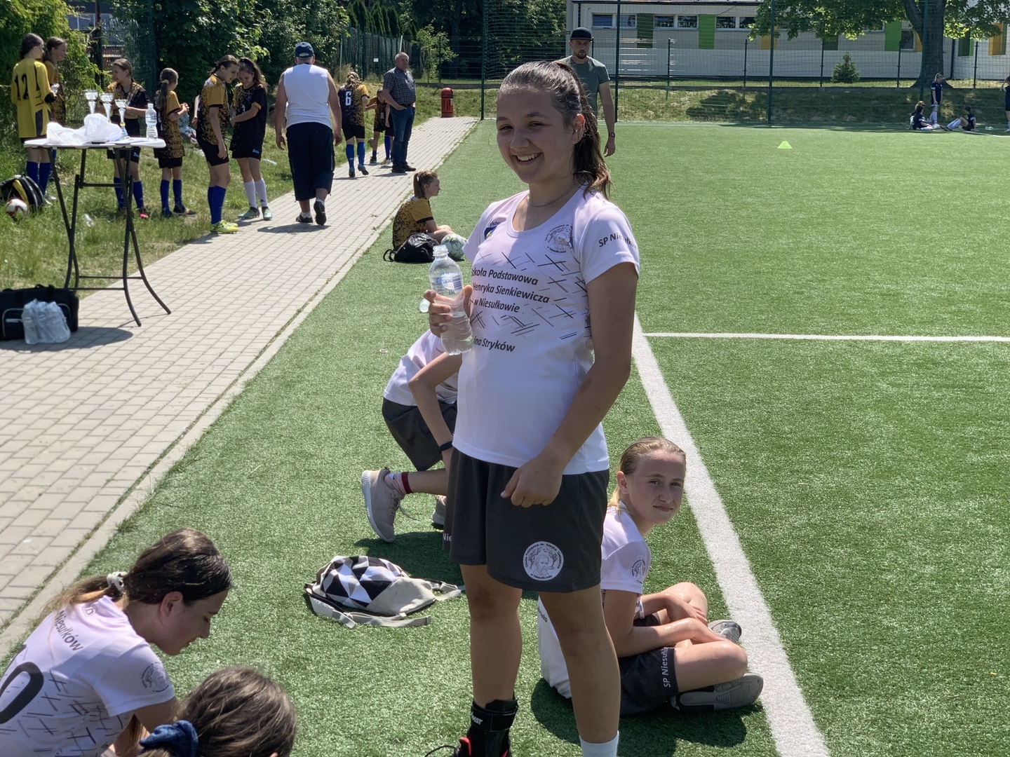 To pierwszy tego typu sukces w historii szkoły jeżeli chodzi o rozgrywki piłkarskie. W poprzednim roku udalo się dojść do Finału Wojewódzkiego w koszykówce 3x3, gdzie nasze uczennice zajęły 5. miejsce, a w naszej historii wojewódzkie boje toczyły także szczypiornistki. Teraz w gronie najlepszych szkół województwa łódzkiego dane nam było zagrać w piłkę nożną, a żeby było to możliwe niesułkowianki musiały wygrać kolejno Mistrzostwa Gminy, Mistrzostwa Powiatu Zgierskiego i Mistrzostwa Rejonu Łódzkiego. SP Niesułków reprezentowała 11-tka dziewcząt pod opieką nauczyciela wychowania fizycznego Wojciecha Pożarlika. Po losowaniu zespołu zagraliśmy w liczniejszej grupie B, co oznaczało dłuższą drogę do finału. Spotkania grupowe zagraliśmy perfekcyjnie, pokonując rywalki po 2:0, a golami równo podzieliły się Karina Opalska i Maria Sicińska. W finale czekał nas pojedynek z faworytem imprezy z SP nr 10 z Sieradza. Do przerwy zespół Niesułkowa prowadził grę i dzięki trafieniu Kariny prowadziliśmy 1:0. Triumf był blisko, ale ostatecznie piłkarka Sieradza w krótkim odstępie czasu dwukrotnie uwolniła się spod opieki naszych zawodniczek, pokazując kunszt i wyprowadzając swój zespół na prowadzenie. Walczyliśmy do końca, ale na wyrównanie zabrakło już czasu. SP Niesułków zdobył tytuł wicemistrza wojewódzkiego i to również ogromny sukces, na który oprócz wspomnianej Kariny i Marii wspólnie pracowały także: Natalia Opalska (bramkarka), Oliwia Rosiak, Maja Pietrasiak, Sara Mularczyk, Kateryna Medkova, Nadia Sicińska, Veronika Rybak, Amelia Lipińska oraz Barbara Kaplińska.