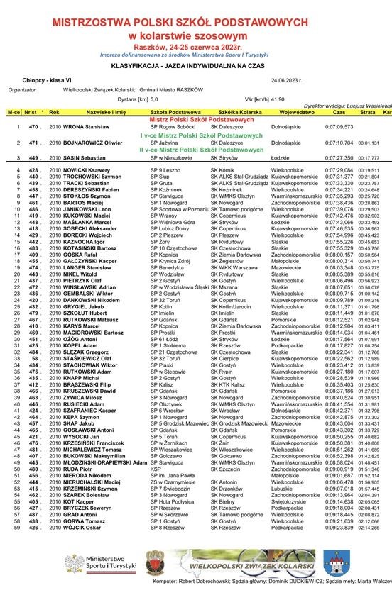 Niektórzy po ostatnim dzwonku udali się już na wakacje, ale część, tak jak sportowcy czerpią radość z realizowania swoich pasji. Uczeń Szkoły Podstawowej im. Henryka Sienkiewicza w Niesułkowie Sebastian Sasin z klasy VI w dniach 24-25 czerwca 2023r. wziął udział w Mistrzostwach Polski Szkół Podstawowych w kolarstwie szosowym, które odbyły się w Raszkowie. Na co dzień trenuje i reprezentuje barwy LUKS Dwójki Stryków.