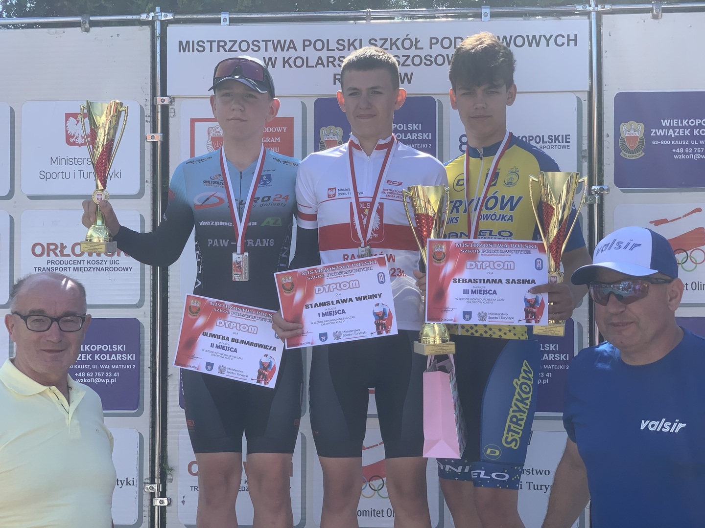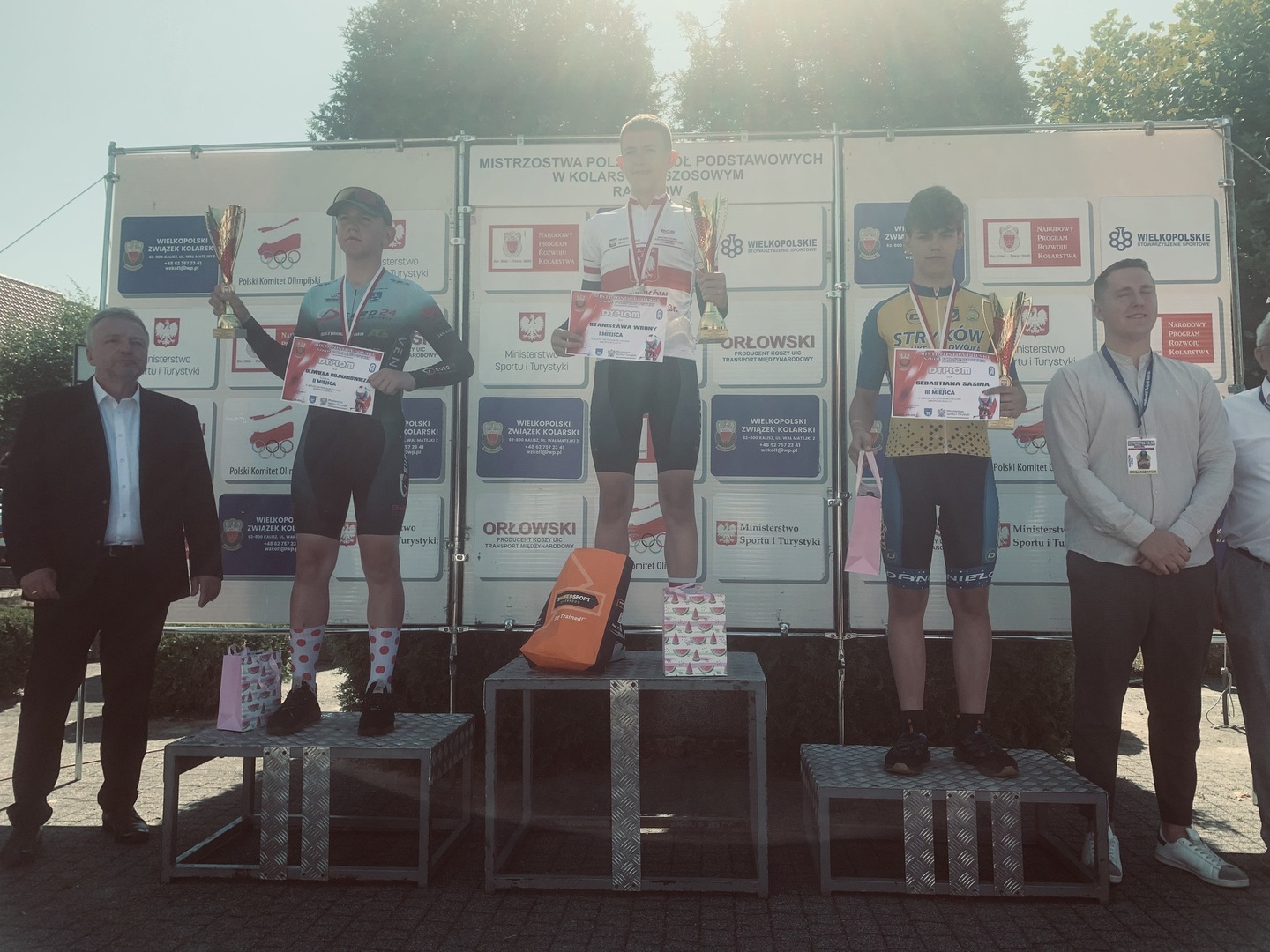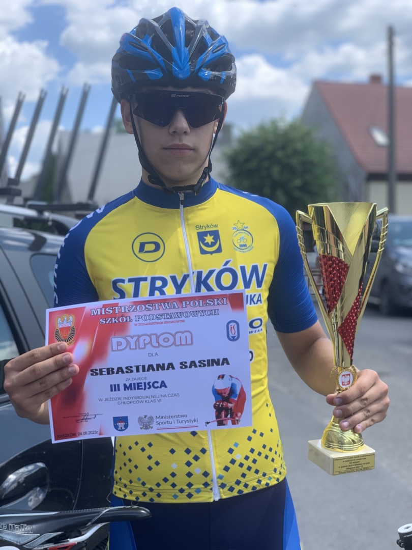 Sebastian spisał się znakomicie i pokazał, że świetnie ściga się na rowerze. W sobotniej jeździe indywidualnej na czas dystans 5 km pokonał w zaledwie 7 min. 27 sekund i dzięki temu zdobył brązowy medal. Dzień później w wyścigu grupowym po pokonaniu blisko 30 km również finiszował wysoko, zajmując 5. miejsce. Sebastian to nie jedyny kolarz naszej szkoły, który rywalizował w tych zawodach. Na starcie pojawili się także Sara Mularczyk, Ignacy Darnowski i Mateusz Klotz. O medale Mistrzostw Polski podczas Ogólnopolskiej Olimpiady Młodzieży powalczy w wakacje także uczennica Maria Sicińska, która gra w koszykówkę w barwach TK Basket Stryków.
