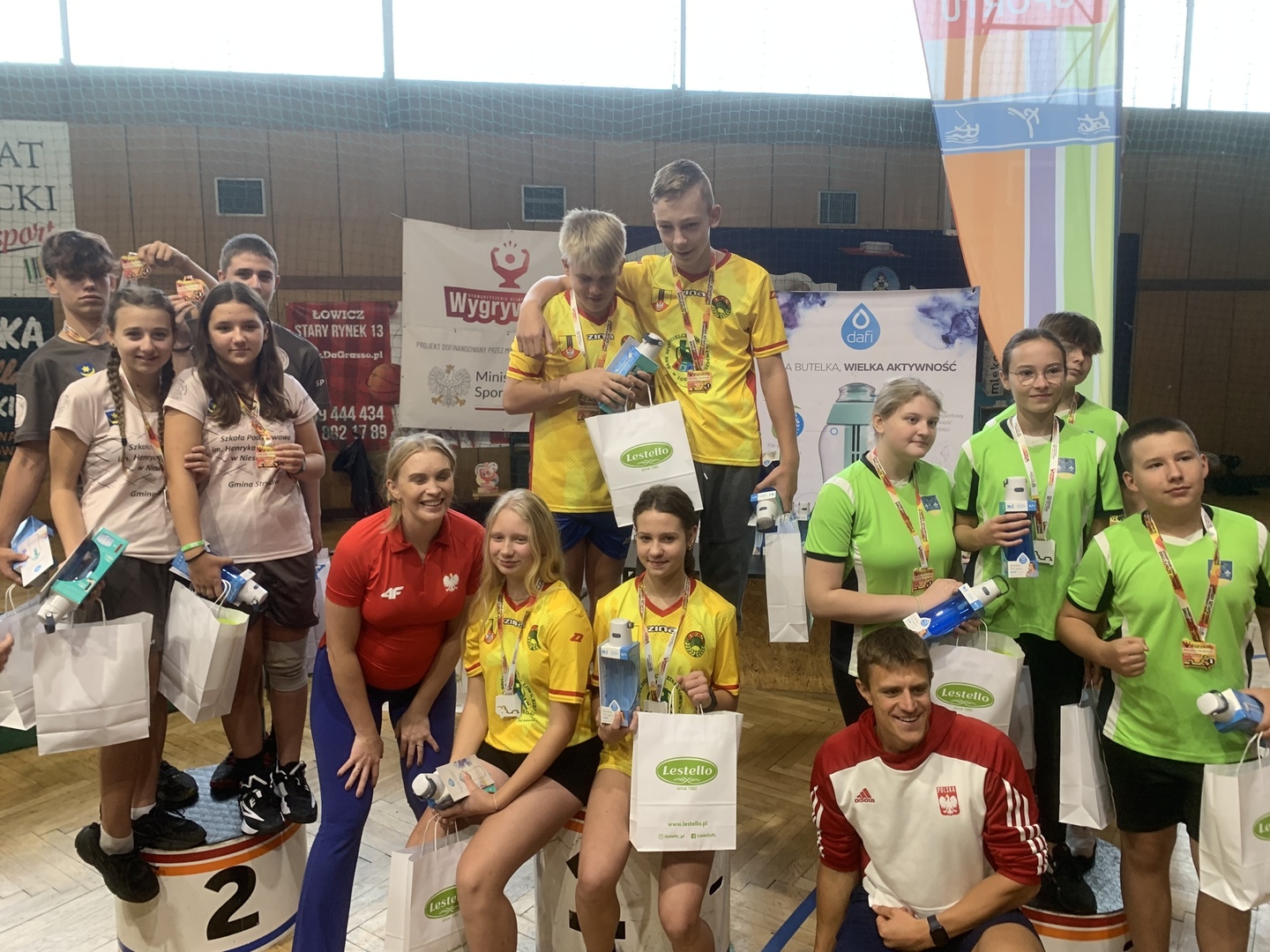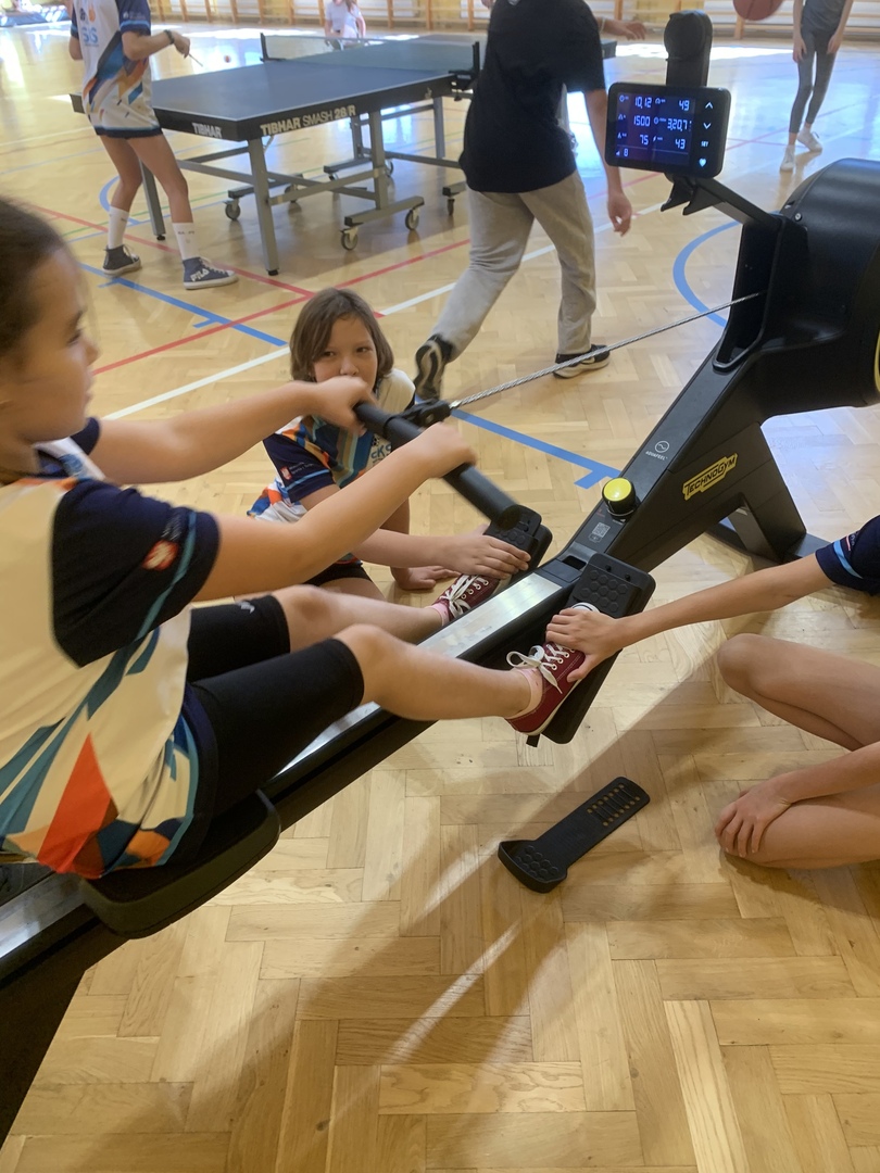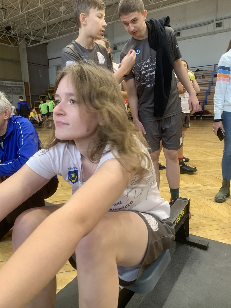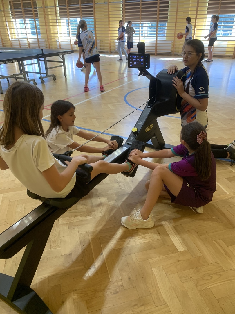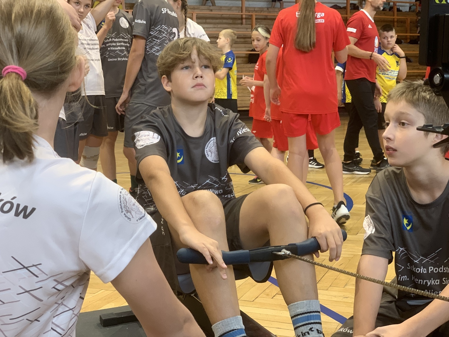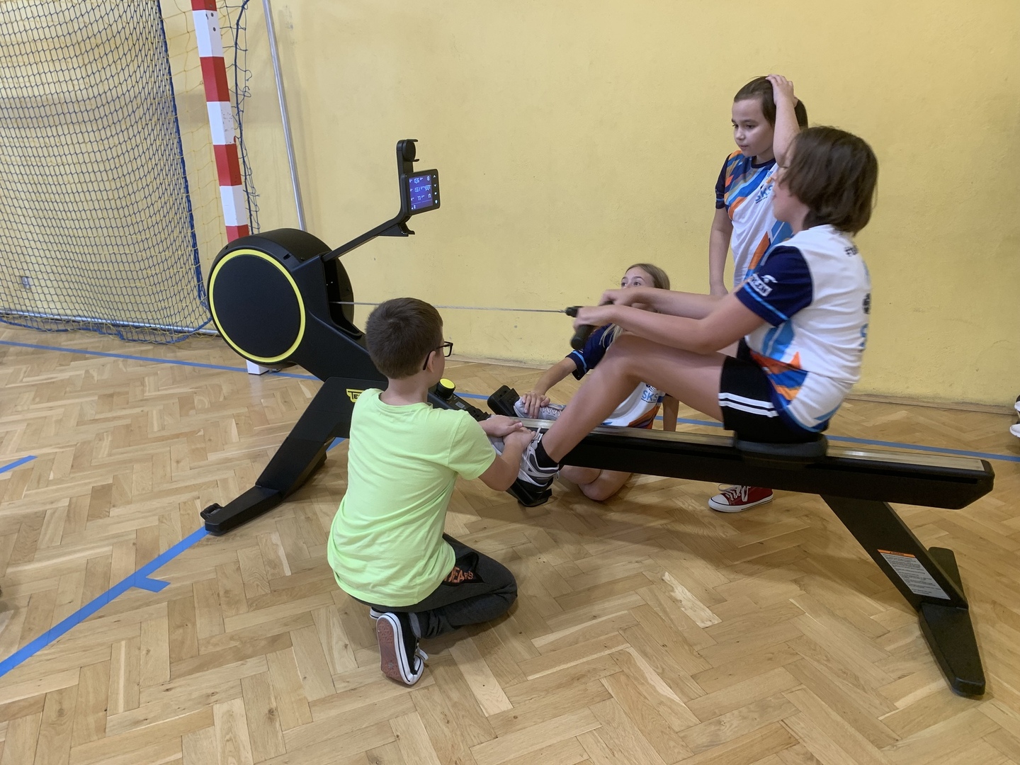 Kilka dni wcześniej klub kolarski LUKS Dwójka Stryków udostepnił nam do treningu swój ergometr, aby poznać tajniki zmian i technikę wiosłowania. Efekt - srebrny medal uczniów klasy VII i 6. miejsce w gronie 12 szkół z powiatów zgierskiego, łowickiego i brzezińskiego. Prawdziwą gratką było spotkanie z Multimedalistką Olimpijską Agnieszką Kobus-Zawojską, która chętnie opowiadała o swoich startach na Igrzyskach i podzieliła się pamiątkową fotografią z autografem.