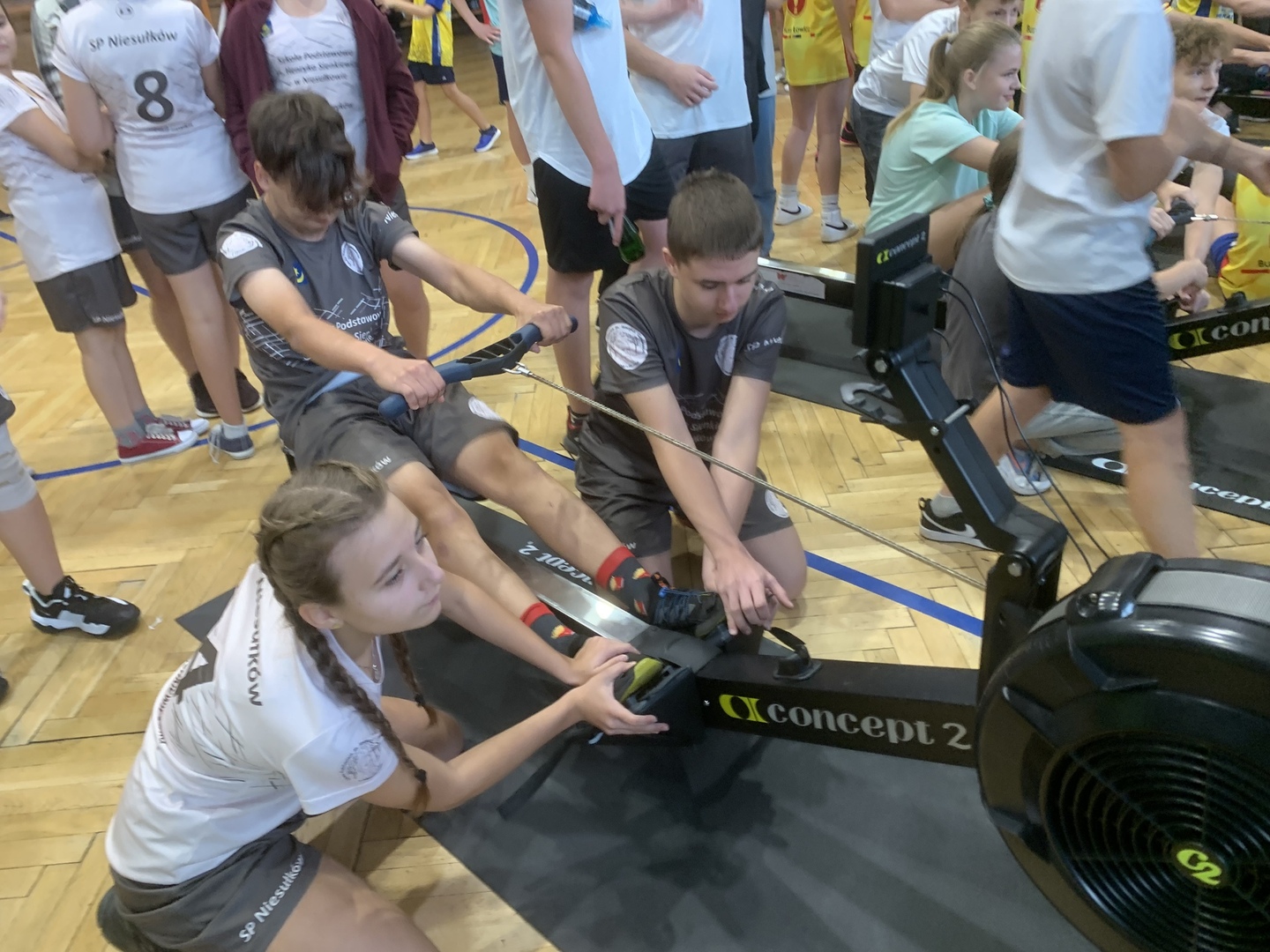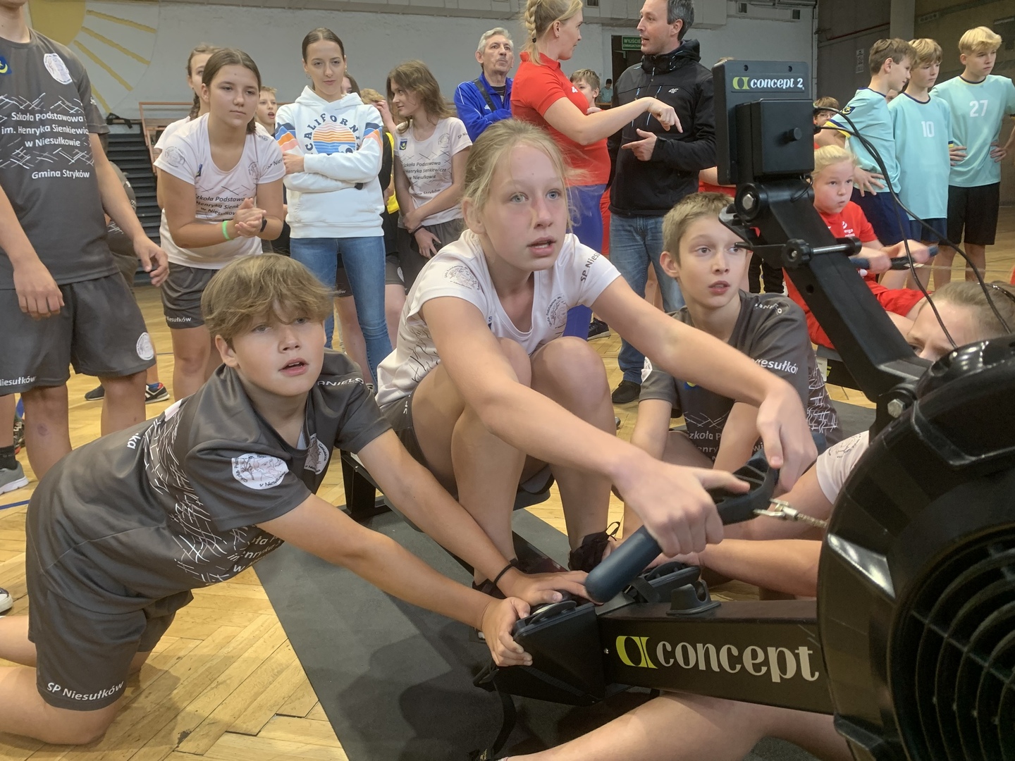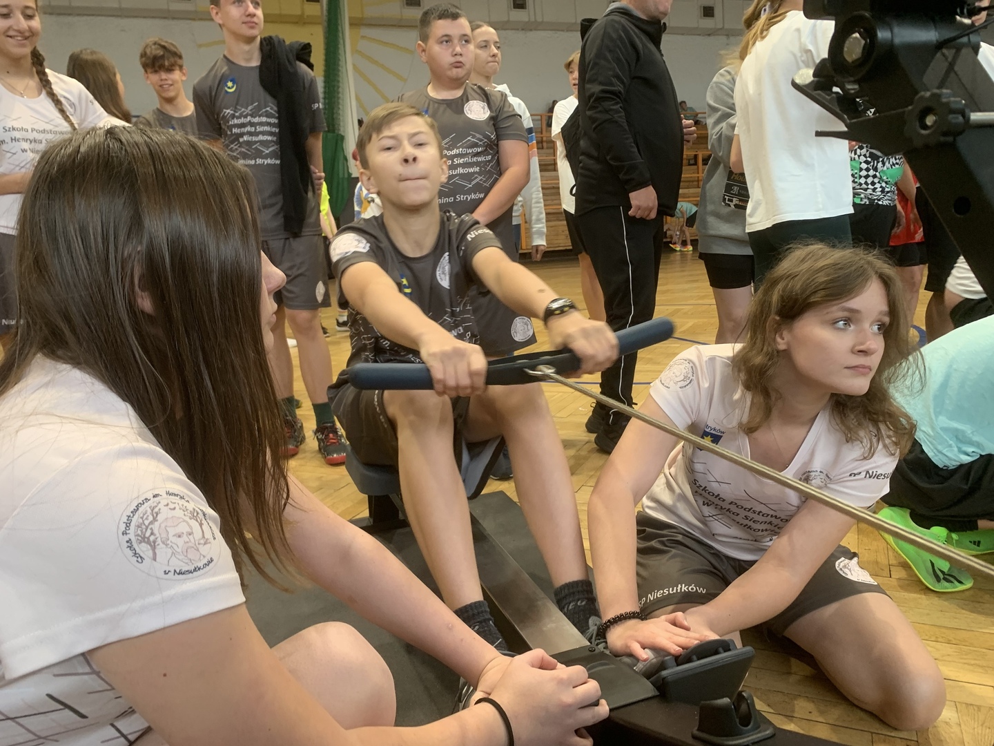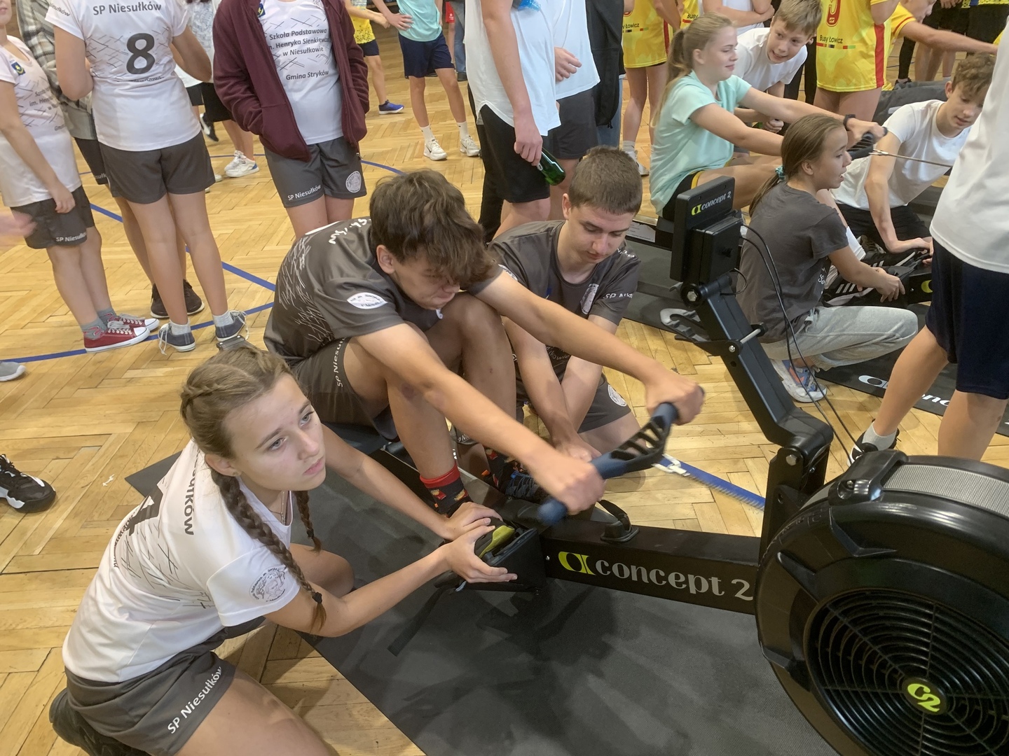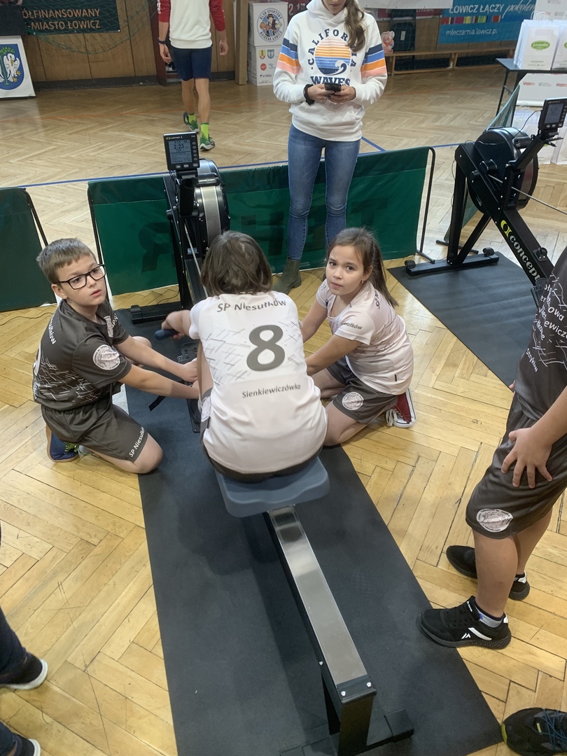 Reprezentacja Szkoły Podstawowej im. Henryka Sienkiewicza w Niesułkowie w dniu 9 października wzięła udział w wyjątkowym sportowym wydarzeniu. W łowickiej hali OSiR odbyła się pierwsza tegoroczna odsłona Wioślarsiej Ligi Mistrzów. Zmagania na ergometrach wioślarskich w ramach sztafet dostarczyły uczniom wielu emocji i sportowych przeżyć. Jako szkoła wypadliśmy bardzo dobrze, choć to dla nas zupełnie nowa dyscyplina. Zadanie dla każdej grupy polegało na przepłynięciu na ergometrze jak najdłuższego dystansu w ciągu 8 min. Zawodnicy zmieniali się po 1 min. wysiłku, a o końcowych rozstrzygnięciach decydowała nie tylko kondycja fizyczna, ale też umiejętność sprawnego przeprowadzania zmian i praca w grupie.