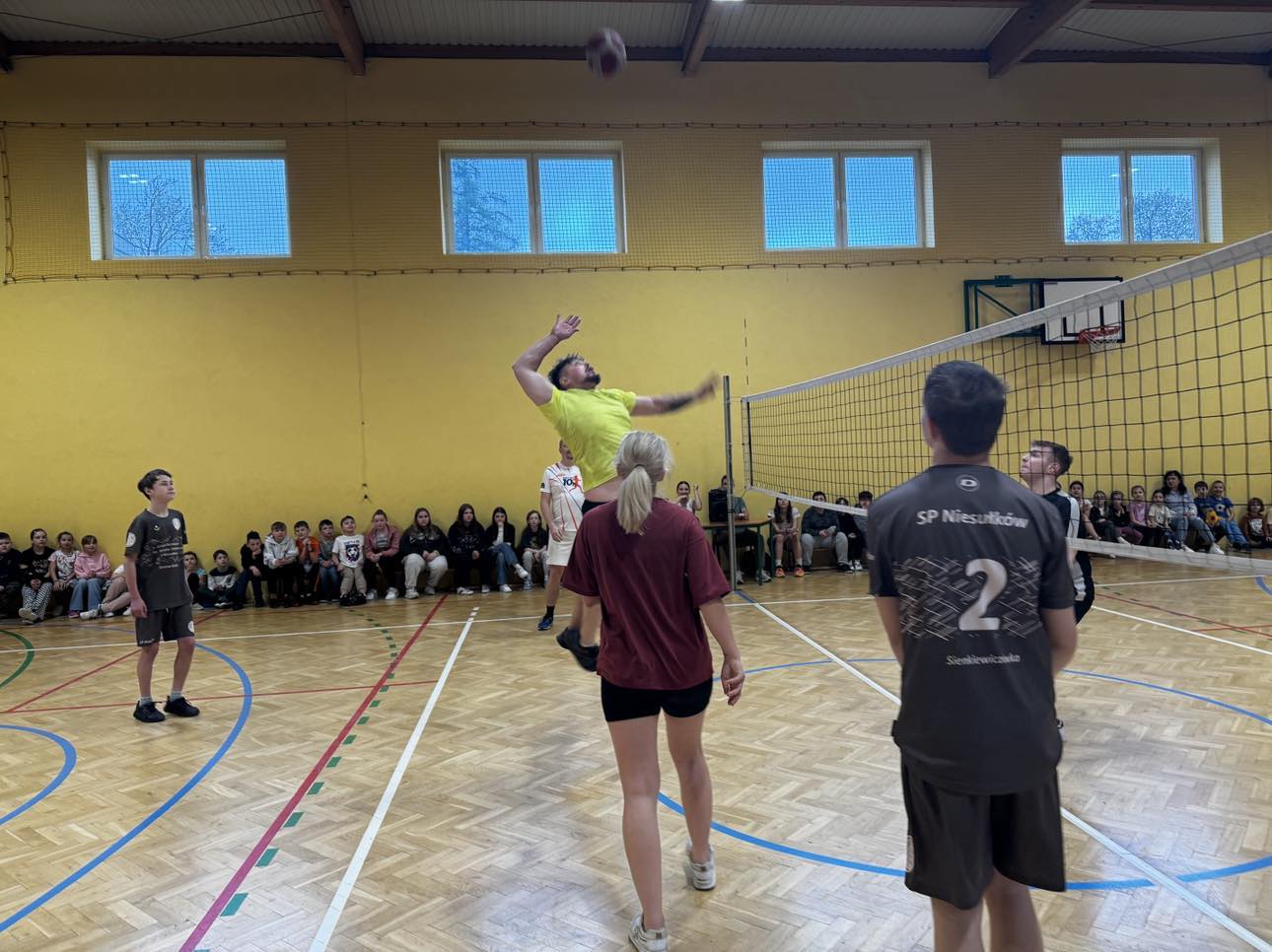 W środę, 17 kwietnia sala gimnastyczna niesułkowskiej Sienkiewiczówki wypełniona była po brzegi. Tego dnia odbył się coroczny MiniTurniej Siatkówki w ramach Sportowego Powitania Wiosny. Tym razem chęć udziału w rywalizacji zgłosiły cztery zespoły: Rodziców, Uczniów, Nauczycieli oraz po raz pierwszy także Absolwentów. W sumie rozegrano cztery spotkania, stojące na wysokim poziomie. W finale spotkały się zespołu Uczniów i Rodziców, a o najniższy stopień podium powalczyły drużyny Absolwentów i Nauczycieli. Tego dnia nikt nie był jednak przegrany, a dumni z siebie mogą być nie tylko uczestnicy siatkarskiej rywalizacji, ale także pozostali uczniowie, którzy głośno wspierali swoich ulubieńców. Najwytrwalej kibicowali uczniowie klasy IV, którzy też zgarnęli 50 pkt. w ramach tegorocznej odsłony Sportowego Pucharu Klas. Wszyscy uczestnicy zmagań otrzymali pamiątkowe dyplomy przygotowane przez szkolne koło Film-łowców, a uroczystej dekoracji dokonała Dyrektor Anna Lipińska.