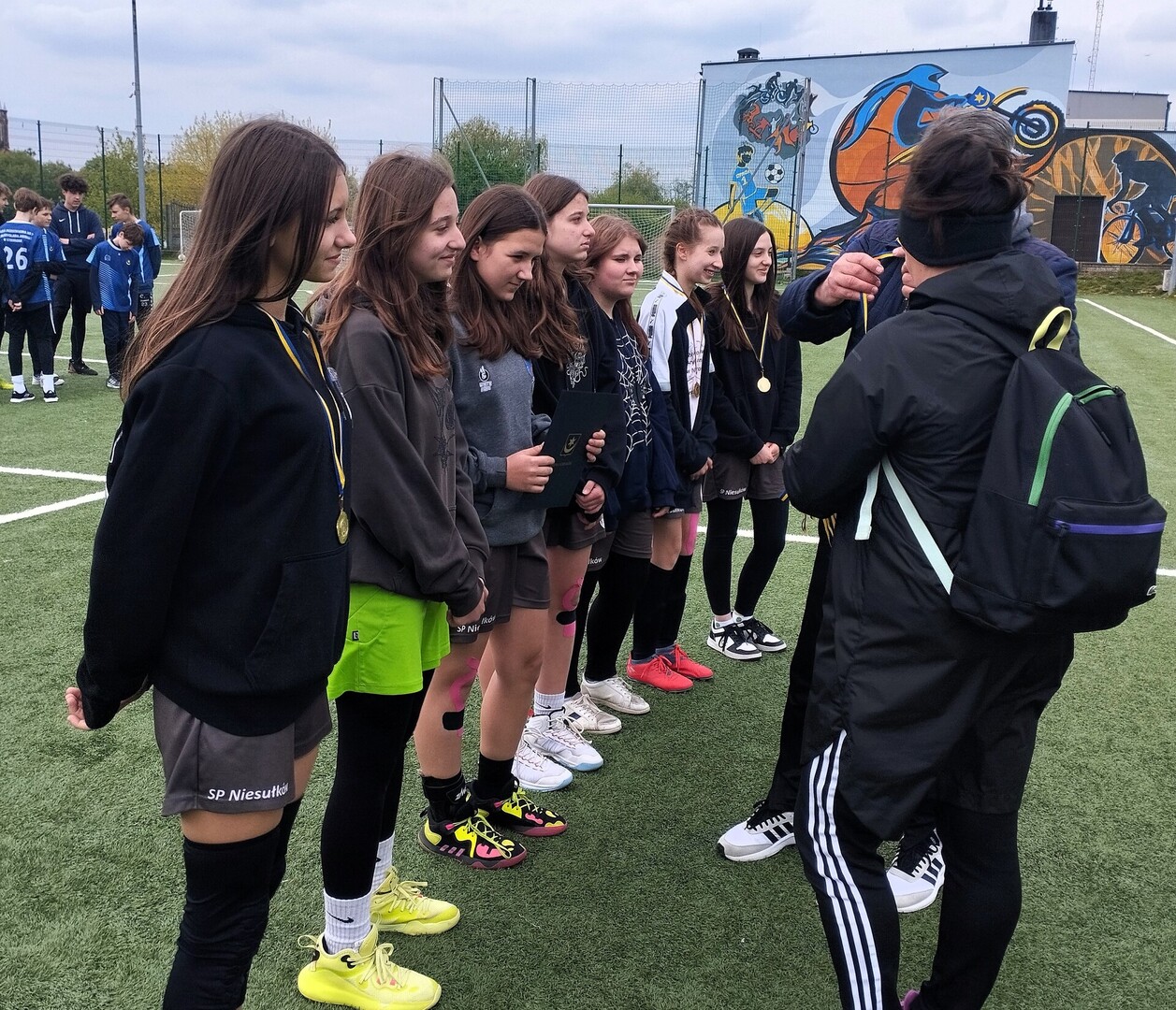 Uczennice Szkoły Podstawowej w Niesułkowie nie zwalniają tempa. Po wielkim sukcesie i awansie do Finału Wojewódzkiego w Koszykówce 3x3 nasze reprezentantki pokazały się z bardzo dobrej strony w innej dyscplinie. W poprzednim tygodniu rozpoczęła się bowiem rywalizacja w piłce nożnej w ramach Igrzysk Młodzieży Szkolnej. Niesułkowianki pod opieką nauczyciela Michała Studzińskiego w środę, 24 kwietnia wygrały etap Gminny, pokonując w finale SP nr 2 Stryków 3:0 po golach Kariny Opalskiej, Oliwii Rosiak i Marii Sicińskiej, dzięki czemu awansowały na szczebel powiatowy. Ten rozegrano dwa dni później na obiektach MOSiR w Zgierzu. SP Niesułków w finale po emocjonującej grze pokonał SP nr 6 Zgierz 7:3, a gole dla naszego zespołu zdobyły Maria Sicińska 4 i Karina Opalska 3. Zespół reprezentowały ponadto: Natalia Opalska (br), Monika Pietrasiak, Lena Lipińska, Ewa Szczepaniak oraz Julita Kacprzyk. Nasze dziewczęta jako mistrzynie powiatu zgierskiego wystąpią teraz w Półfinale Wojewódzkim, który odbędzie się w poniedziałek, 13 maja w Zgierzu.