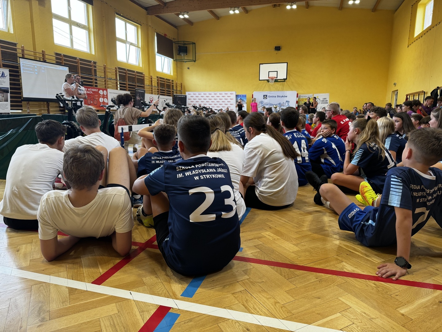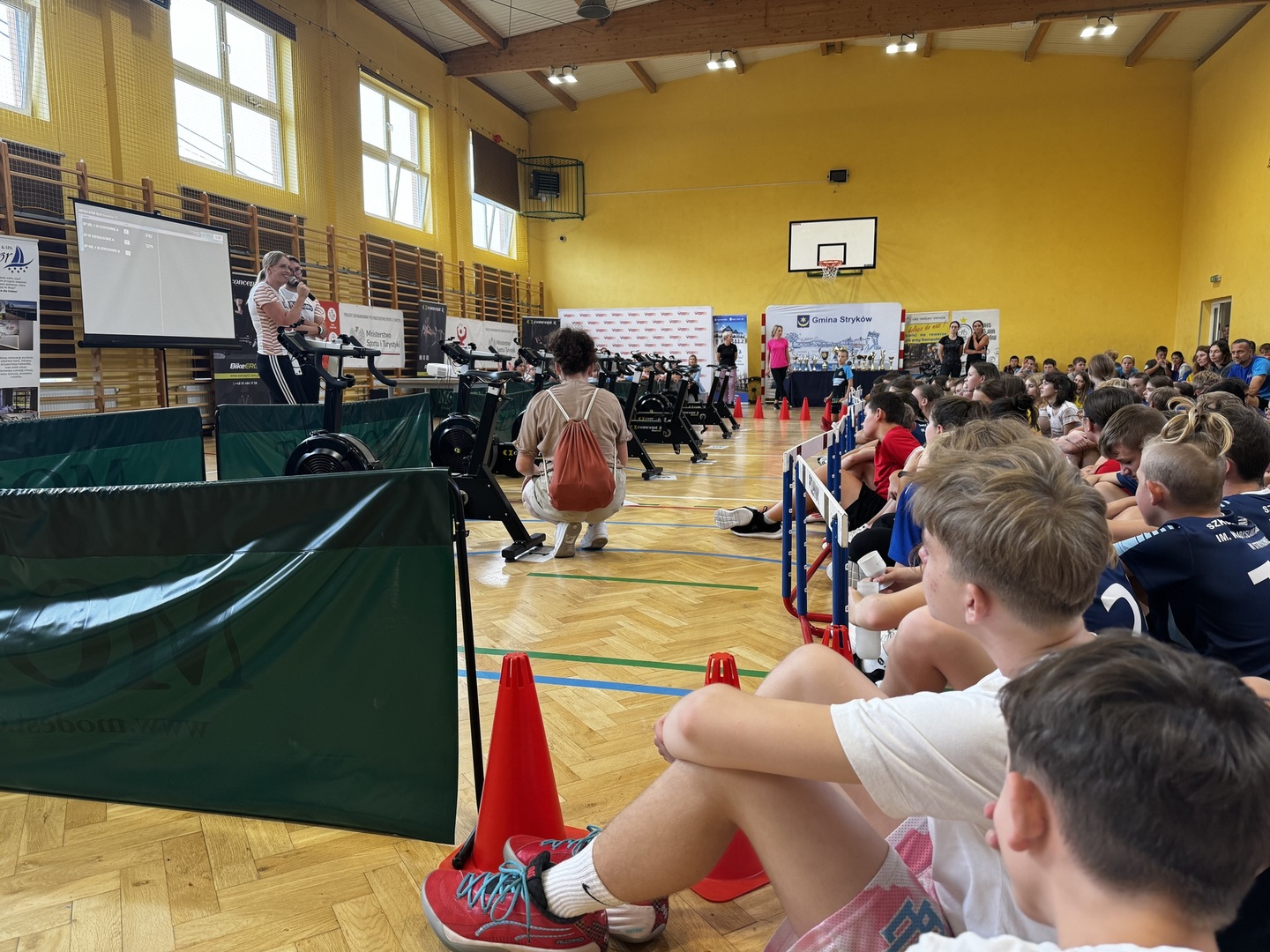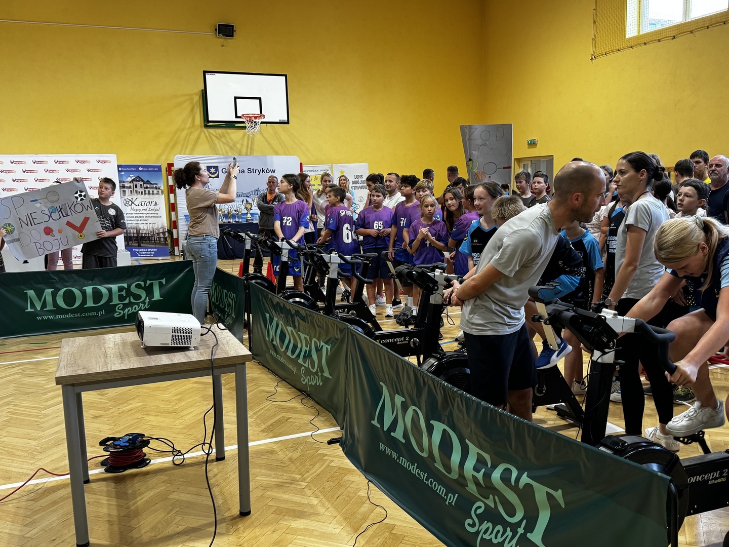 Jako gospodarz czwartkowej Szkolnej Ligi Rowerowej imprezę otworzyła Dyrektor Anna Lipińska wraz z nauczycielem wychowania fizycznego Wojciechem Pożarlikiem. Zmagania komentował dziennikarz sportowy Radia Zet Mateusz Ligęza, a wśród uczestników były sztafety wszystkich szkół z Gminy Stryków. Rywalizacja polegała na przejechaniu na rowerze stacjonarnym jak nadjłuższego dystansu przez 6 min. w sztafetach 6-osobowych, w których każdy ścigał się przez 1 min. Kluczowe było nie tylko odpowiednie przygotowanie fizyczne, ale też odporność na stres i szybkie dokonywanie zmian.