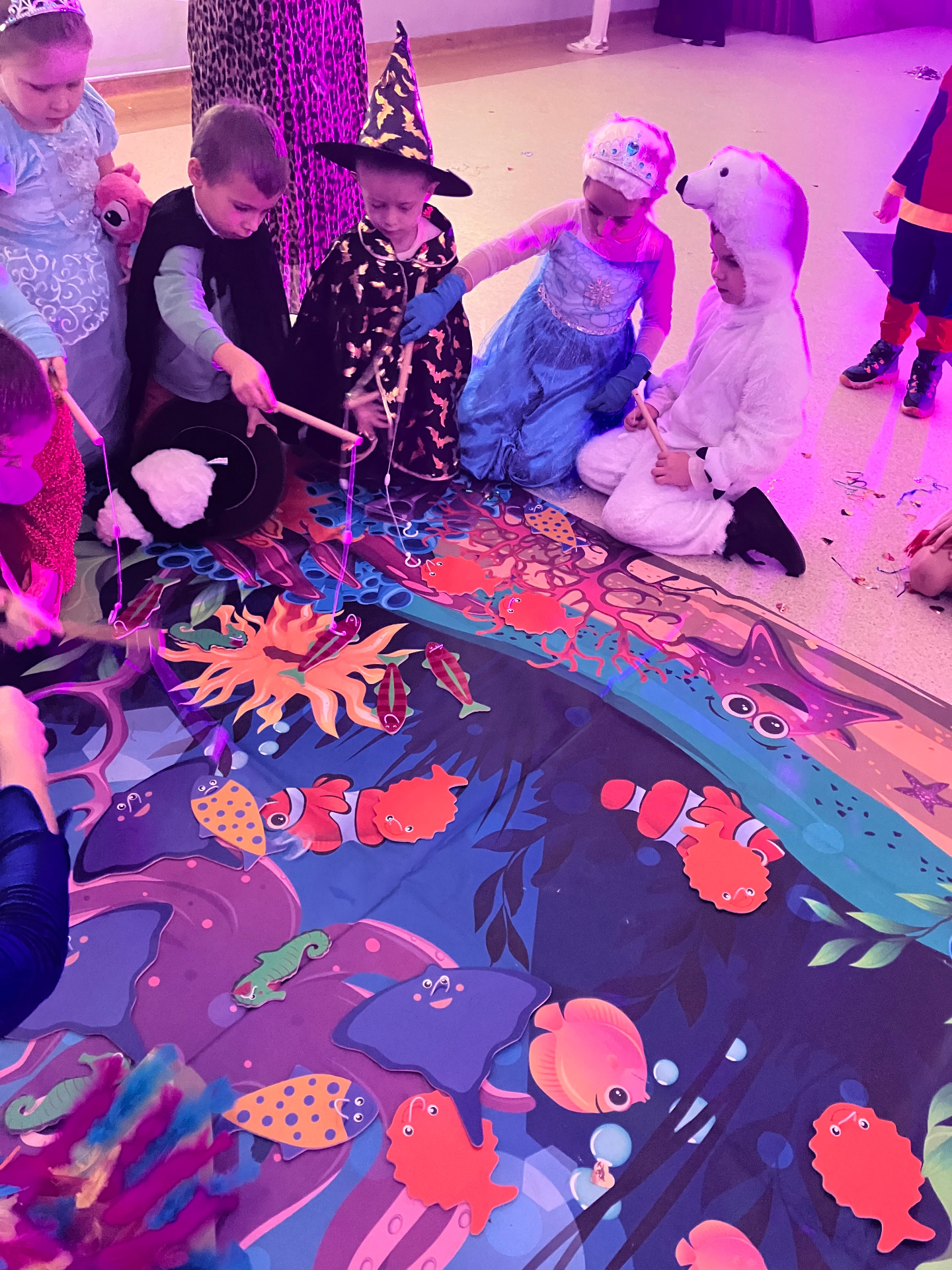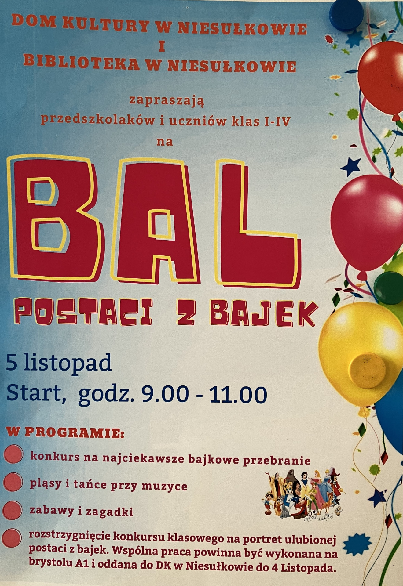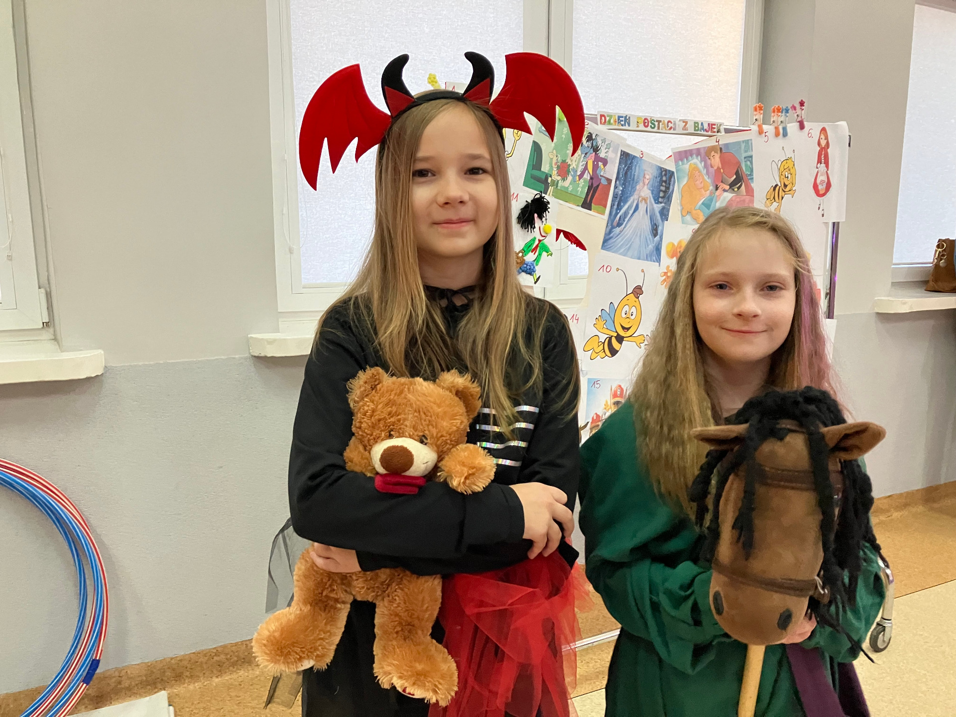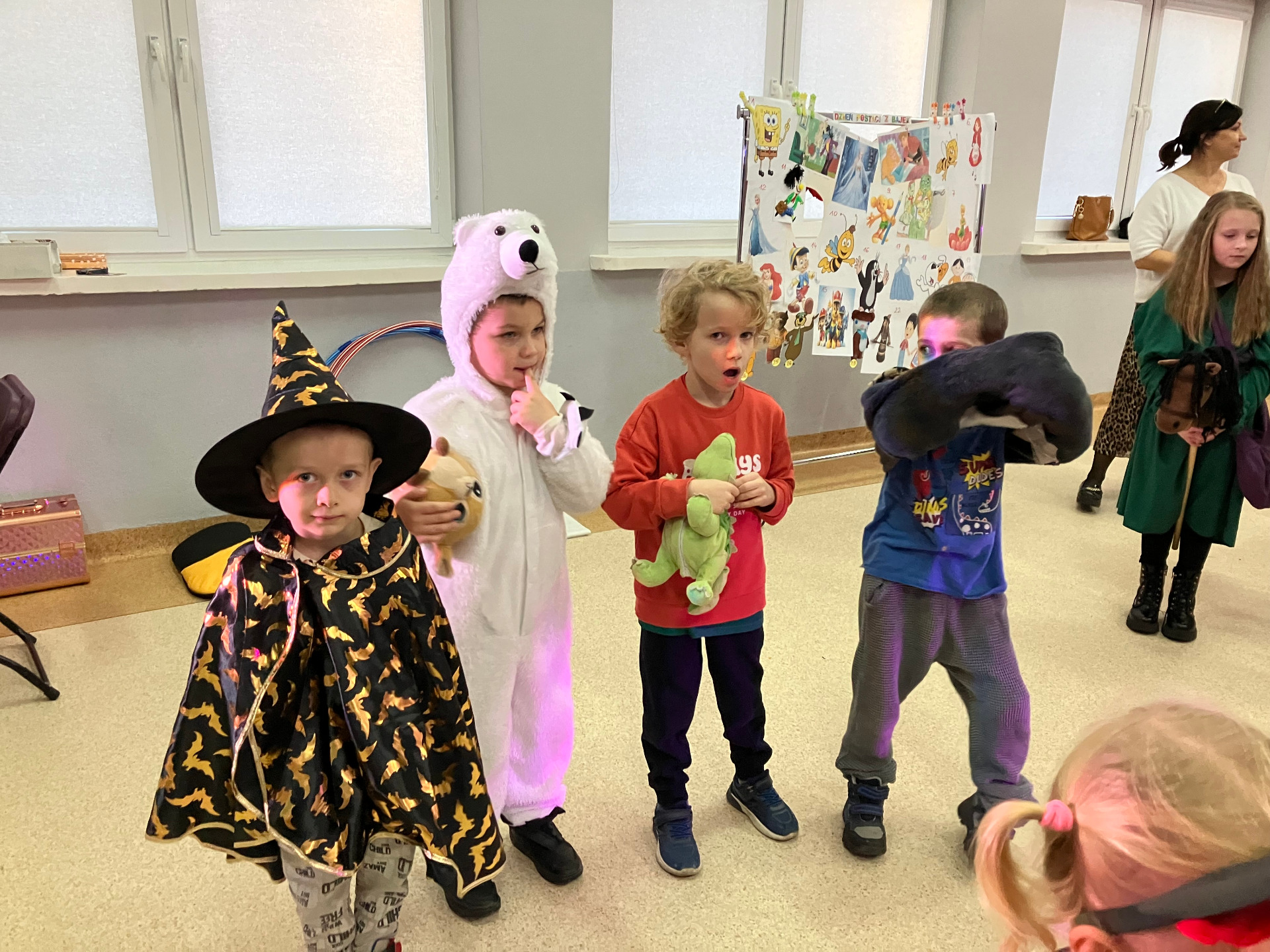 W dniu 5 listopada 2024 roku odbył się wyjątkowy Bal Postaci z Bajek, zorganizowany w ramach współpracy Domu Kultury i Biblioteki Publicznej z naszą szkołą dla uczniów klas 0 -IV. Impreza cieszyła się ogromnym zainteresowaniem, a kolorowe kostiumy przygotowane przez uczniów wprowadziły wszystkich w magiczny świat bajek i baśni. Na uczestników balu czekało wiele atrakcji – taneczne zabawy, konkursy, wybór króla i królowej, bajkowa fotobudka, złote konfetti i bańki mydlane. Dzieci wysłuchały również bajkowej opowieści, a potem szukały ukrytych przedmiotów i łowiły złote rybki. Radości nie było końca, kiedy na parkiecie pojawił się ogromny pluszowy miś, do którego wszyscy chętnie przytulali się.