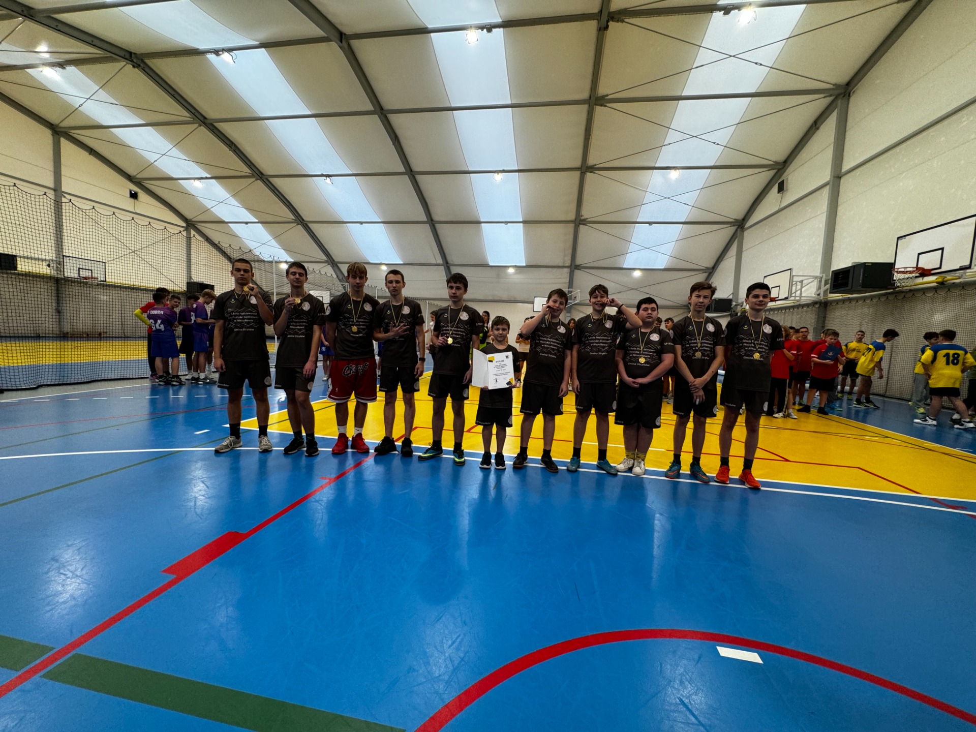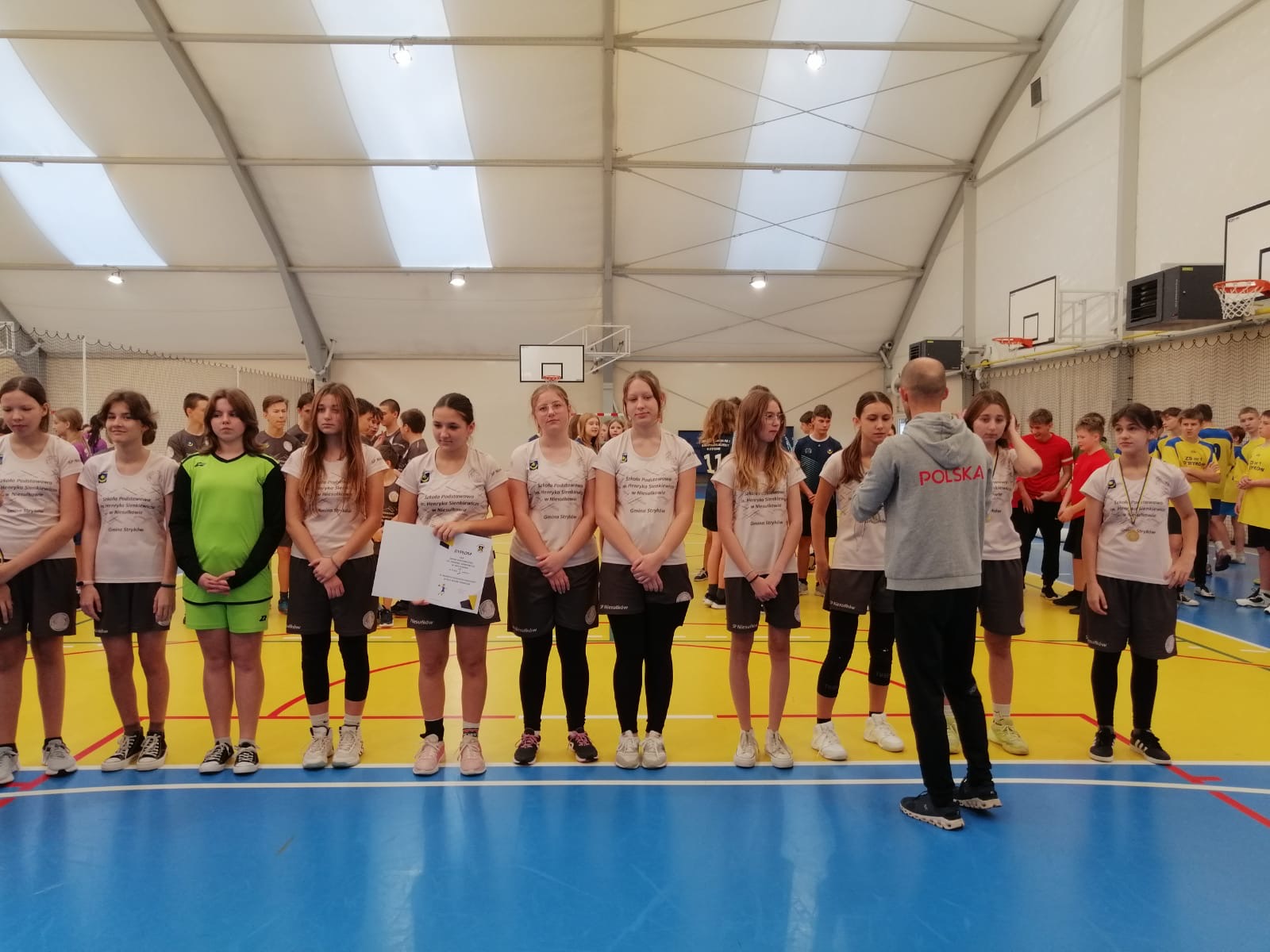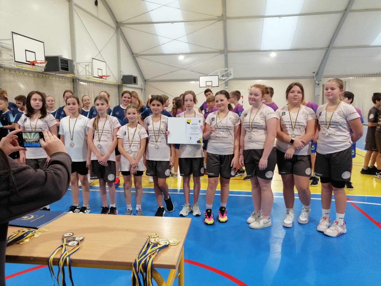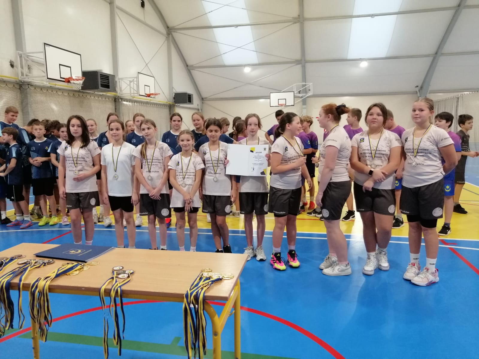 Rywalizację rozpoczęli najpierw uczniowie klas IV-VI, którzy w grali ze sobą w dniu 12 listopada na terenie balonu przy Szkole Podstawowej nr 1 w Strykowie. W tej kategorii wiekowej srebro wywalczyły dziewczęta w składzie: Zuzanna Anders, Karolina Bigos, Jagoda Gniadek, Iryna Izofatova, Kinga Kowalska, Alicja Krawczyk, Zofia Sicińska, Julia Szczepaniak, Katarzyna Wiśniewska oraz Kinga Zbrojewska. W Igrzyskach Dzieci grali też chłopcy, którzy uplasowali się ostatecznie na 5. miejsce, a szkołę reprezentowali: Arkadiusz Bolejko, Mateusz Bukowski, Stanisław Kubicki, Mateusz Mikołajczuk, Kacper Olczyk, Witold Pawłowicz, Miłosz Rosak, Szymon Proga, Andrzej Roksela, Krzysztof Szychowski, Jakub Szymczak, Bartłomiej Wyziński i Kamil Zbrojewski.