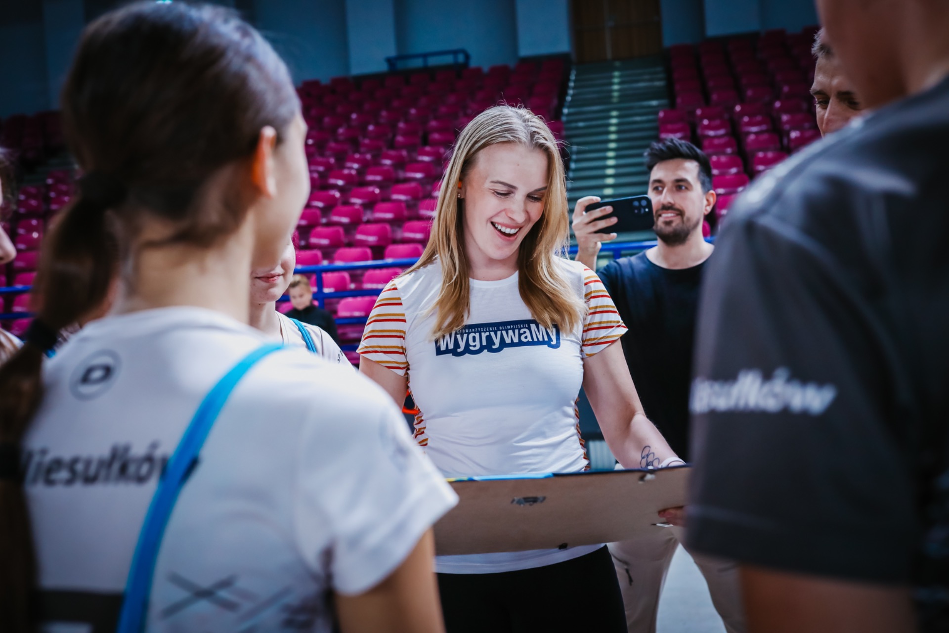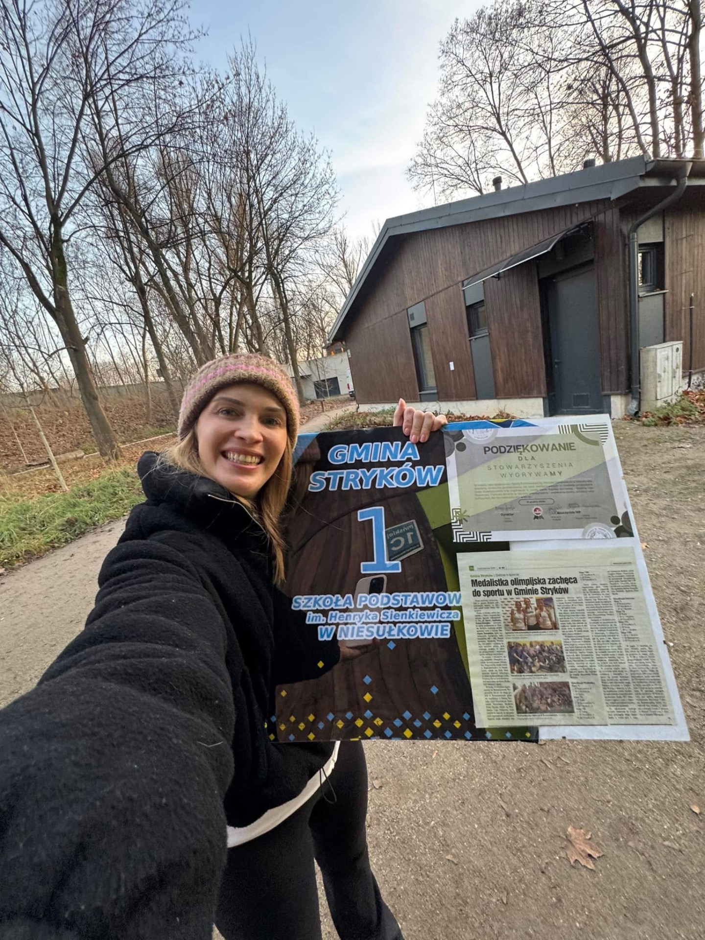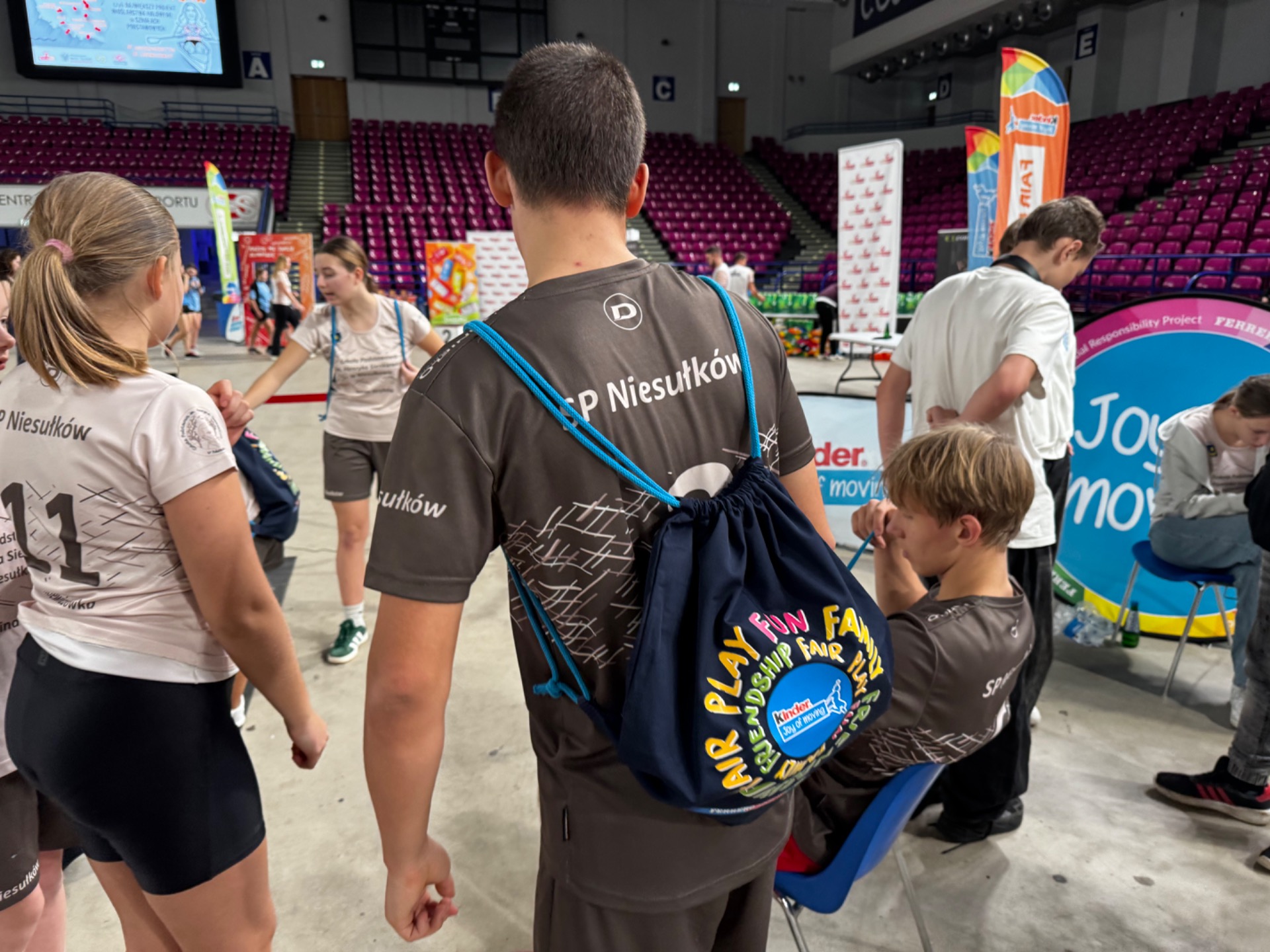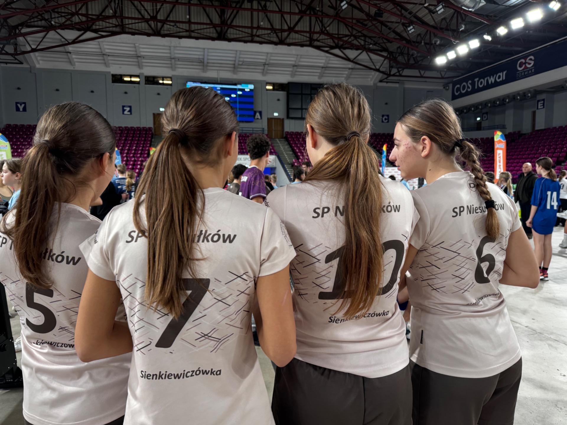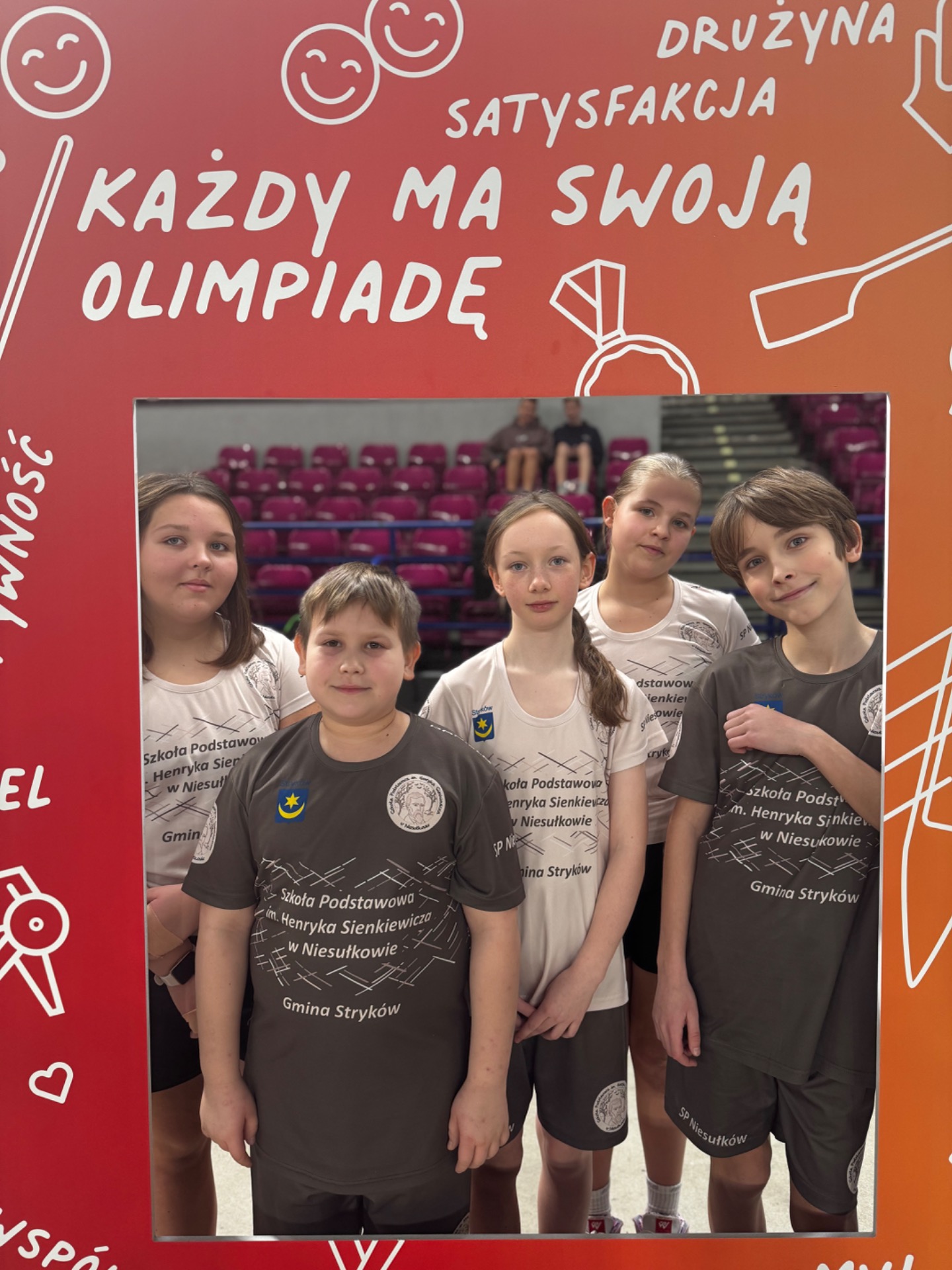 Na koniec zawodów grupa uczniów wraz z nauczycielami wręczyła głównym organizatorom ze Stowarzyszenia WygrywaMy pamiątkową koszulkę naszej Szkoły z podziękowaniami za wkład włożony w rozwój sportu wśród dzieci i młodzieży. Medalistka olimpijska Agnieszka Kobus-Zawojska oraz medalista europejskich i światowych imprez na ergometrze wioślarskim Maciej Zawojski byli wzruszeni tym gestem, a podarunek od razu zajął specjalne miejsce na półce w ich klubie - Przystani Warszawa. Wyjazd autokarem do Hali COS Torwar był darmowy i sfinansowany ze środków Gminy Stryków. Warto również dodać, że reprezentanci Niesułkowa mieli zapewnione dodatkowe wsparcie w postaci izotoników, przygotowanych specjalnie na ten wyjazd przez szkolne koło MasterChef, czyli uczniów z klasy III pod opieką wychowawczyni Krystyny Kumidaj.