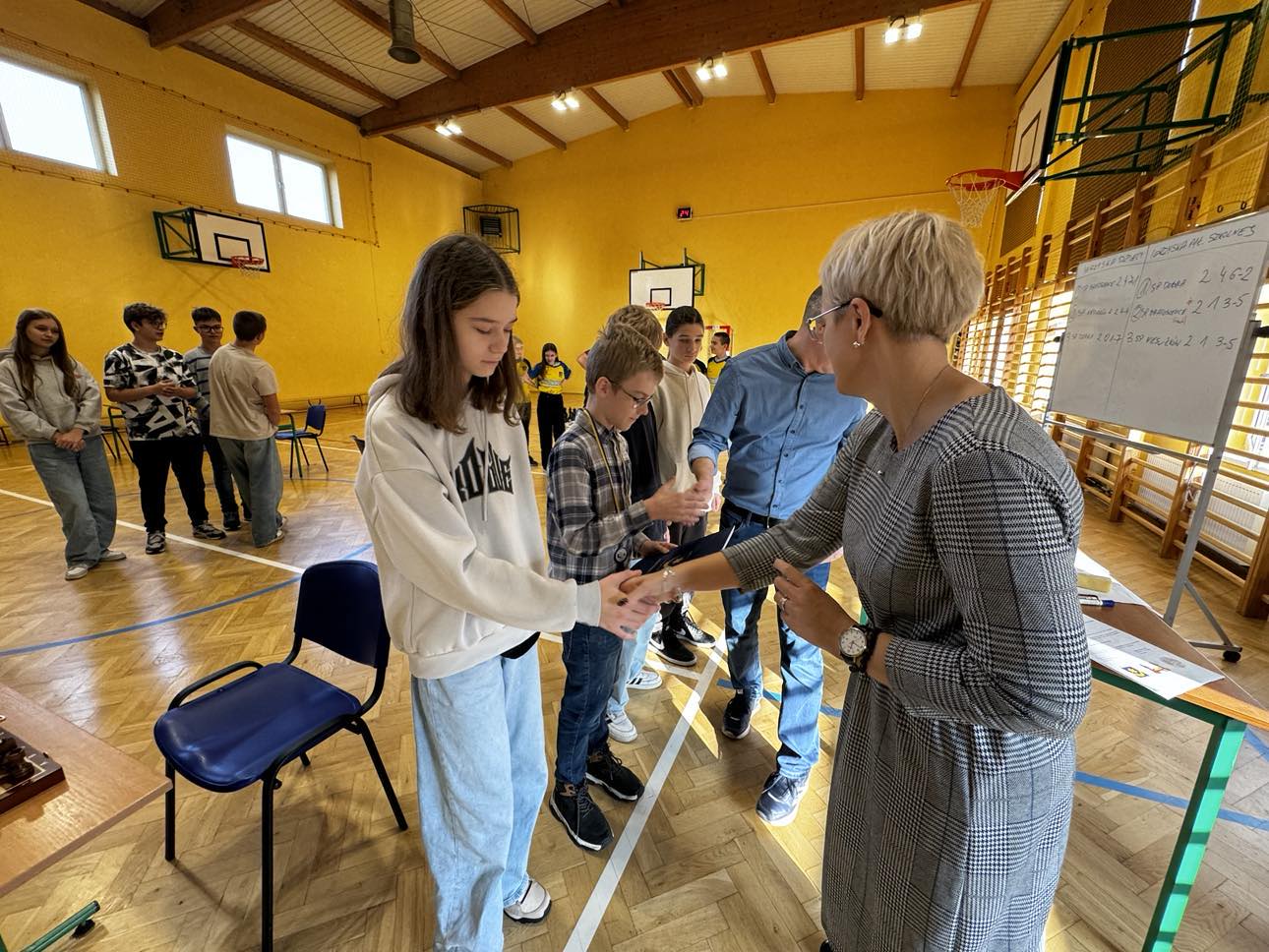 Starszy rocznik (kl. VII-VIII) w składzie: Piotr Roksela, Antoni Kapliński, Ignacy Darnowski i Karina Opalska zakończył zmagania na etapie gminnym, gdzie nasi uczniowie zajęli 3. miejsce. W organizację turnieju włączyli się nauczyciele: kapł. Michał Wąsowski, Michał Studziński oraz Wojciech Pożarlik.