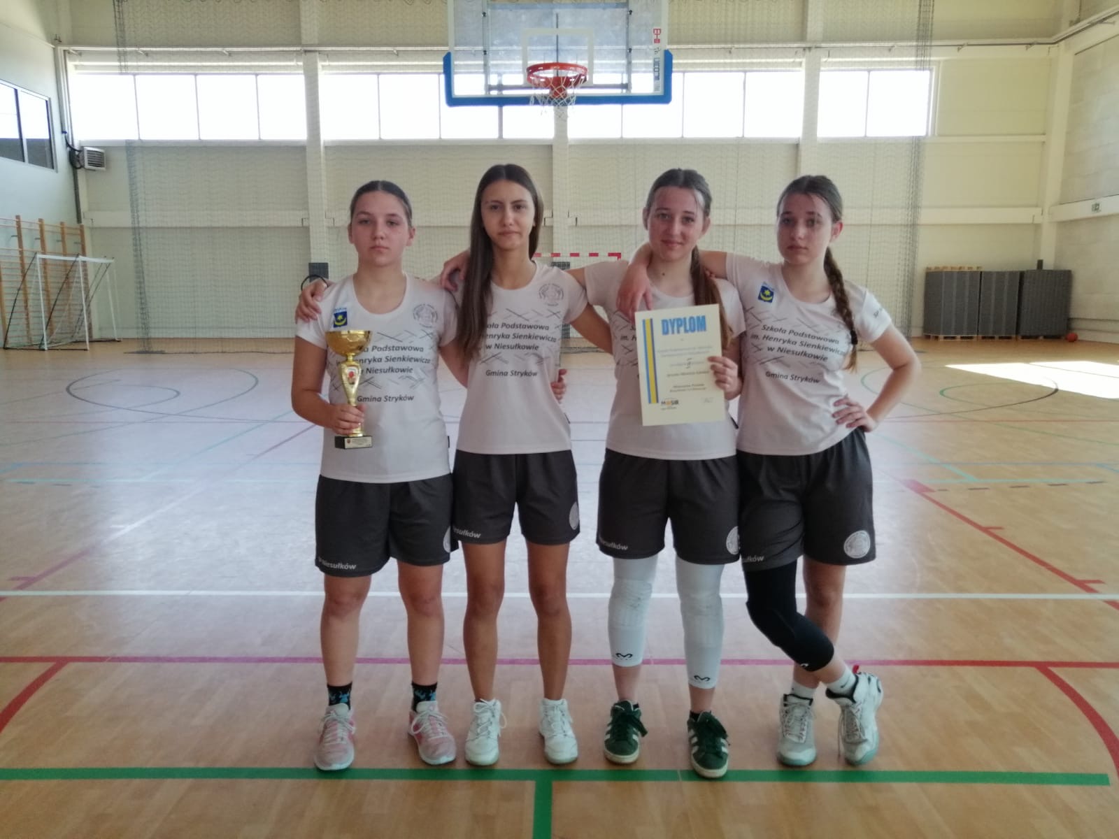Uczennice Szkoły Podstawowej w Niesułkowie znów powalczą na szczeblu wojewódzkim. W poniedziałek, 28 kwietnia drużyna pod opieką nauczycielki wychowania fizycznego Joanny Krysiak-Frankowskiej w składzie Maria Sicińska, Karina Opalska, Natalia Opalska i Oliwia Rosiak wzięła udział w Powiatowych Igrzyskach Młodzieży Szkolnej w Koszykówce 3x3. Po zaciętej grze i wielu emocjach niesułkowianki zajęły 2. miejsce za drużyną z Aleksandrowa Łódzkiego, ale to również dało awans do Półfinału Wojewódzkiego, który pod koniec maja odbędzie się w hali MOSiR w Pabianicach.