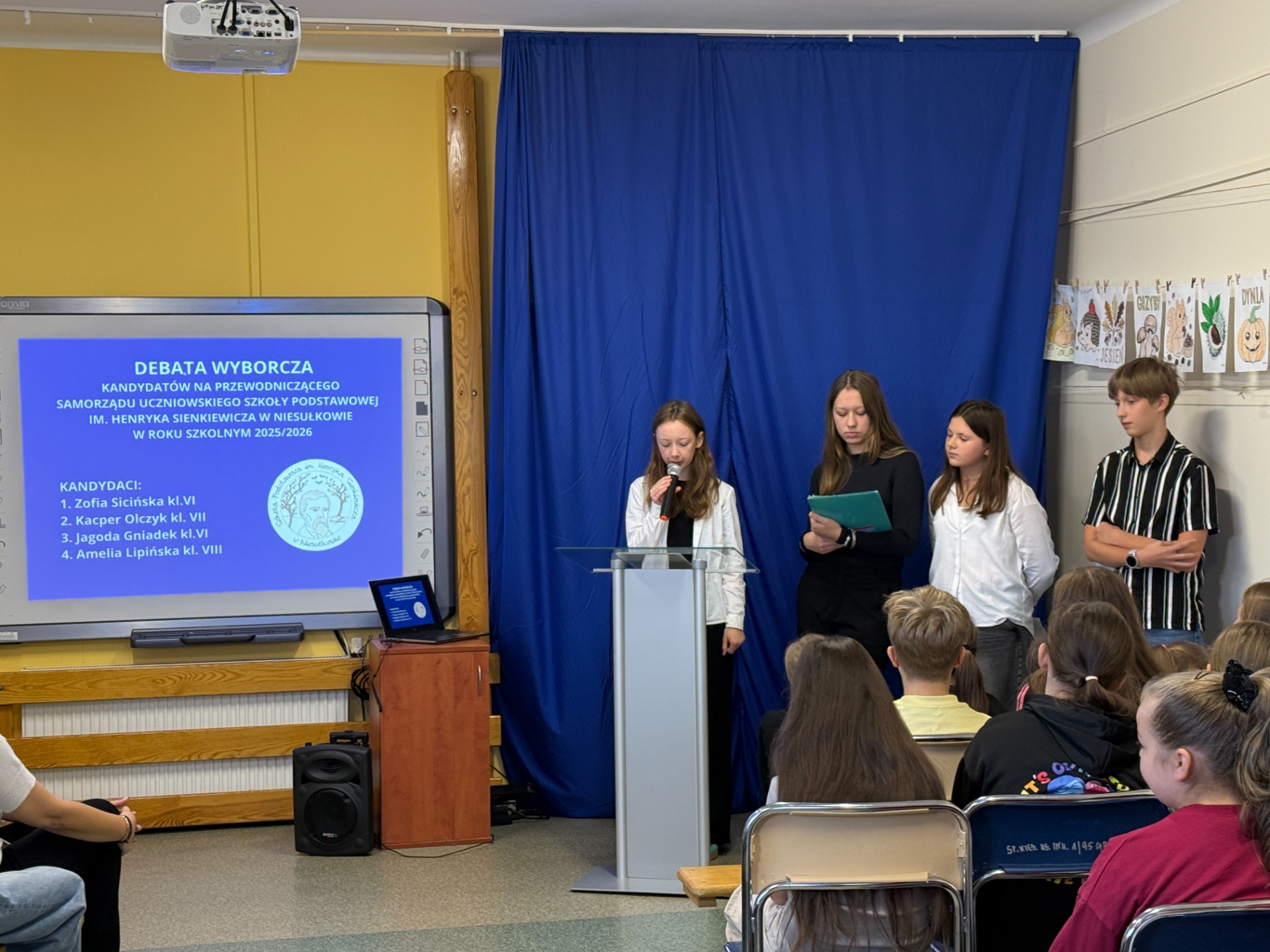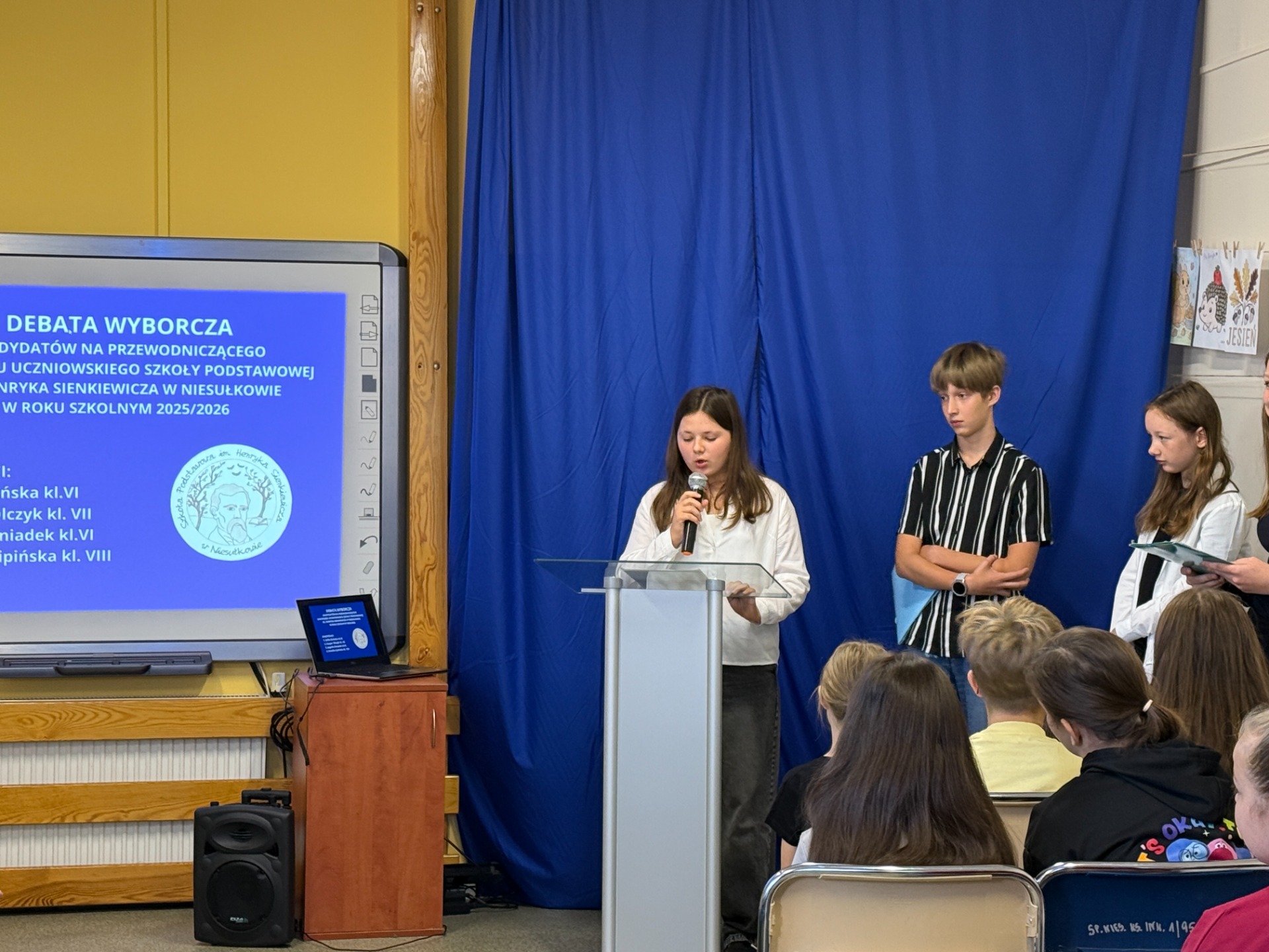 W dniu 26 września w naszej szkole miała miejsce debata wyborcza kandydatów na Przewodniczącego Samorządu Uczniowskiego w roku szkolnym 2025/2026.