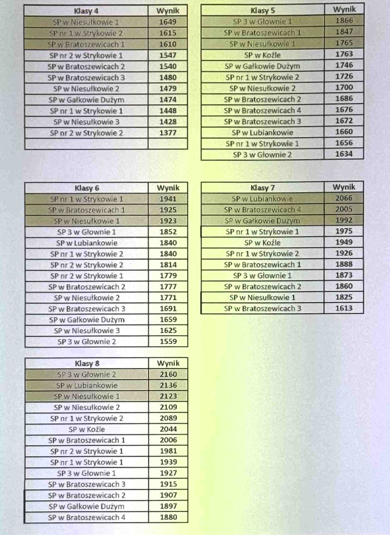 Mimo braku miejsca na podium dumni ze swoich osiągnięć mogą być pozostali uczniowie SP Niesułków, którym do medali zabrakło niewiele. Szkolną reprezentację Niesułkowa tworzyli ponadto: klasa IV - B: Anna Tomczak, Stanisław Dobiński, Maria Szczepaniak i Alan Fiutowski, klasa IV – C: Marta Wiśniewska, Maja Olczyk, Maria Pietrasiak i Wiktoria Kowalska, klasa V – B: Natalia Kawczyńska, Franciszek Karliński, Kornelia Bałabańska i Andrzej Roksela, klasa VI – B: Oliwier Marciniak, Zofia Sicińska, Szymon Proga i Oleksandra Lesyk, klasa VI – C: Oskar Chojnacki, Michalina Fijałkowska, Mateusz Bukowski i Zofia Kubicka, klasa VII – Barbara Kaplińska, Kacper Olczyk, Julia Szczepaniak i Miłosz Gładys, klasa VIII – B: Maciej Walak, Amelia Lipińska, Bartłomiej Wyziński i Nadia Sicińska. Wszyscy uczestnicy otrzymali pamiątkowy gadżet od medalistki olimpijskiej, a drużyny z miejsc 1-3 oprócz medali okazałe statuetki, ponadto szkoła w Bratoszewicach przygotowała dla każdego słodki poczęstunek. Opiekunami uczniów podczas imprezy byli nauczyciele: Bożena Urquidi, Joanna Krysiak-Frankowska i Wojciech Pożarlik.